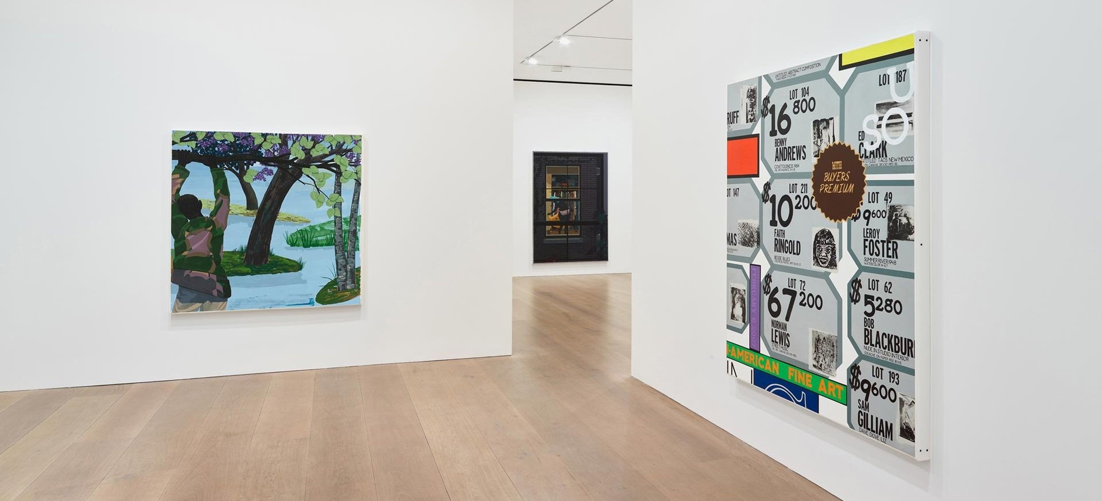 Marshall has exhibited widely throughout Europe and the United States since the late 1970s. In 2018, Kerry James Marshall: Collected Works was presented at the Rennie Museum in Vancouver and Kerry James Marshall: Works on Paper at The Cleveland Museum of Art. His site-specific outdoor sculpture A Monumental Journey was also permanently installed in Hansen Triangle Park in downtown Des Moines, Iowa. From 2016 to 2017, Kerry James Marshall: Mastry, the first major museum survey of the artist’s work, was on view at the Museum of Contemporary Art Chicago, followed by The Met Breuer, New York, and the Museum of Contemporary Art, Los Angeles. In 2015, he created a large-scale mural specifically for the High Line, marking the artist’s first public commission in New York. In 2013, his work was the subject of a major survey entitled Kerry James Marshall: Painting and Other Stuff. The exhibition was first on view at the Museum van Hedendaagse Kunst Antwerpen in Antwerp. In 2014, it traveled to the Kunsthal Charlottenborg in Copenhagen and was co-hosted by two venues in Spain, the Fundació Antoni Tàpies in Barcelona and the Museo Nacional Centro de Arte Reina Sofía in Madrid.