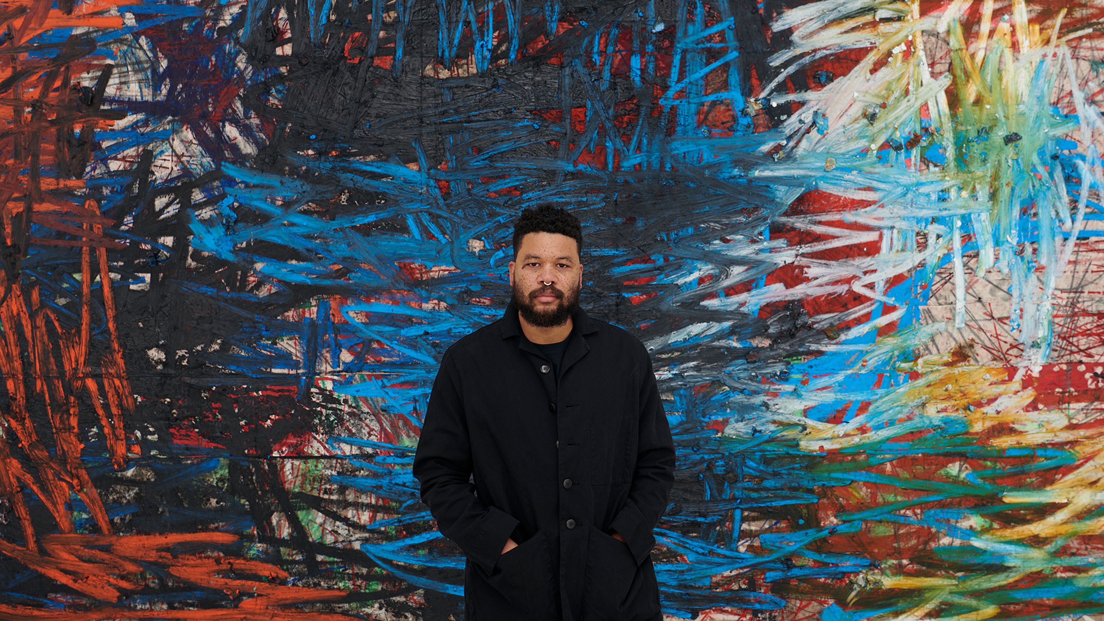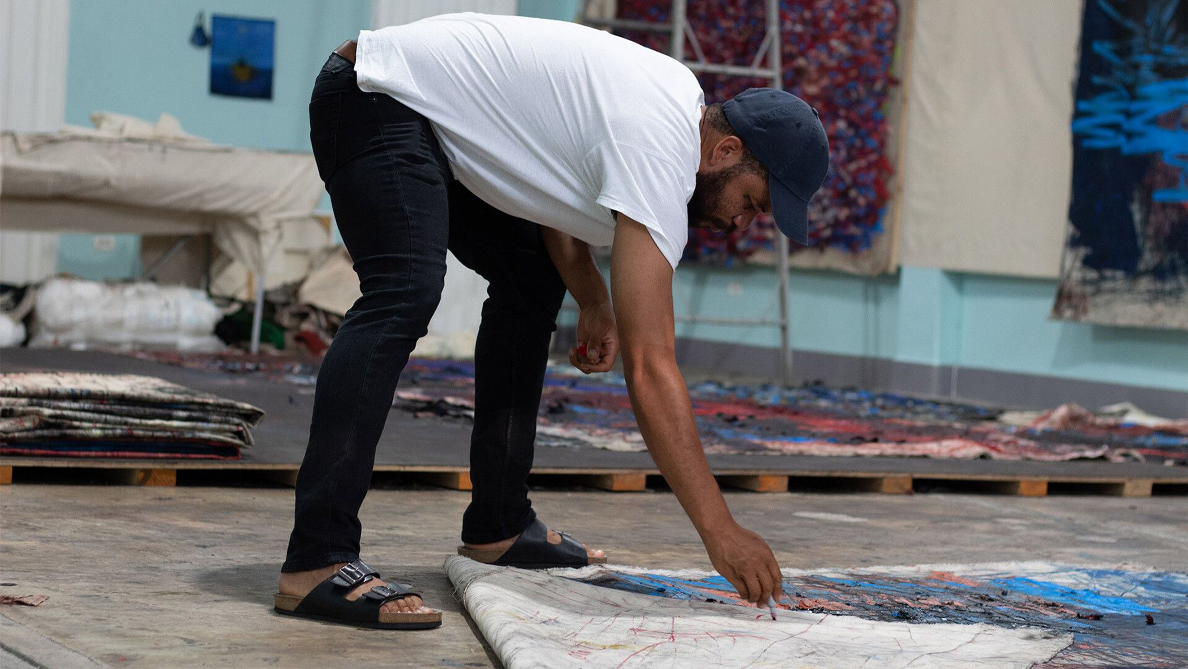 Oscar Murillo in his studio, 2022. Photo by Jason Schmidt