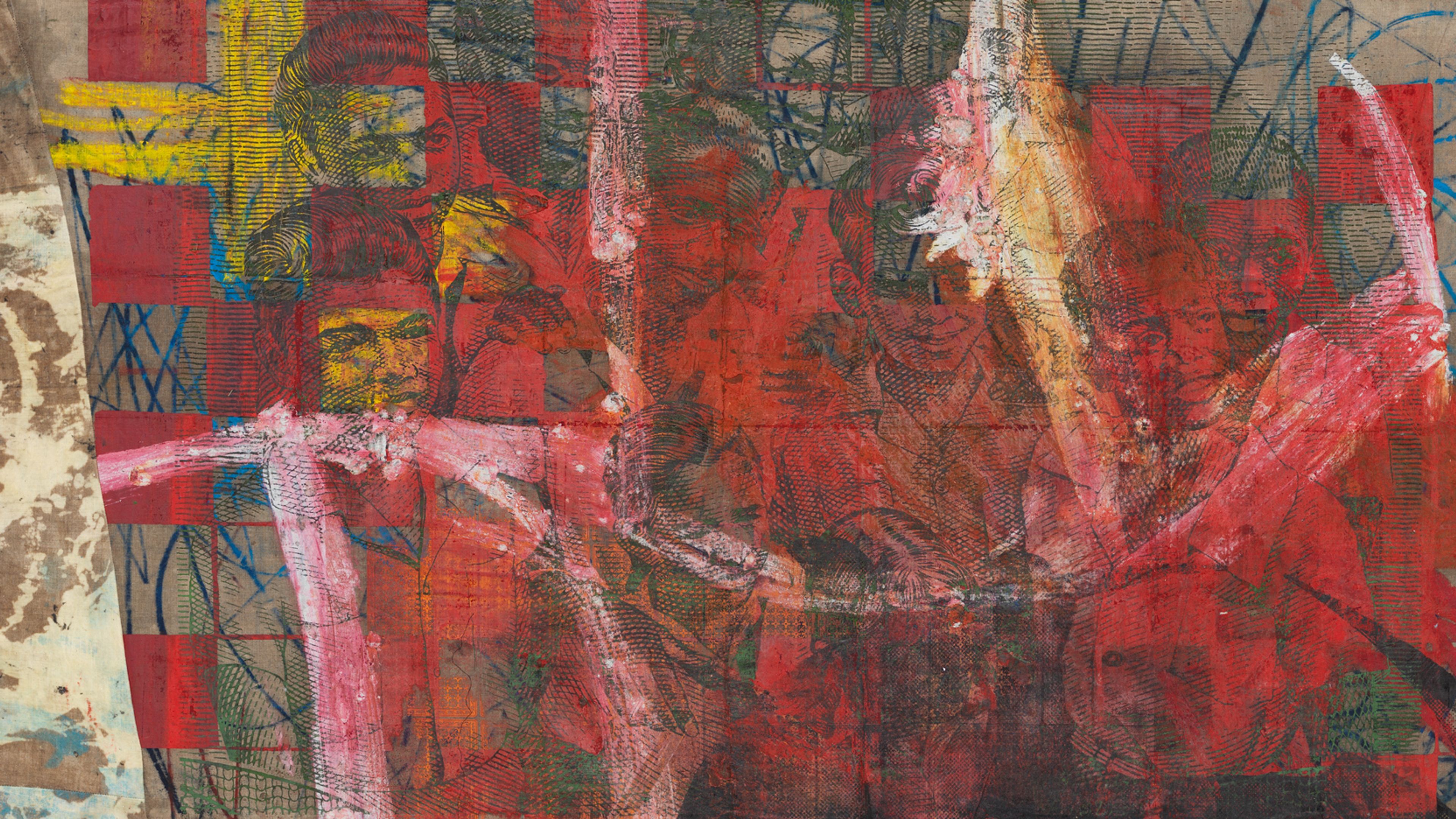 Born in Colombia, Oscar Murillo (b. 1986) is known for an inventive and itinerant practice that encompasses paintings, works on paper, sculptures, installations, actions, live events, collaborative projects, and videos. Taken as a whole, his body of work demonstrates a sustained emphasis on the notion of cultural exchange and the multiple ways in which ideas, languages, and even everyday items are displaced, circulated, and increasingly intermingled.
