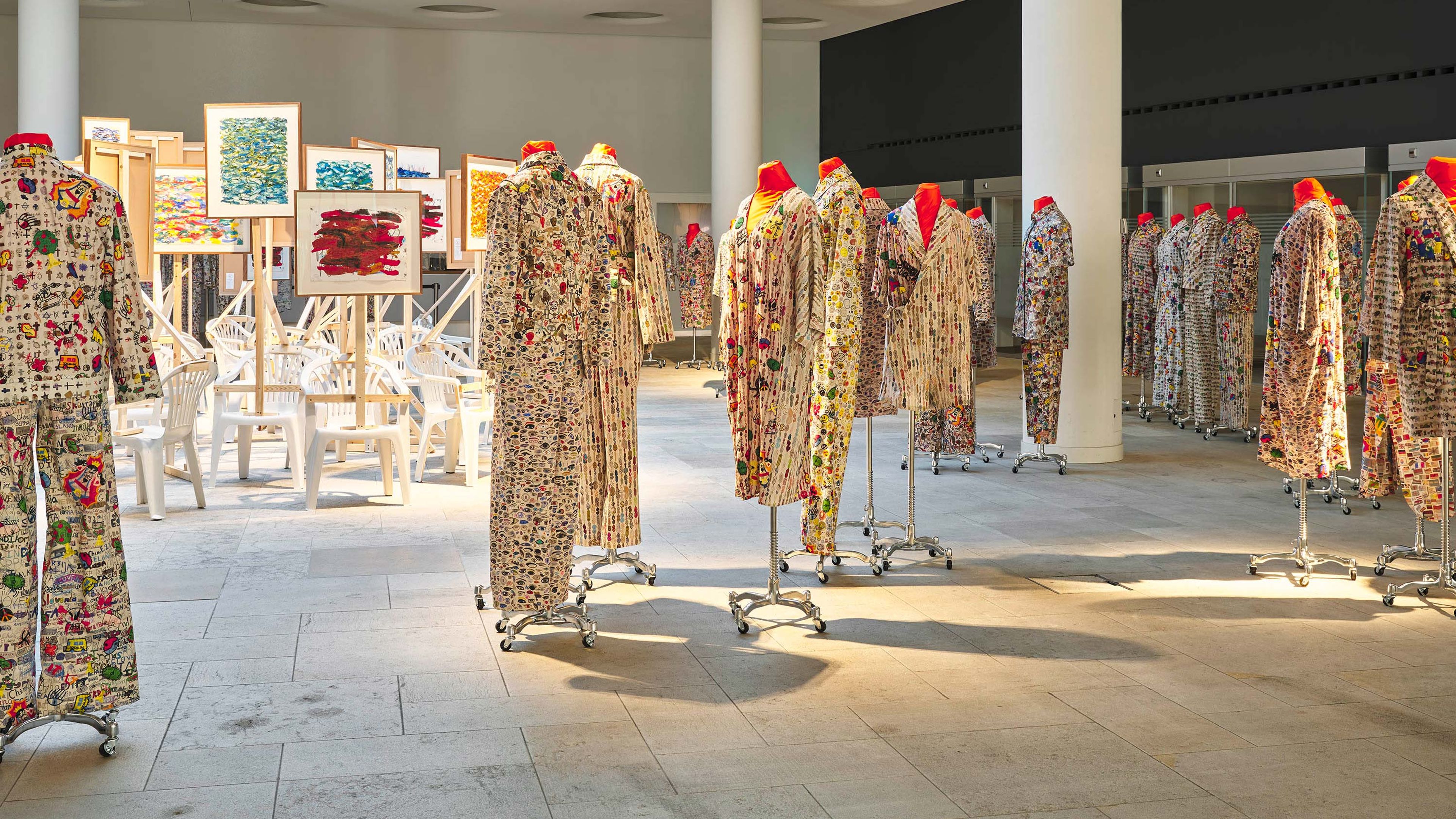 Installation view, Oscar Murillo, Social Cataracts, Art Basel Parcours, 2022. Photo by Reinis Lismanis