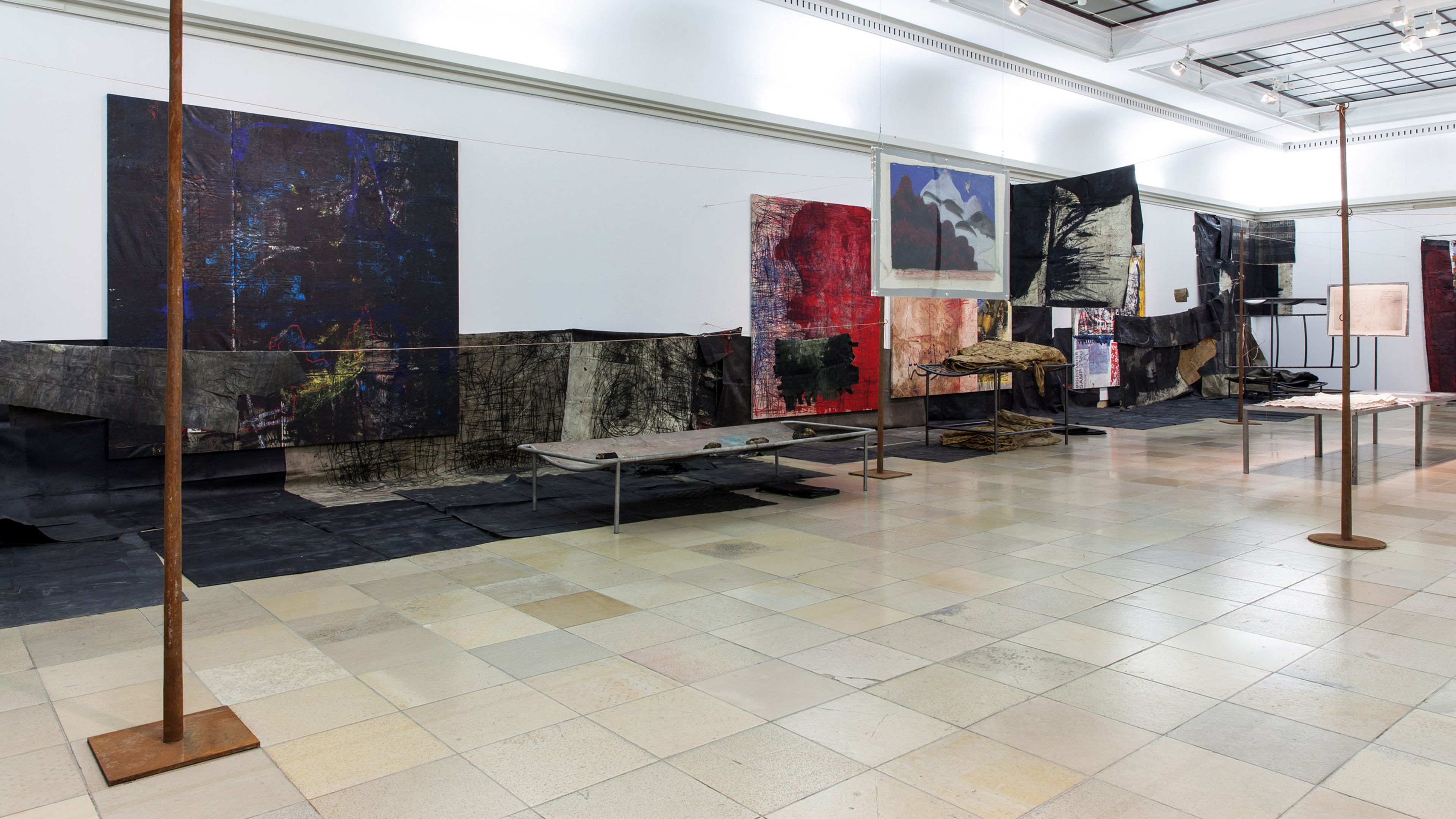 Installation view, Capsule 07: Oscar Murillo, Haus der Kunst, Munich, 2017. Photo by Maximilian Geuter