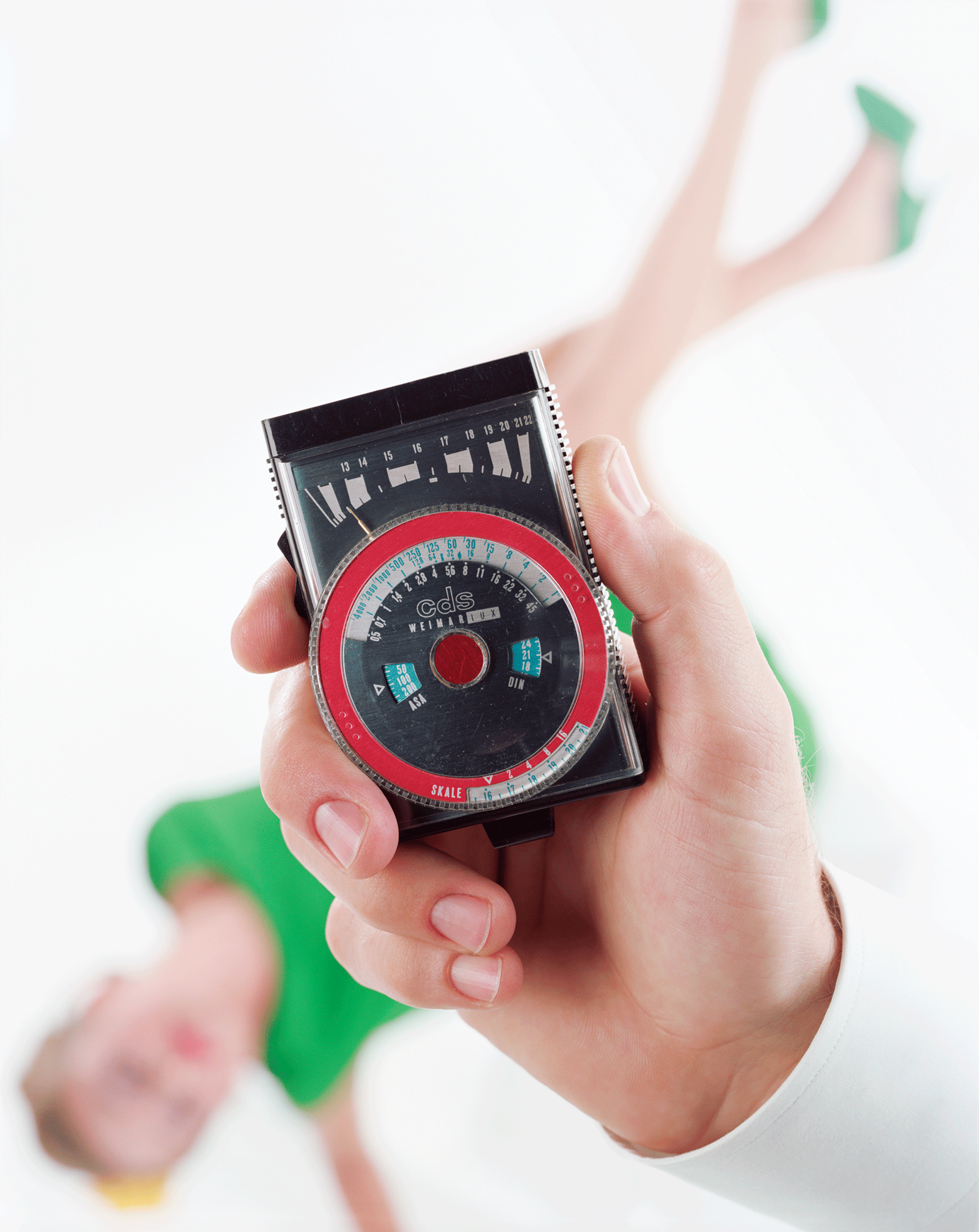 Christopher Williams Weimar Lux CDS, VEB Feingerätewerk Weimar Price 86.50 Mark GDR Filmempfindlichkeitsbereich 9 bis 45 DIN und 6 bis 25000 ASA Blendenskala 0,5 bis 45, Zeitskala 1/4000 Sekunde bis 8 Stunden, ca. 1980 Models: Ellena Borho and Christoph Boland November 12, 2010