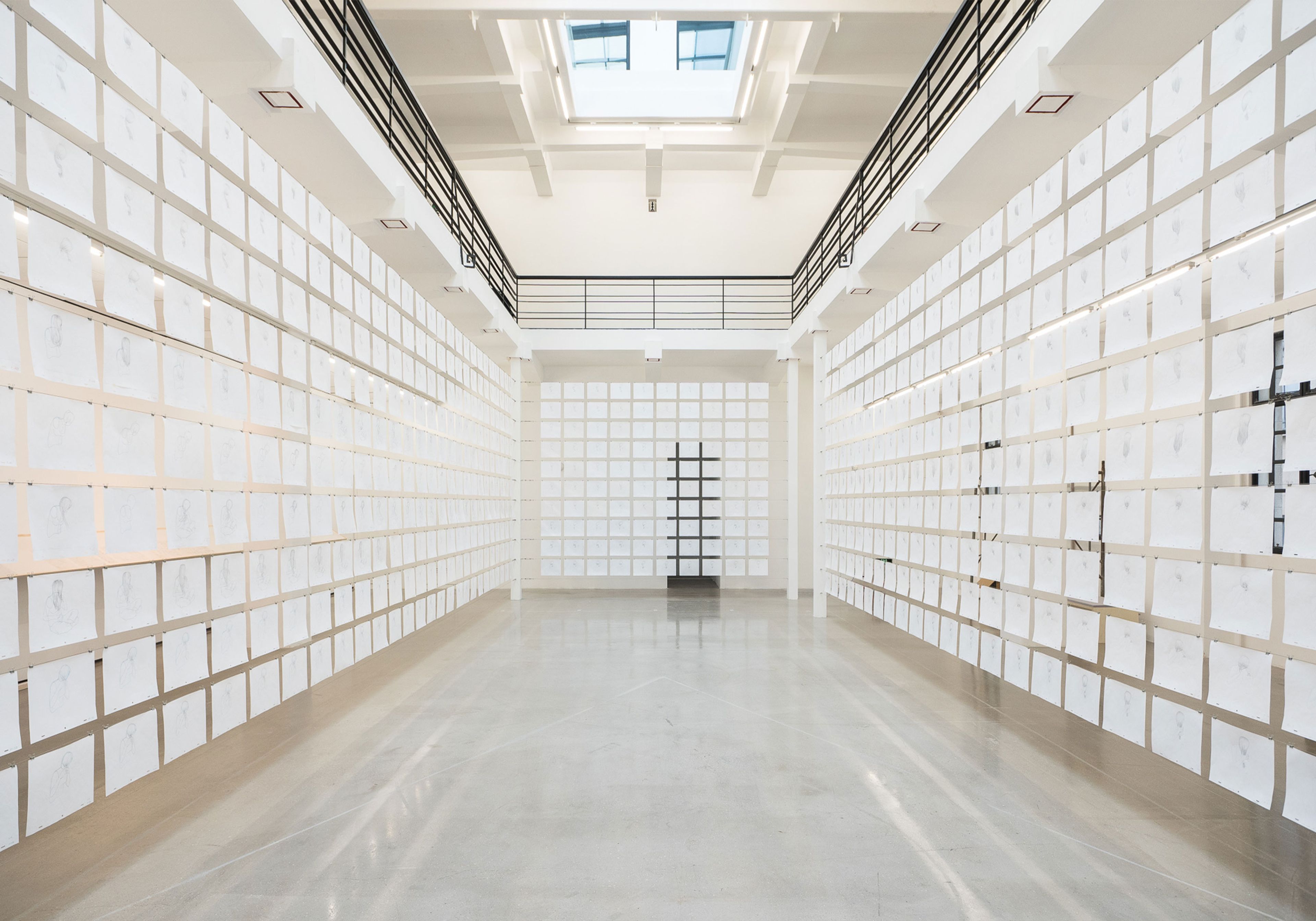 Graphite on paper in eight hundred and fifty (850) parts and single channel video, 17 min 8 sec