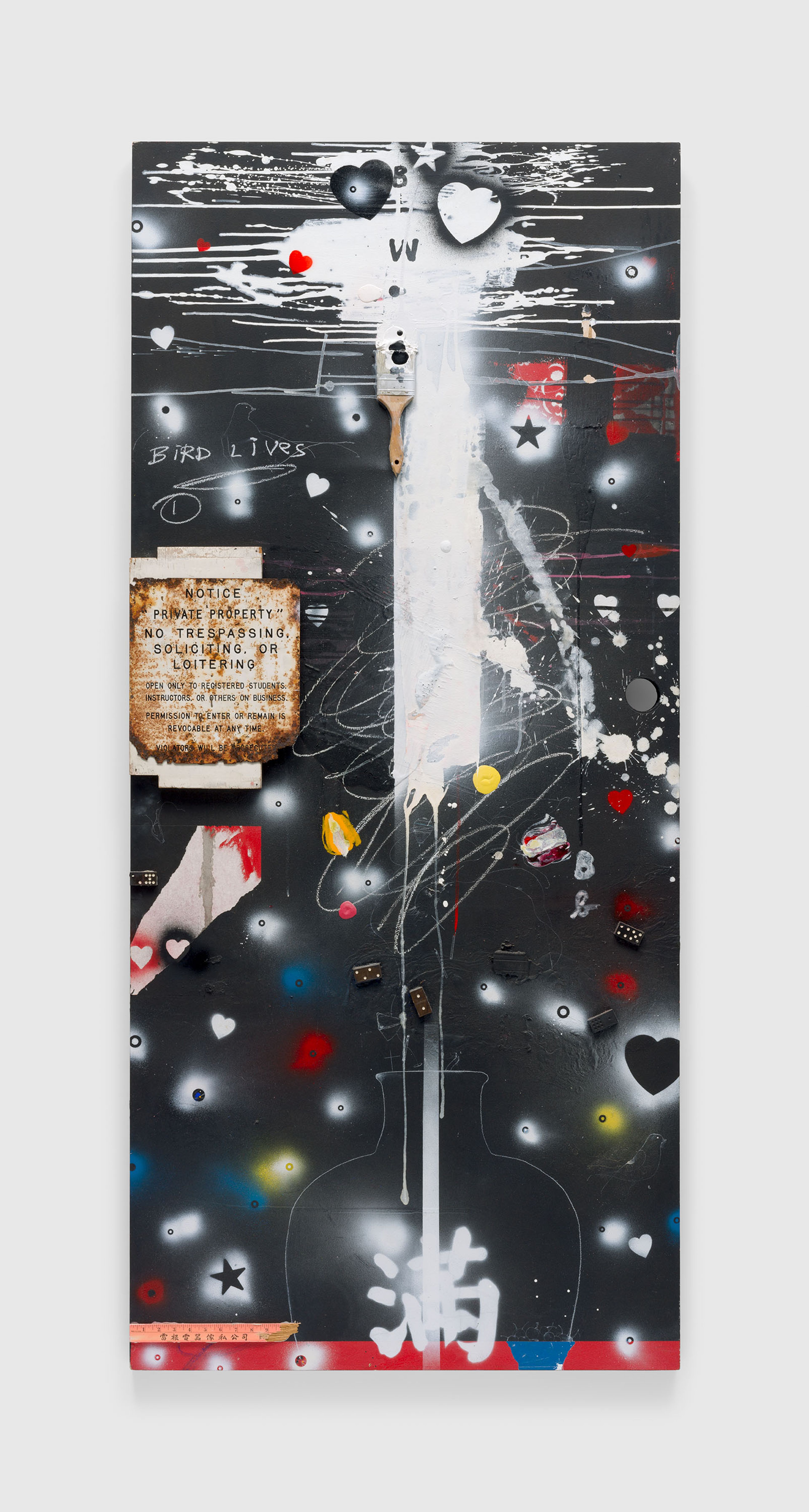 Acrylic, spray paint, chalk, collage, and mixed media on door