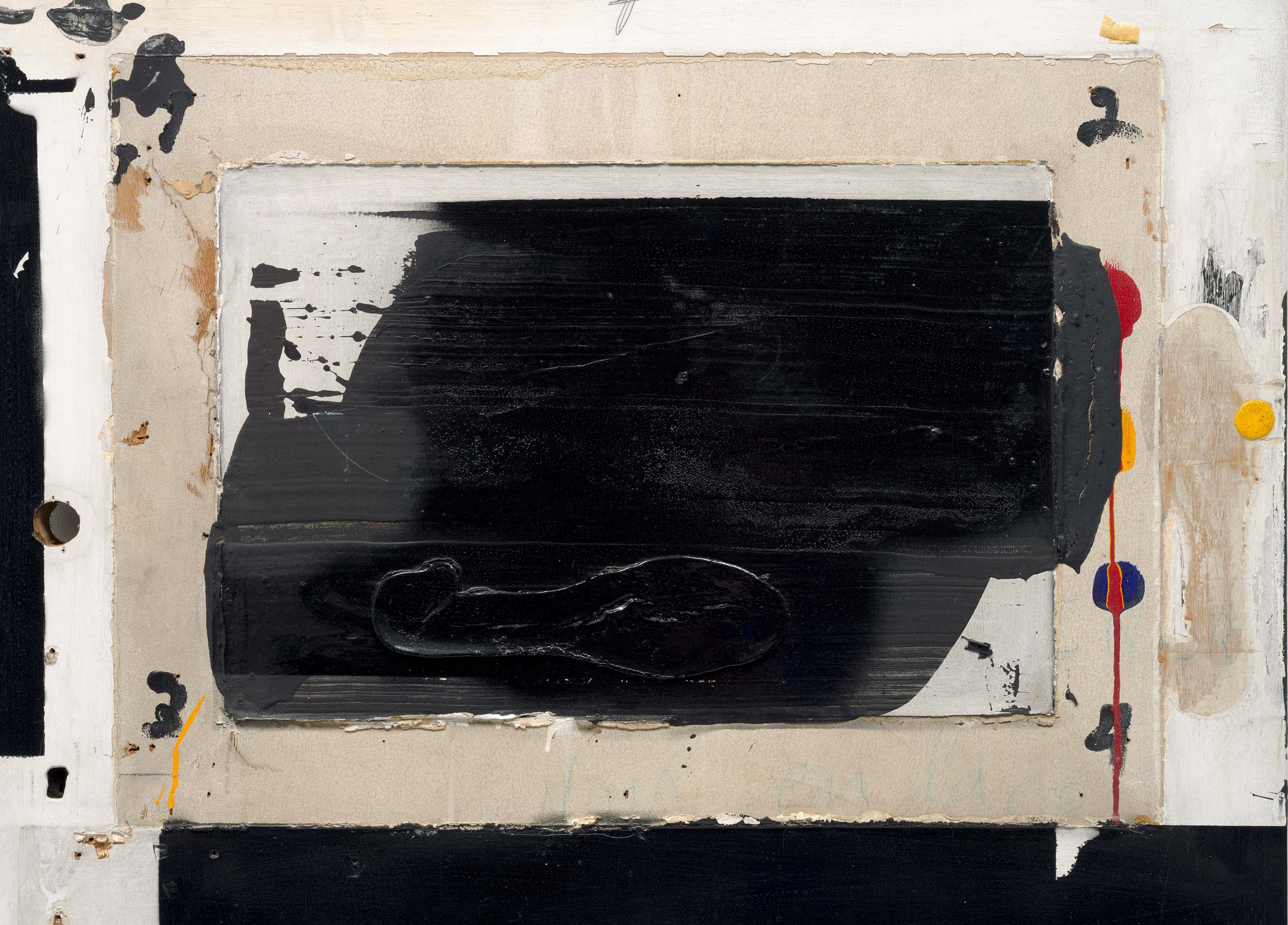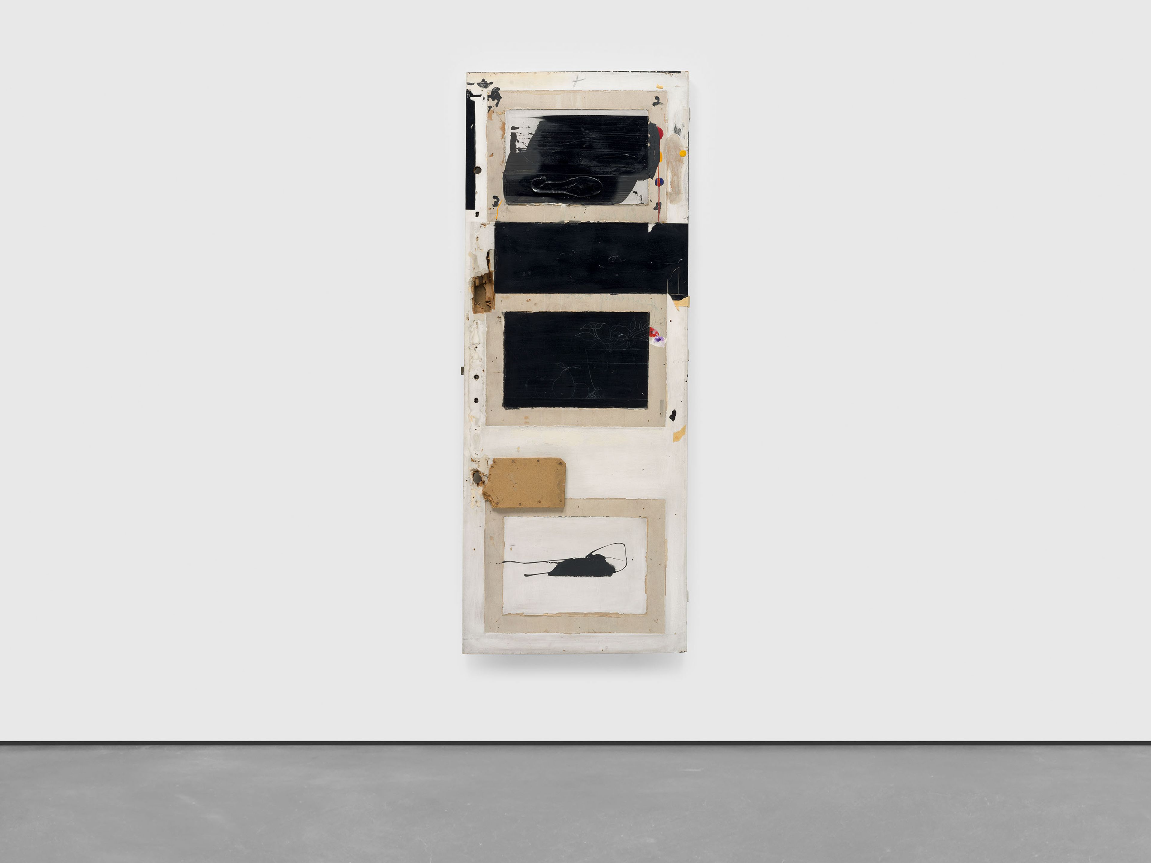 Acrylic, chalk, collage, and mixed media on door