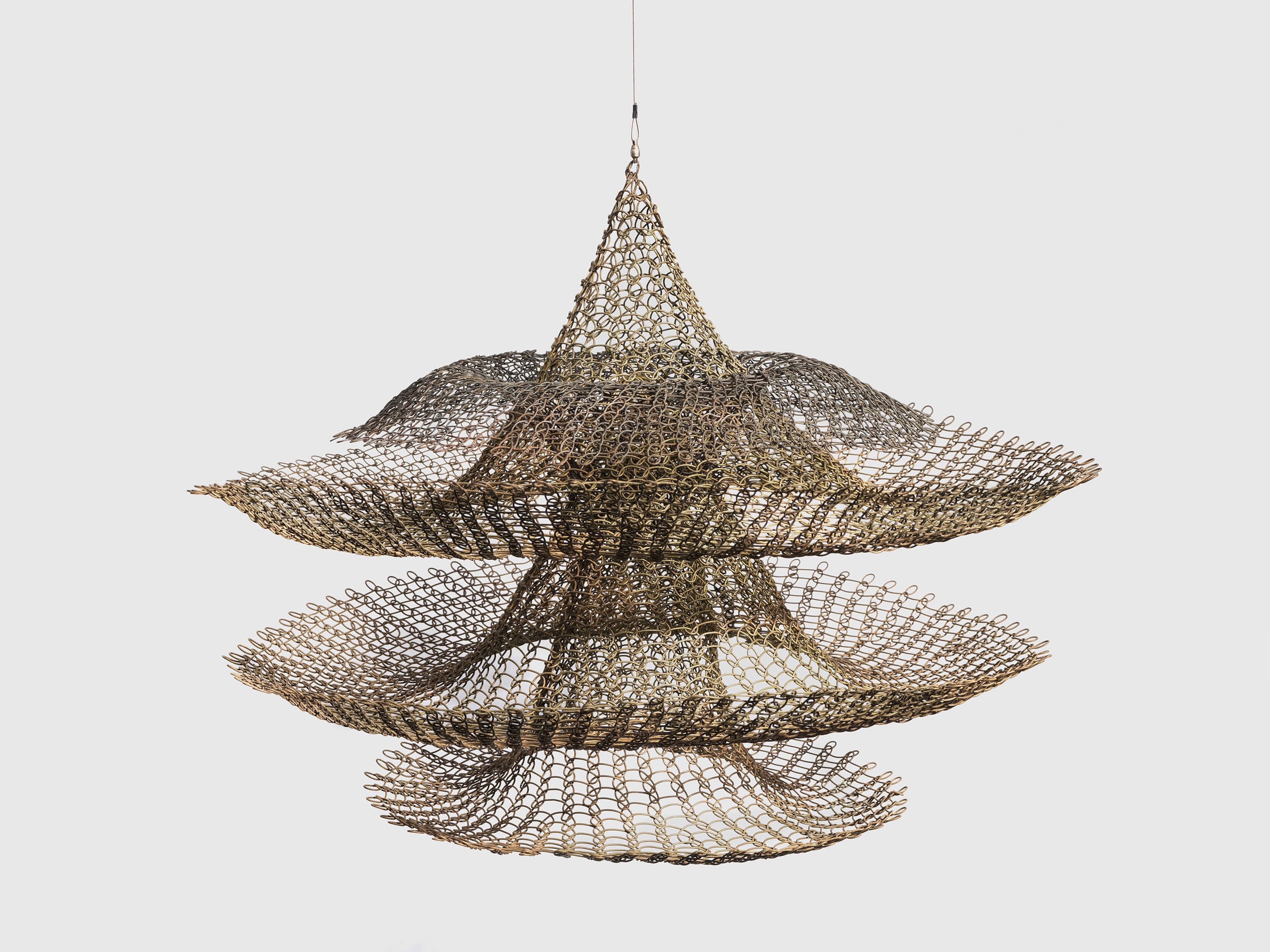 Hanging sculpture—brass and steel wire