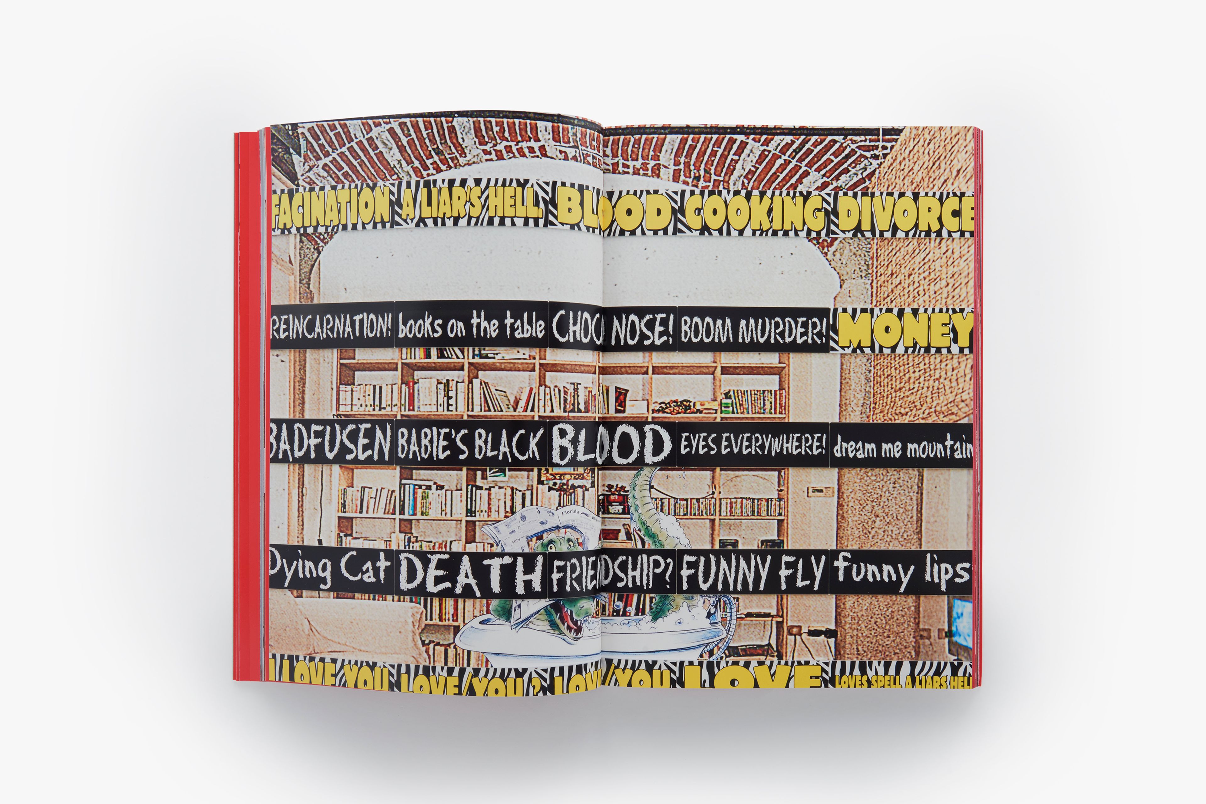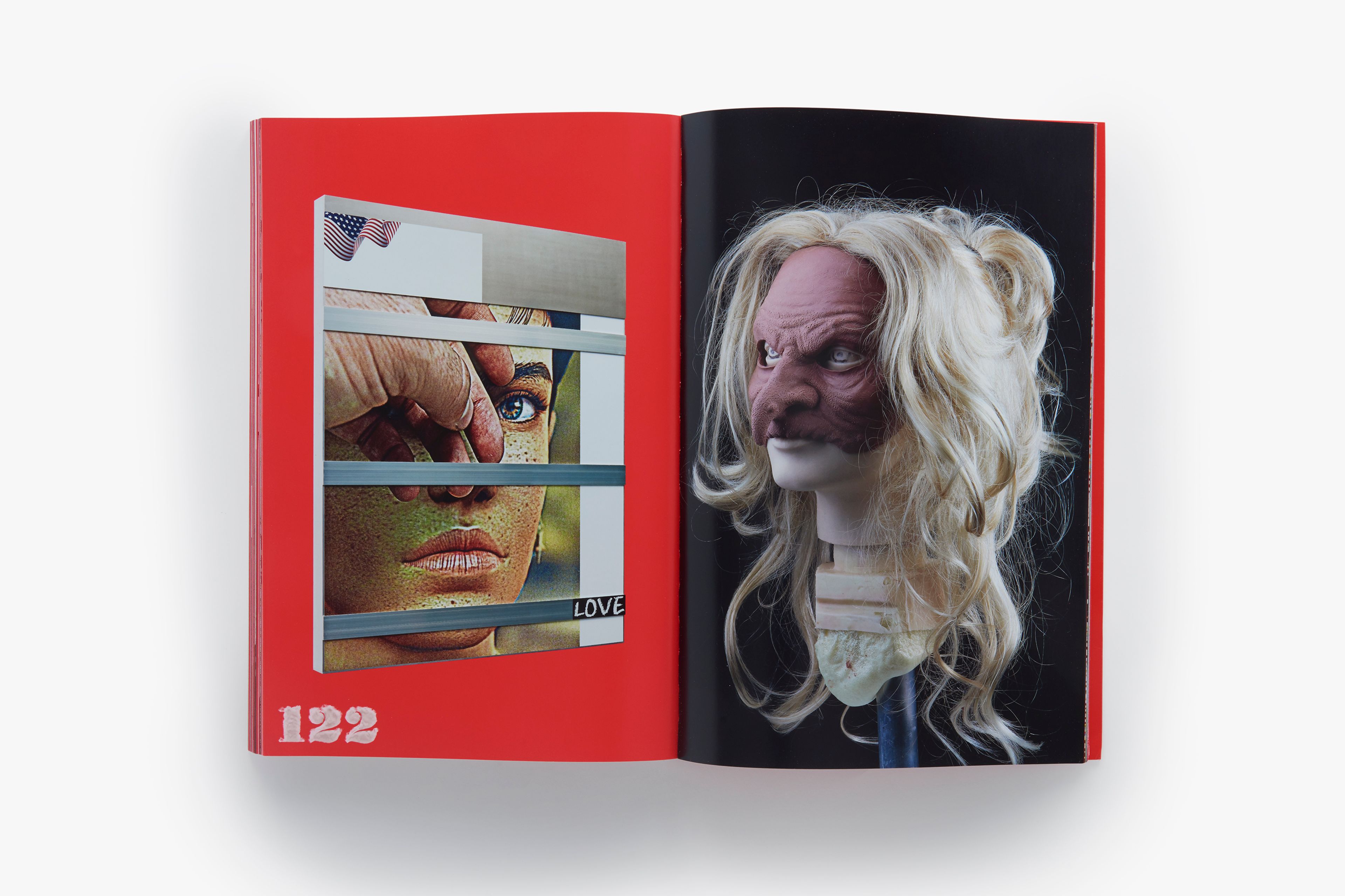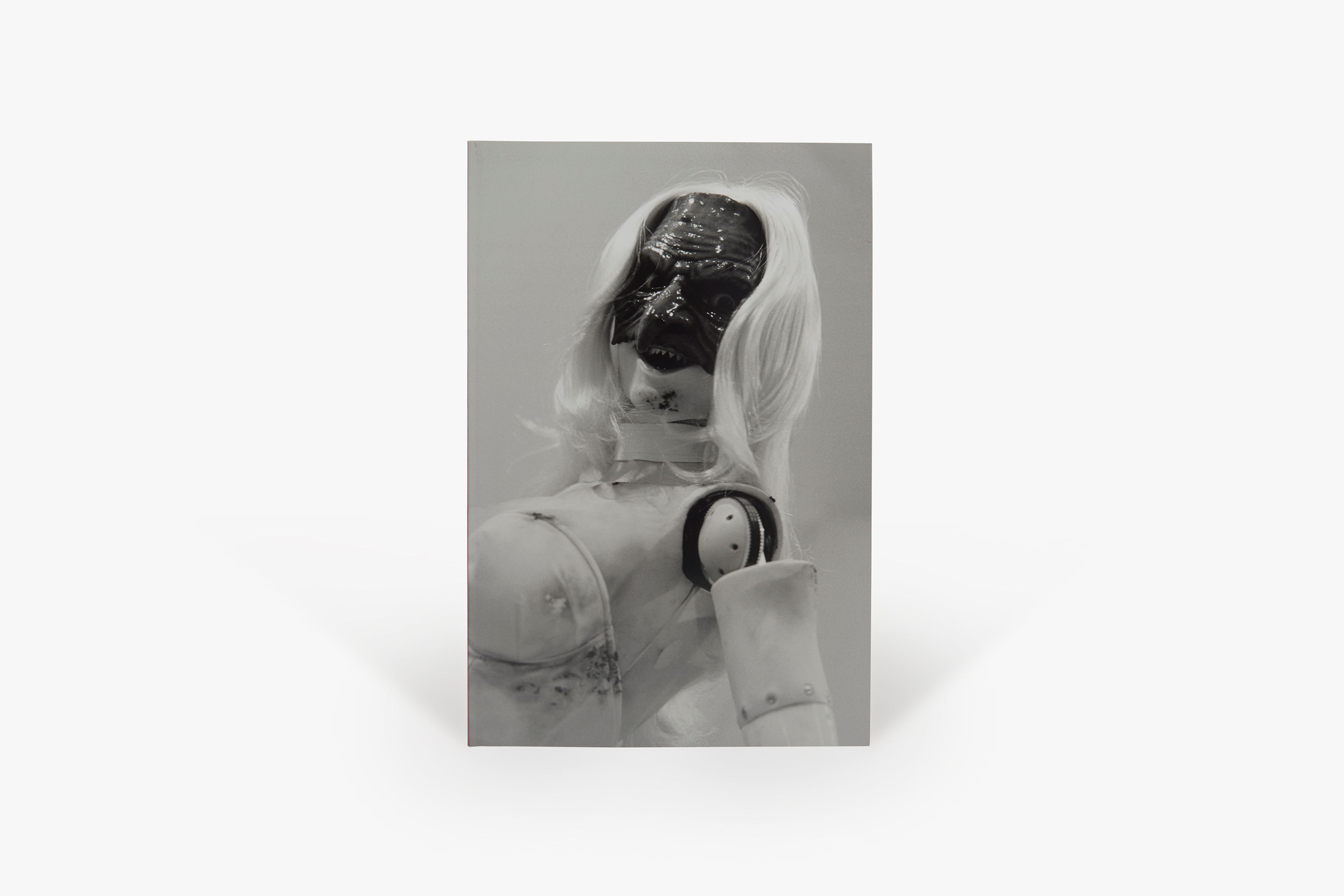 This artist’s book is the product of close collaboration between Wolfson and the book designer Joseph Logan. Initially conceived to document the artist’s 2014 exhibition at David Zwirner in New York—his first with the gallery, debuting new sculptural work, a critically acclaimed video, and a much-discussed animatronic sculpture—the publication ultimately exists as a hybrid between an exhibition catalogue and a stand-alone expression of Wolfson’s vision. Featuring a dynamic layout and large color plates, the book is anchored by extensive photo documentation of Wolfson’s bewitching (Female figure) 2014, which combines elements of installation and performance in the figure of a curvaceous, scantily clad woman covered in dirt marks and wearing a witch mask. Presented are photographs by Andreas Laszlo Konrath, who documented many aspects of the exhibition, including behind-the-scenes images of its installation. Also included are reproductions of Wolfson’s new series of wall-mounted sculptures comprised of bumper stickers overlaid on inkjet prints, candid photographs of the artist taken by Gaea Woods, and a text by the artist providing context for the visual material.