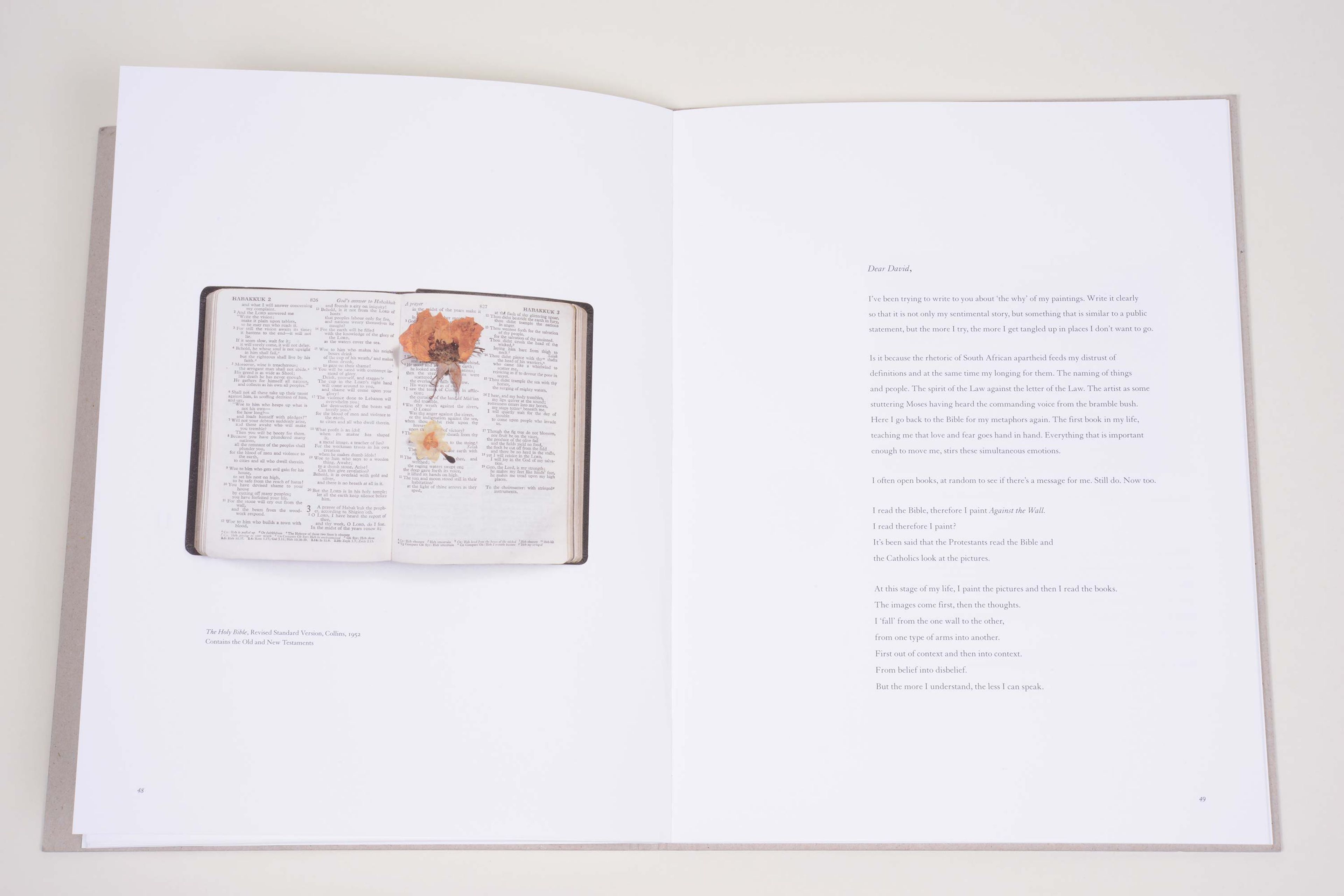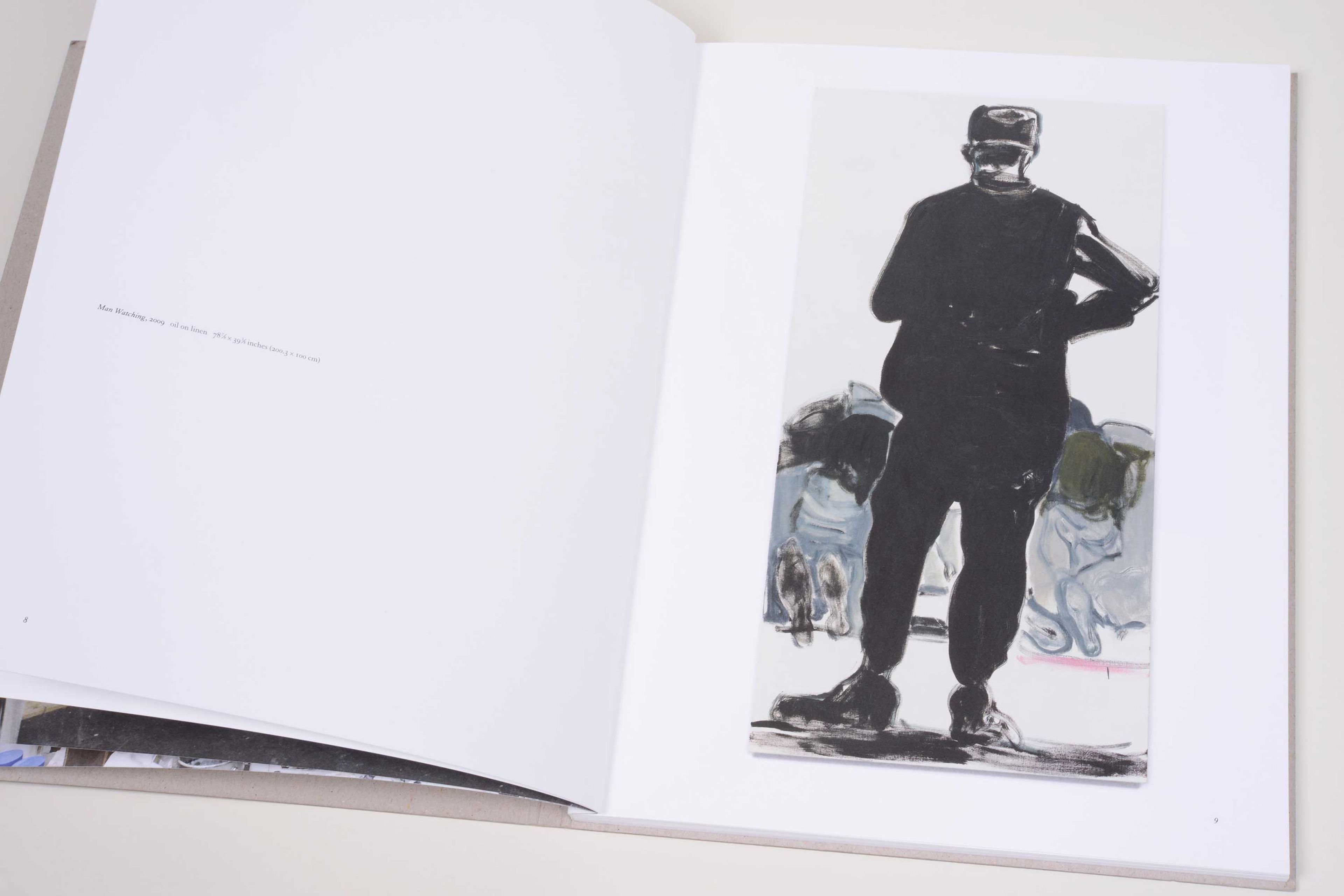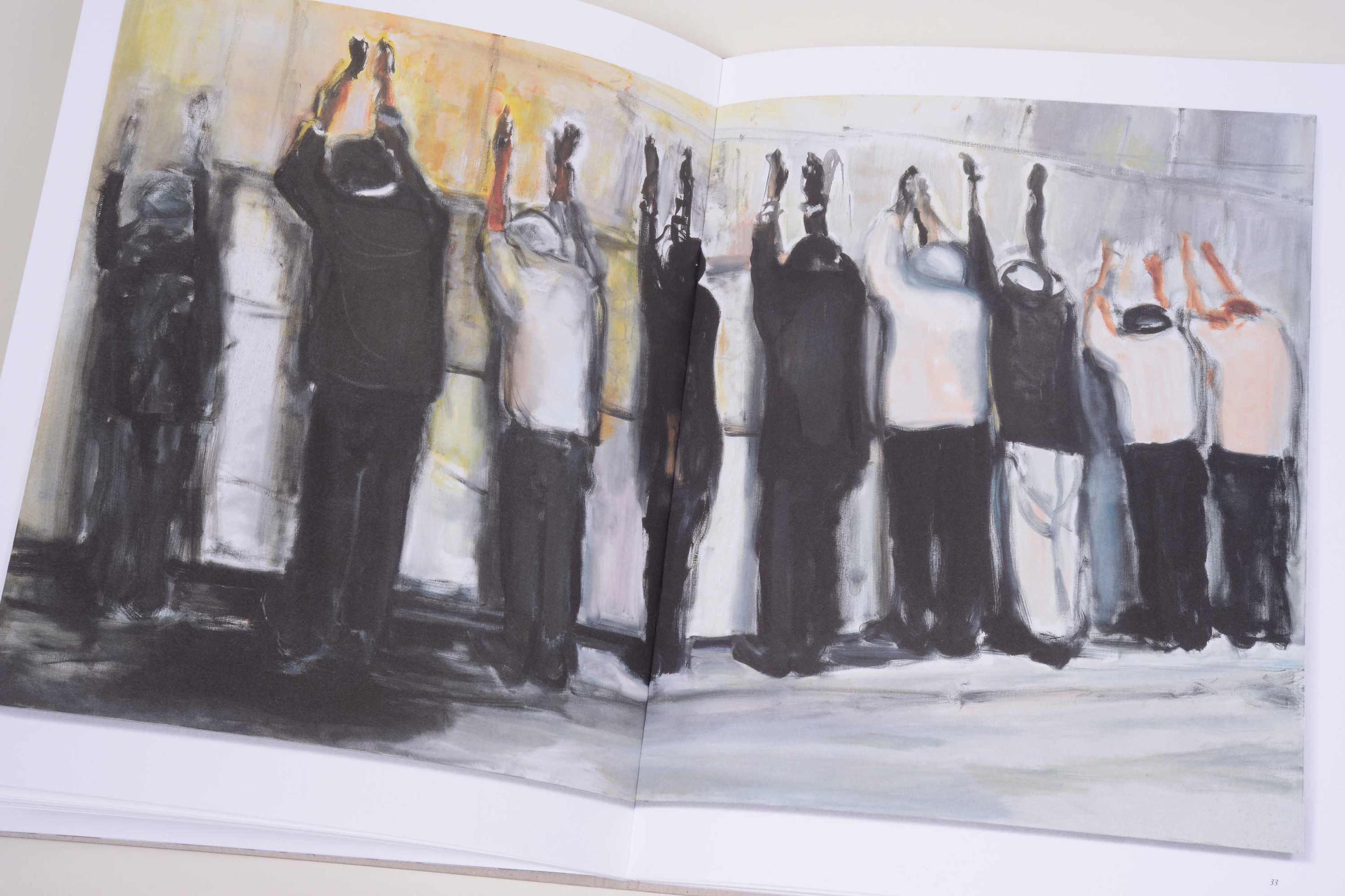 Throughout her career, the internationally renowned artist has continually created lyrically charged compositions that eulogize the frailties of the human body, probing issues of love and melancholy. At times her subjects are more topical, merging socio-political themes with personal experience and art-historical antecedents to reflect unique perspectives on the most salient and controversial issues facing contemporary society. The large-scale works included in Against the Wall are primarily based on media imagery and newspaper clippings documenting the conflict between Israel and Palestine, exploring the tension between the photographic documentation of reality and the constructed, imaginary space of painting. The Wall, the painting that began the series, at first appears to present a scene at the Western Wall (also known as the Wailing Wall), an important site of religious pilgrimage located in Jerusalem. However, this work is based upon a photograph from a newspaper that portrayed a group of Orthodox Jews on their way to pray at Rachel’s Tomb in Bethlehem. Through her delicate treatment of every scene, Dumas destabilizes preconceived notions about what, in fact, is being pictured—engaging the often ambiguous nature of ideas like truth or justice. “In a sense they are my first landscape paintings,” Dumas further notes in the catalogue, “or should I say ‘territory paintings.’ That is why they are so big.” The somber color plates reproduced in the publication are given context by Dumas’s own musings, a text framed as a letter to David Zwirner in which she tries to tell him “about the ‘why’ ” of this powerful series.