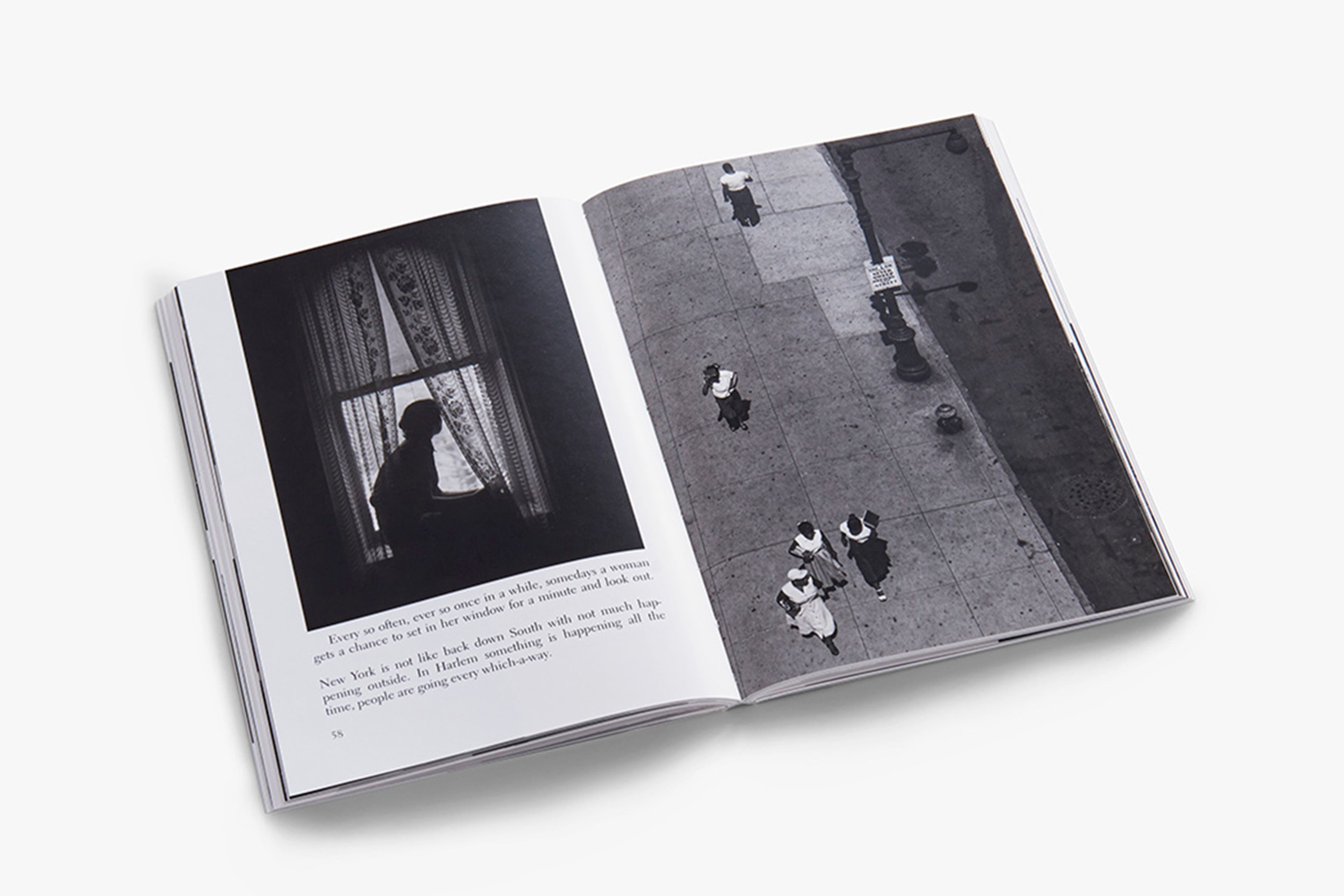 Hughes’s heart-warming description of Harlem in the late 1940s and early 1950s is seen through the eyes of one grandmother, Sister Mary Bradley. As she guides the reader through the lives of those around her, we imagine the babies born, families in struggle, children yet flourishing. We experience the sights and sounds of Harlem as seen through her learned and worldly eyes, expressed here through Hughes’s poetic prose. As she states, “I done got my feet caught in the sweet flypaper of life and I’ll be dogged if I want to get loose.” DeCarava’s photographs lay open a world of sense and feeling that begins with his perception and vision. The ruminations go beyond the limit of simple observation and contend with deeper meanings to reveal these individuals as subjects worthy of art. While Hughes states “We’ve had so many books about how bad life is, maybe it’s time to have one showing how good it is,” the photographs bring us back to this lively dialogue and a complex reality, to a resolution that stands with the optimism of the photographic medium and the certainty of DeCarava’s artistic moment.