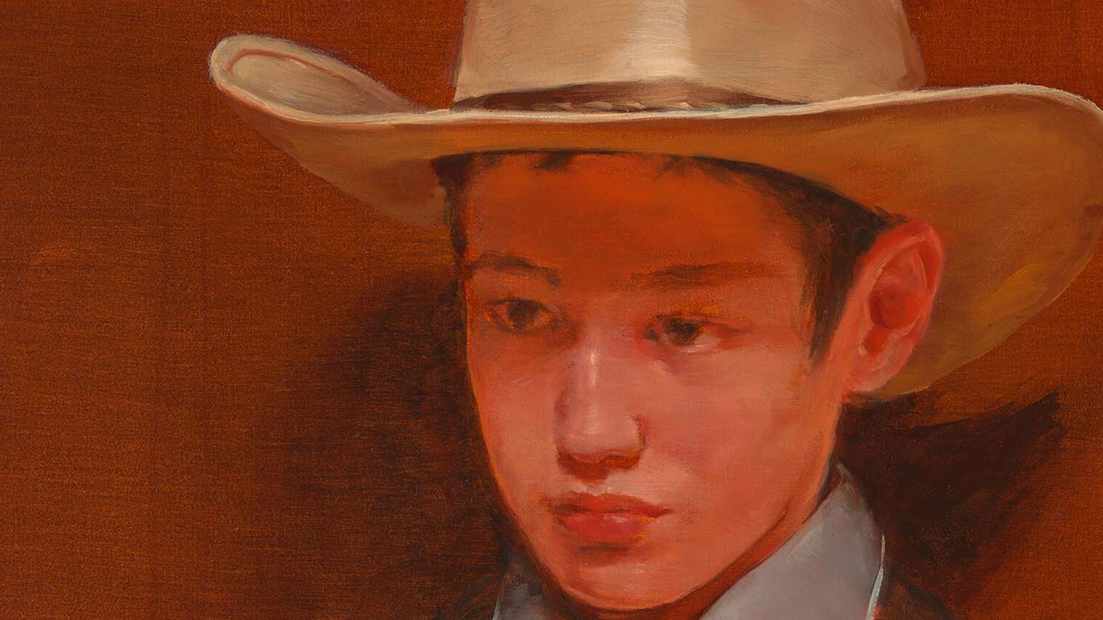 The cowboy’s costume is significant for its repeated use in storytelling, art, and film, and for the shorthand we ascribe to it. It brings numerous adjectives up the throat, not unlike acid reflux. This seems deliberate. A misdirection. Everything else about the work is deliberate, after all: the technical approach, which is measured and precise; the controlled and static subject; even the setting, or absence of one. The cowboy appears site-specific to a box or a dark room, and not at all free to roam.