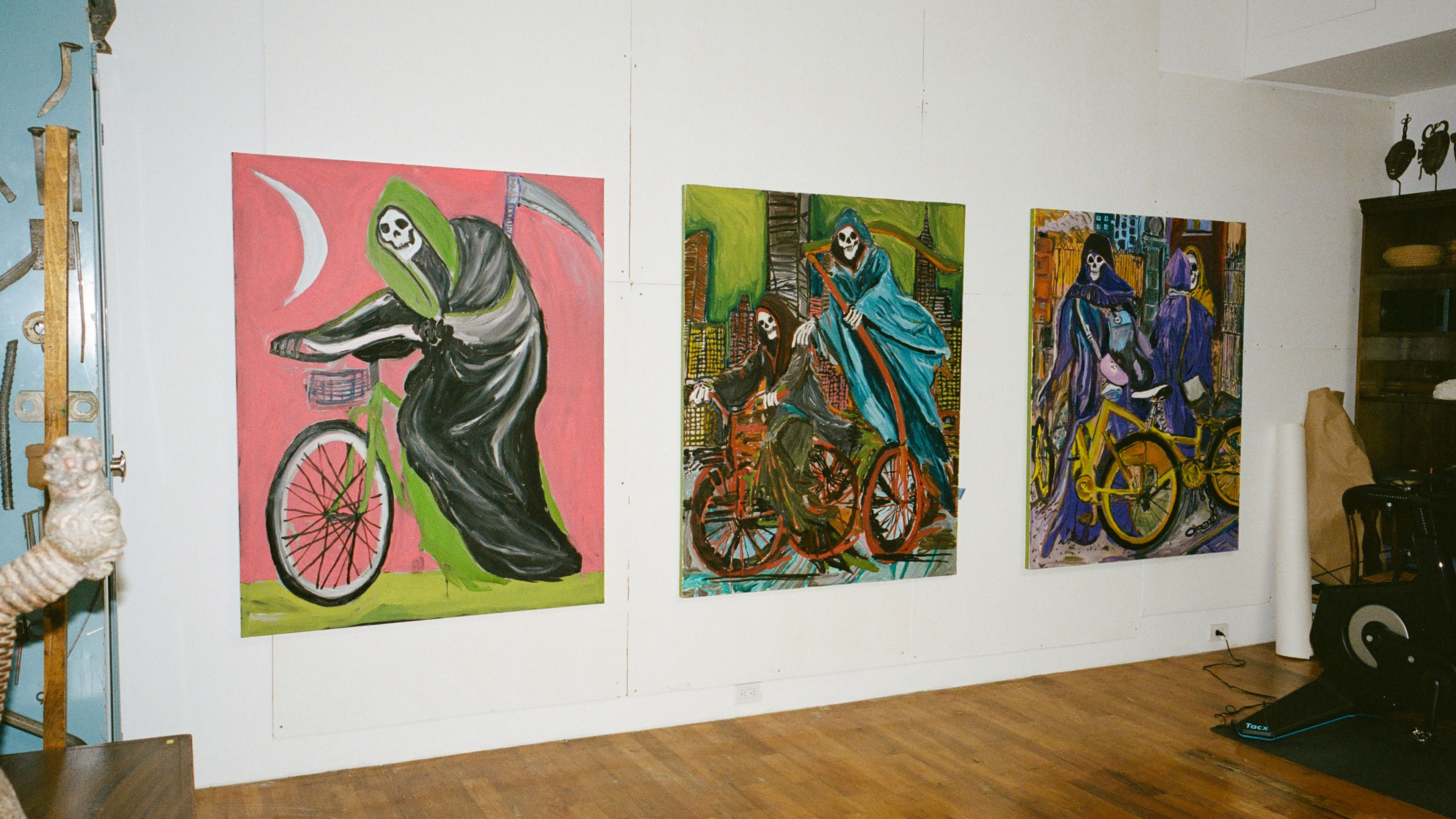 The artist takes us on a ride-along through his new solo exhibition, featuring Grim Reapers set loose on wheels all over New York City.