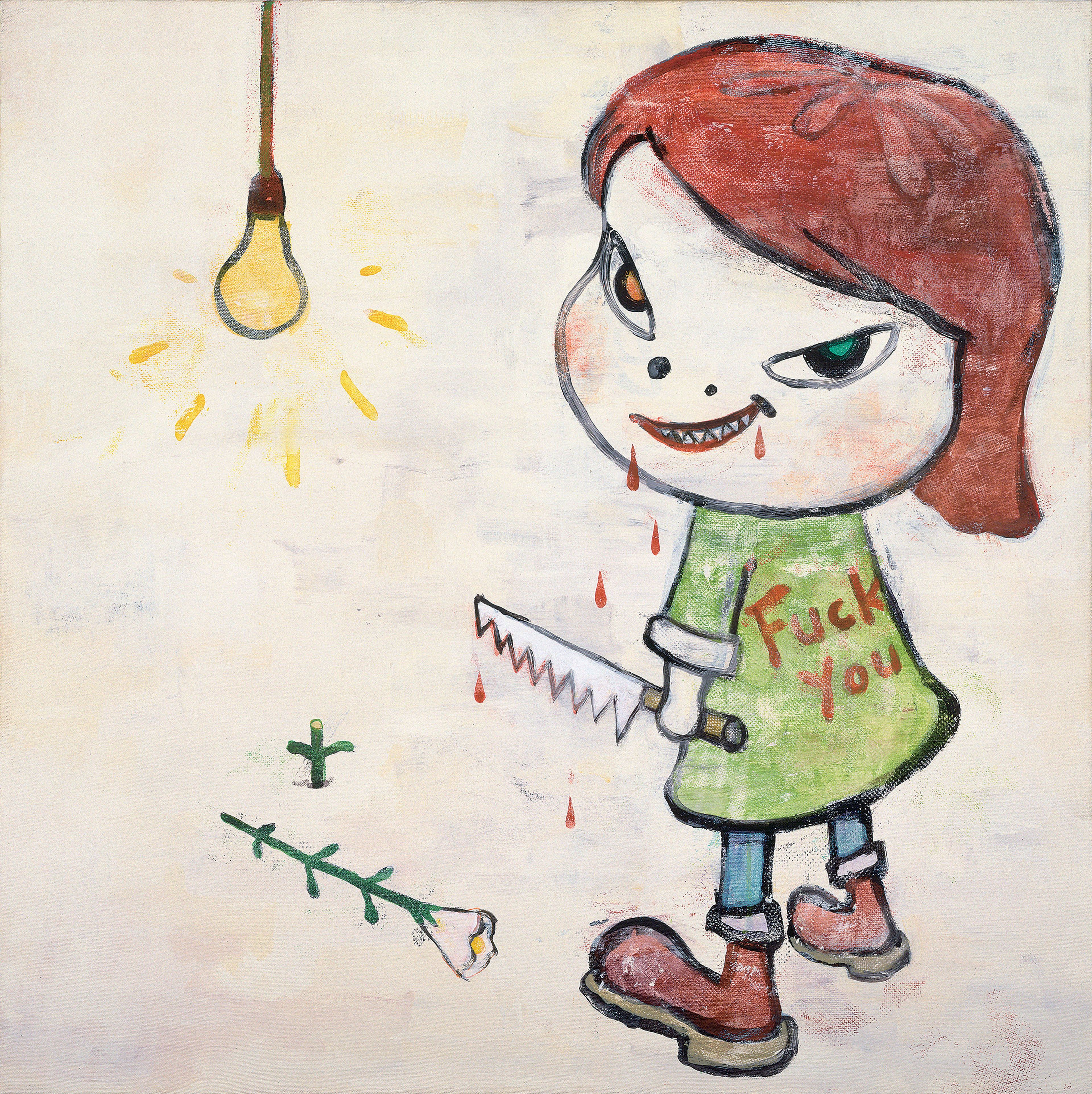 Yoshitomo Nara was born in 1959 in Hirosaki, Aomori Prefecture, Japan. He received his BFA (1985) and MFA (1987) from Aichi Prefectural University of the Arts, Nagakute, Japan. From 1988 to 1993, Nara was enrolled at Kunstakademie Düsseldorf, Germany, where he was taught by German neo-expressionist painter A. R. Penck. Nara has served as a visiting professor at University of California, Los Angeles (1998), École nationale supérieure des Beaux-Arts, Paris (2003), and Musashino Art University, Tokyo (2006).
