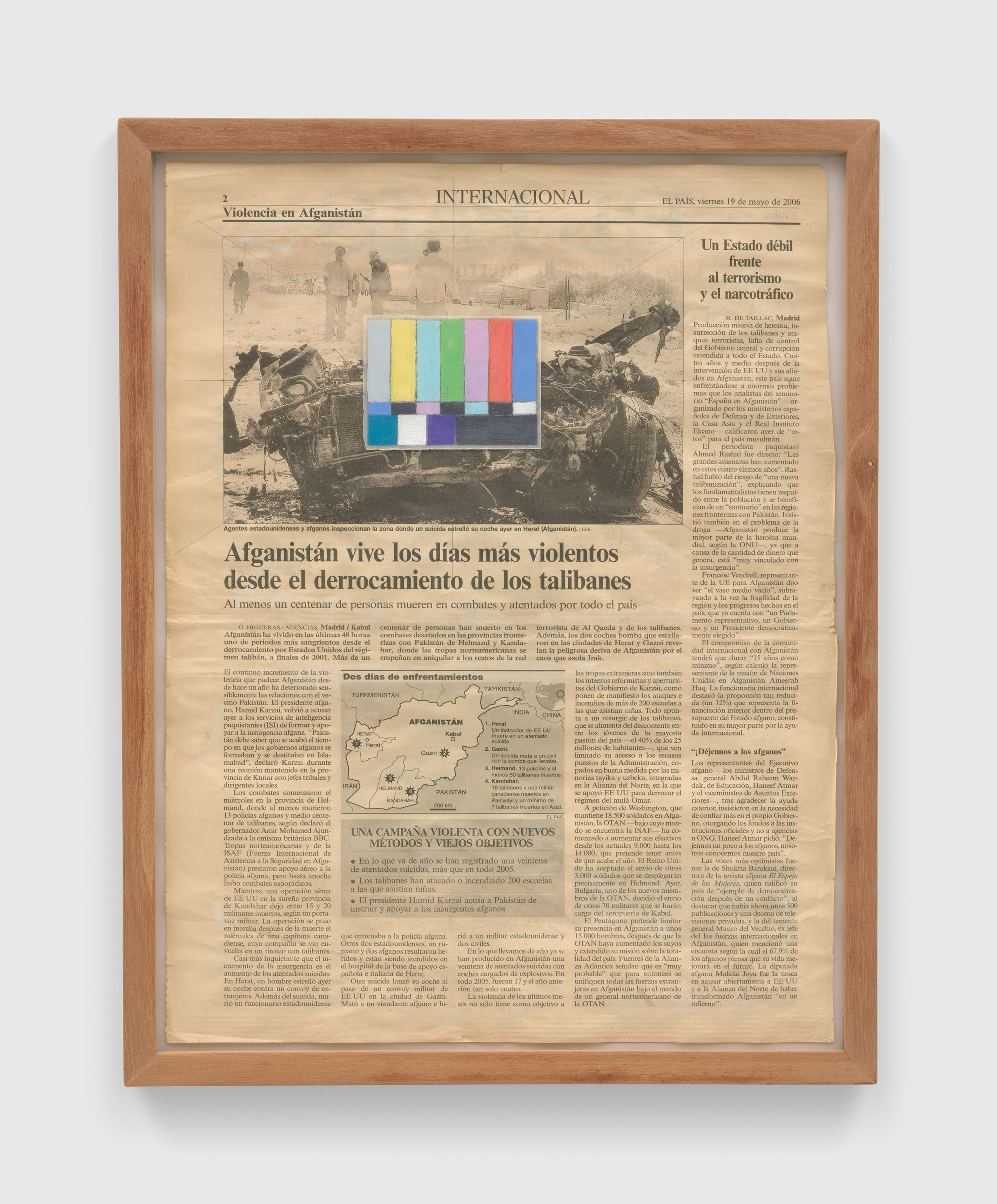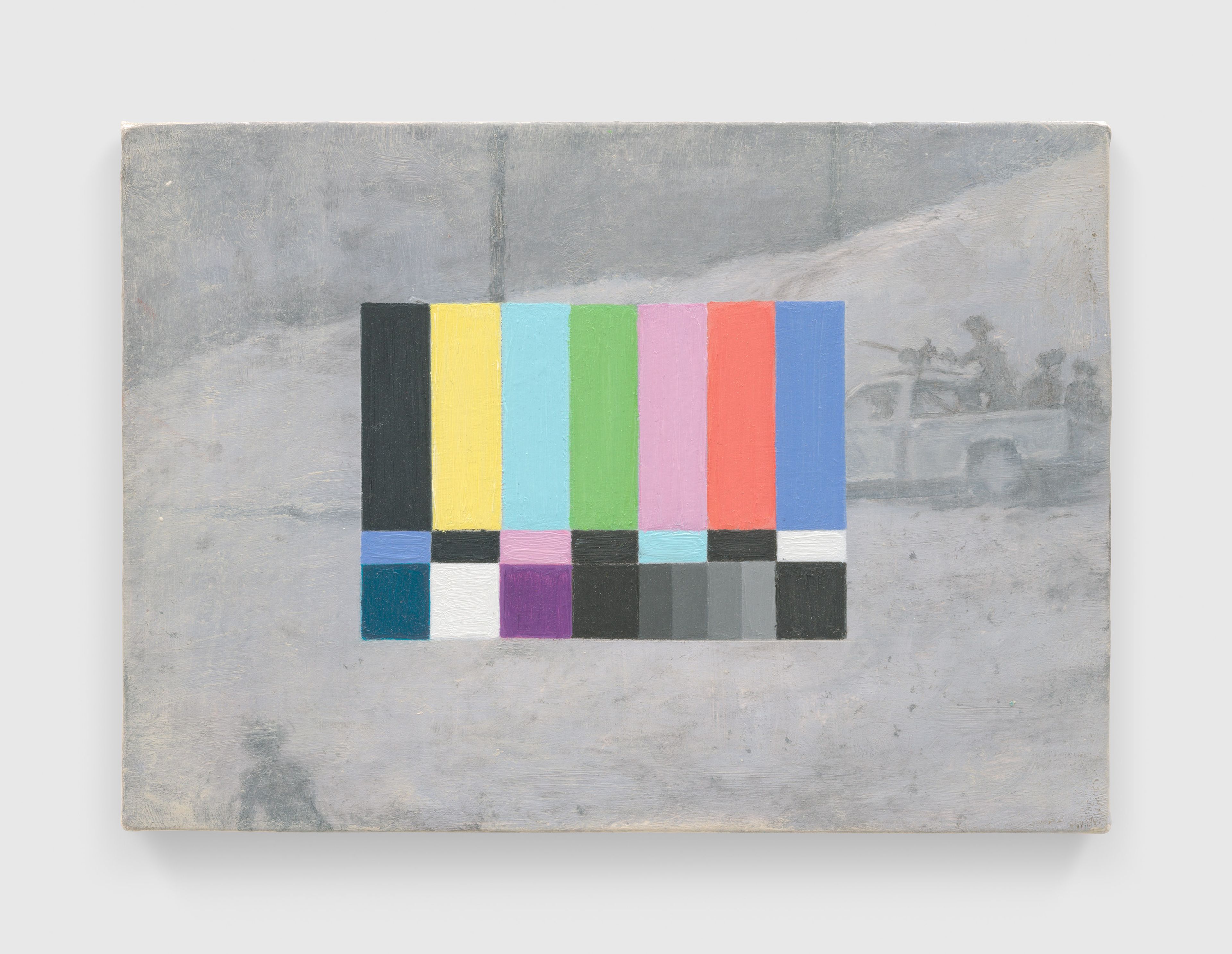 Painting 1: Oil on canvas on wood panel; Painting 2: Oil on canvas on wood panel; Painting 3: Oil on canvas on wood panel; Drawing: Oil on tracing paper on printed matter