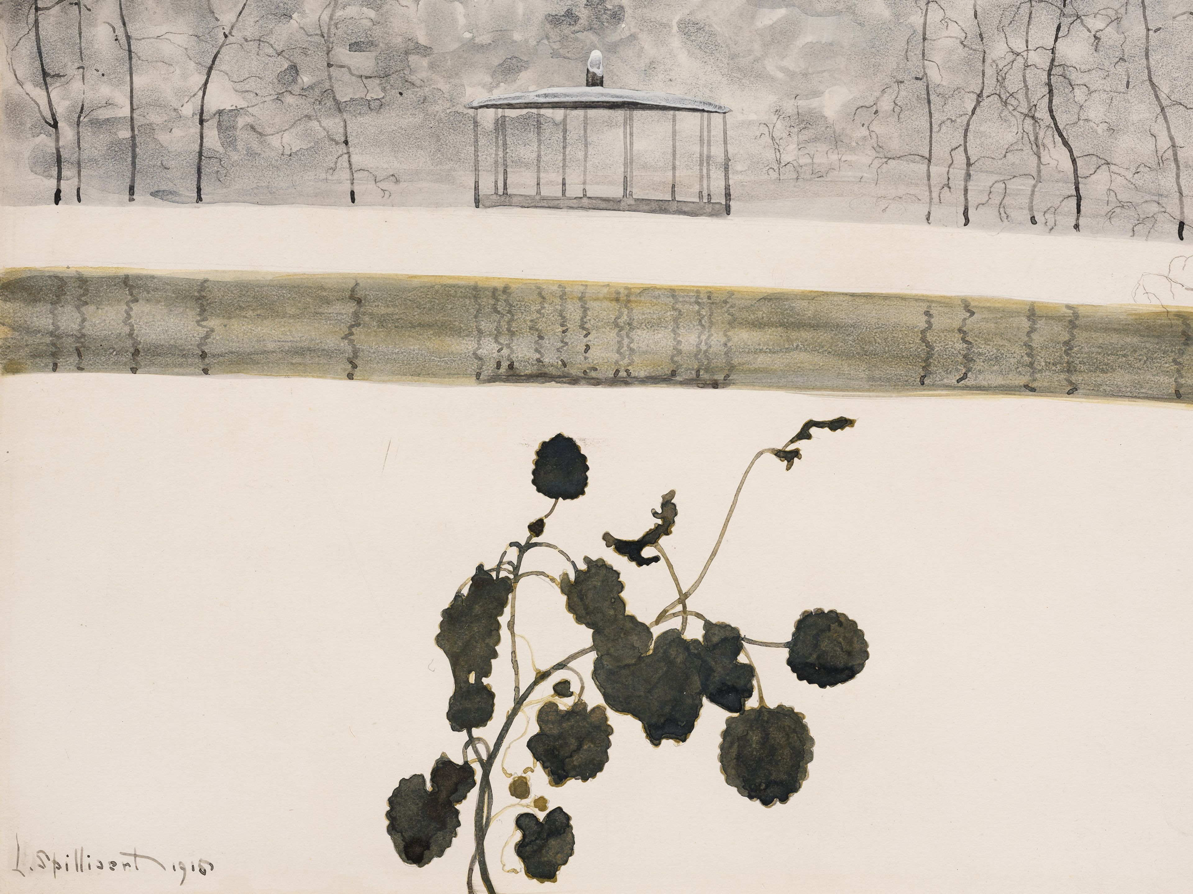 Le parc Léopold sous la neige, lierre et kiosque (The Leopoldpark under the Snow with Ivy and Kiosk), 1915