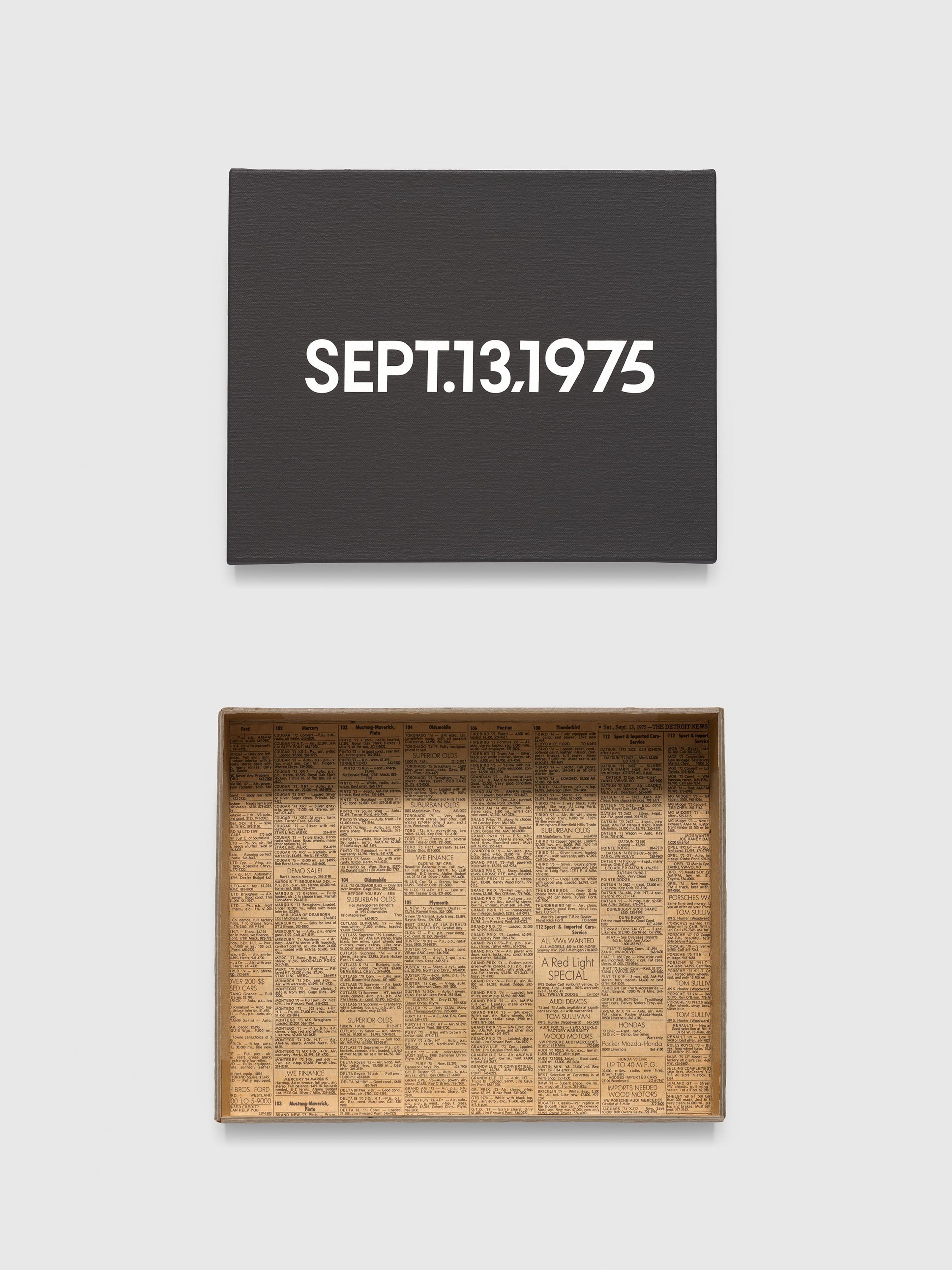 On Kawara AUG. 27, 1970; NOV. 6, 1971; APR. 18, 1972; JUNE 11, 1973; MAR. 31, 1974; SEPT. 13, 1975; 28. AUG. 1976; DEC. 29, 1977; MAY 2, 1978; 12. SEPT. 1979, 1970-1979 Ten (10) paintings from "Today," 1966-2013