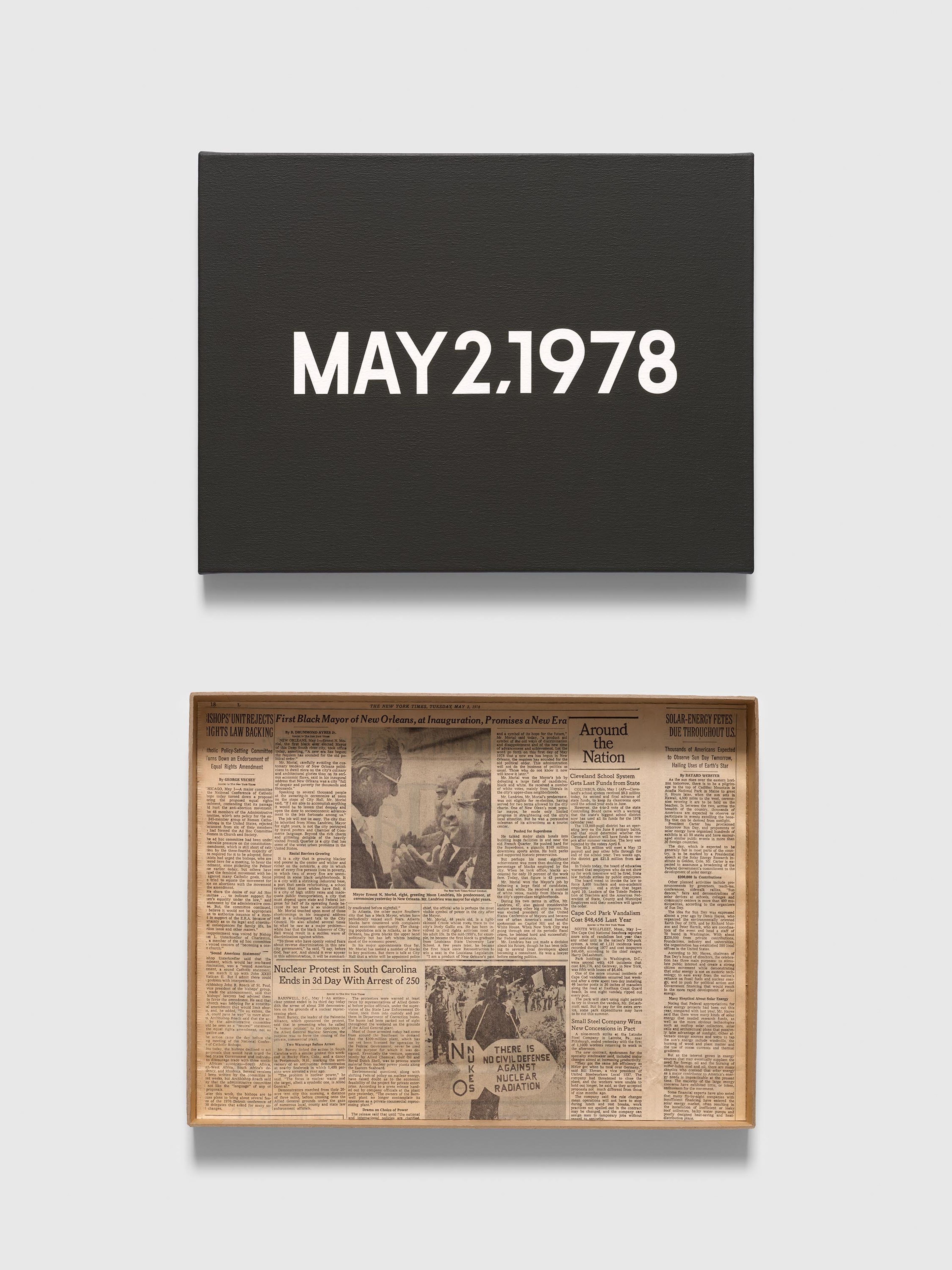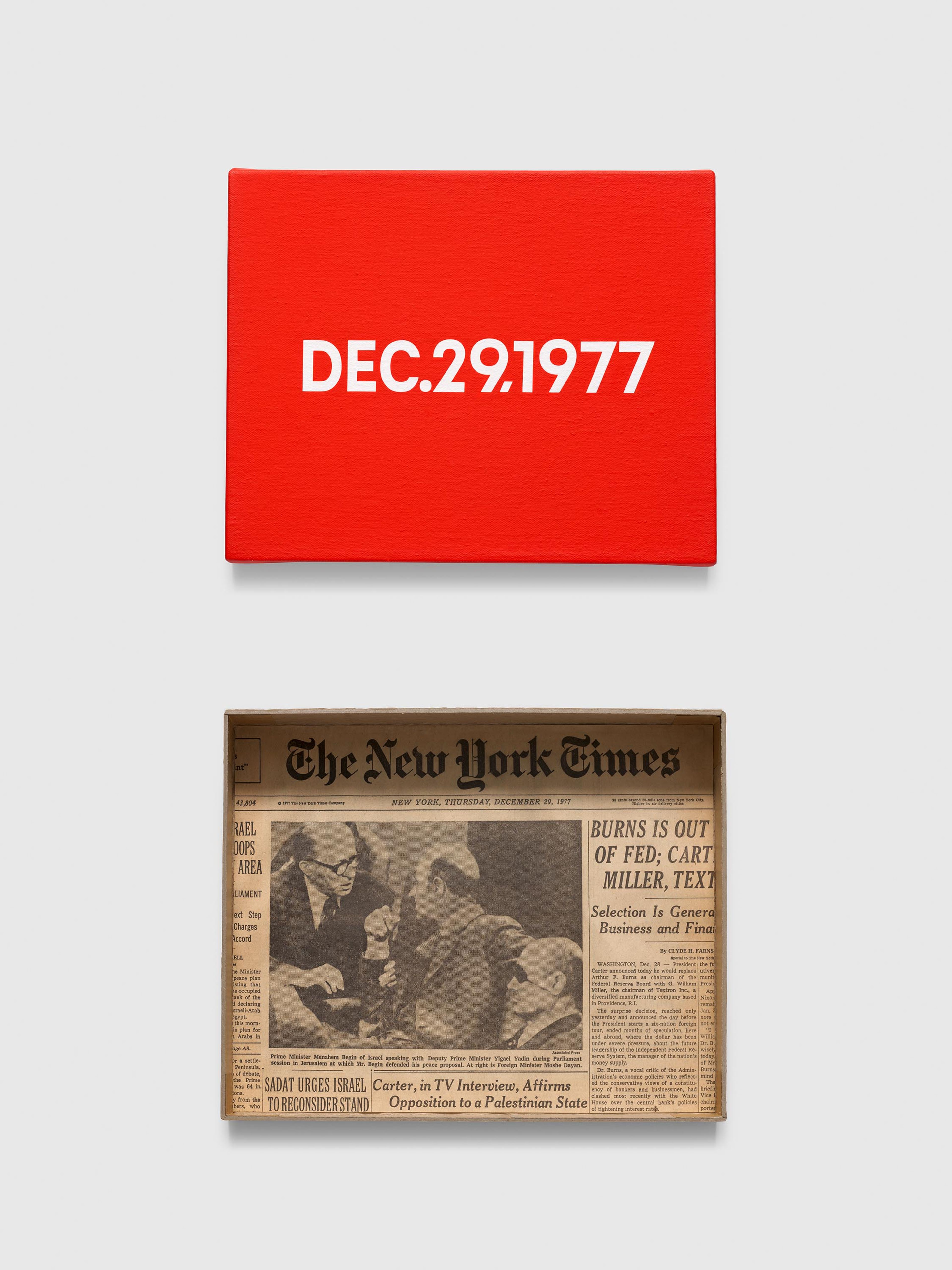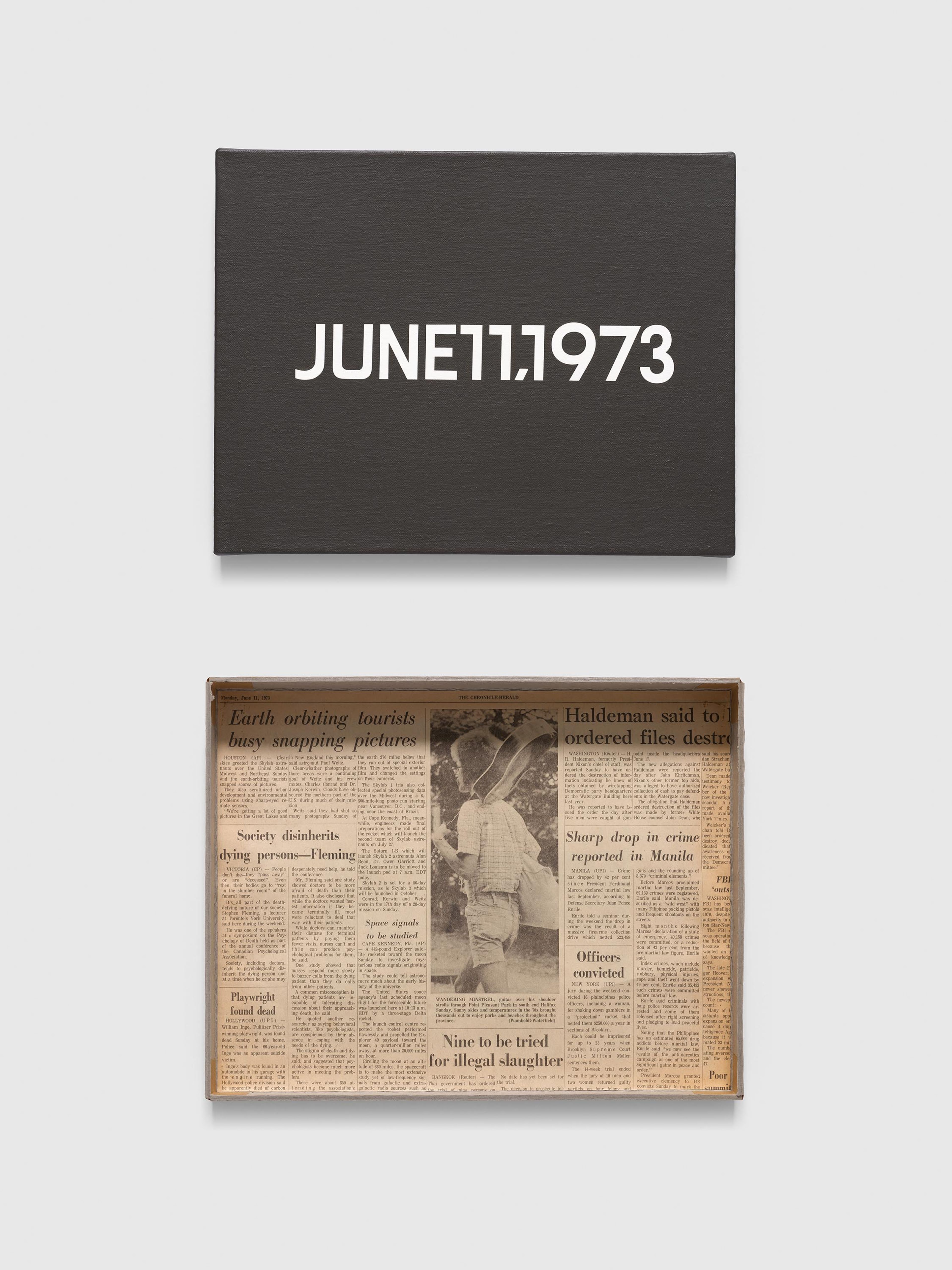 Each accompanied with artist-made box and corresponding newspaper clipping