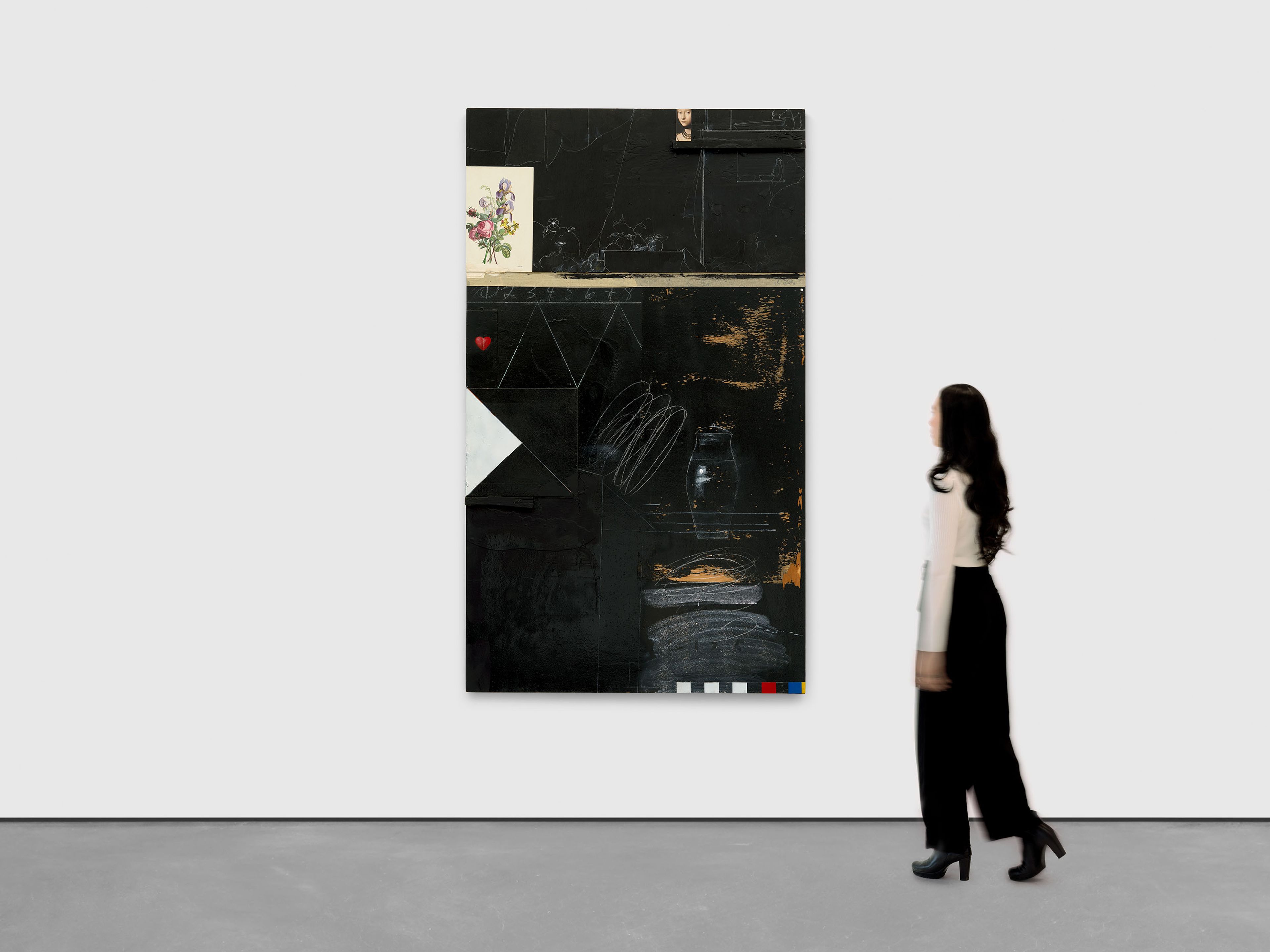 Acrylic, spray paint, chalk, collage, and mixed media on wood panel