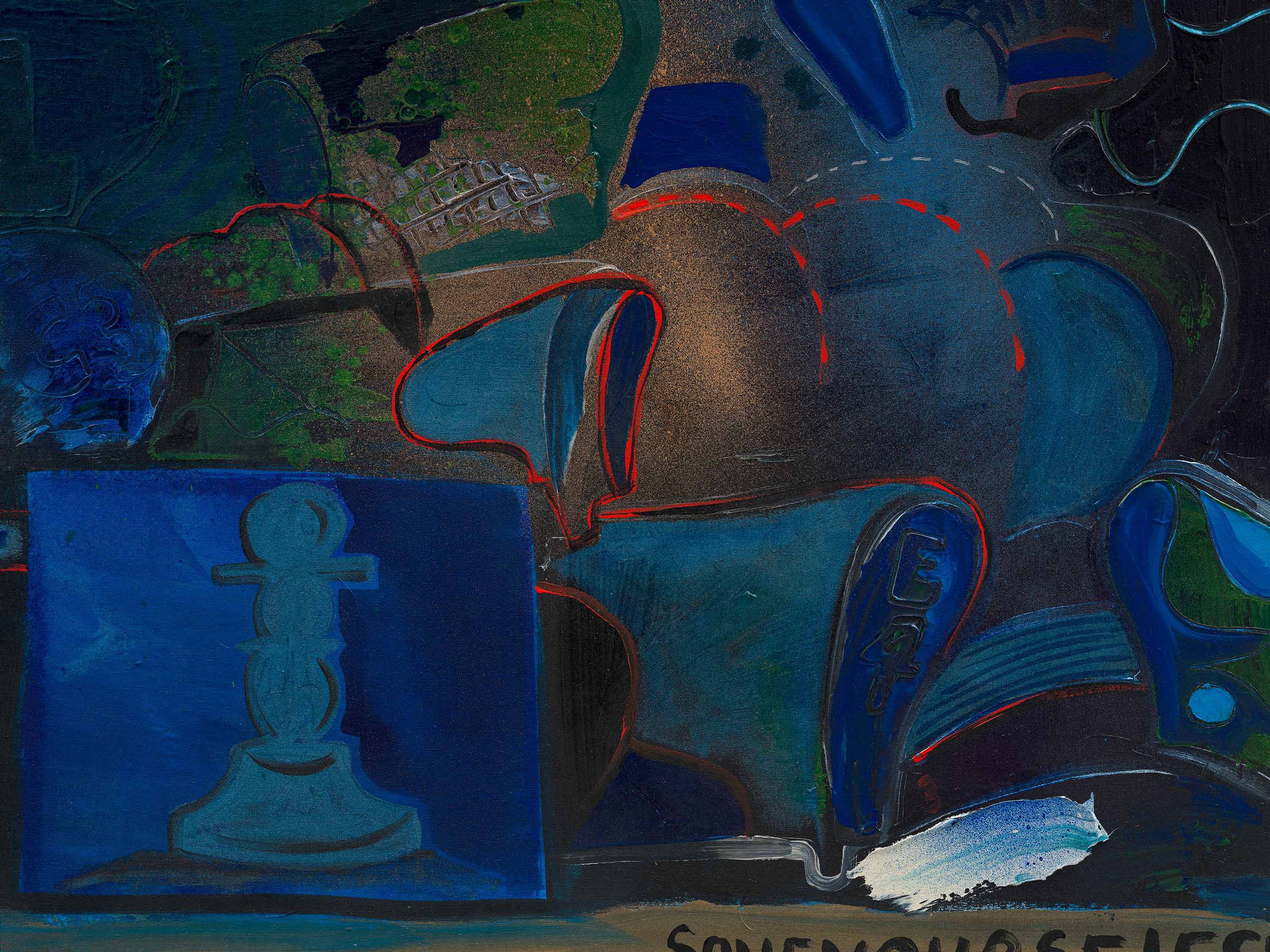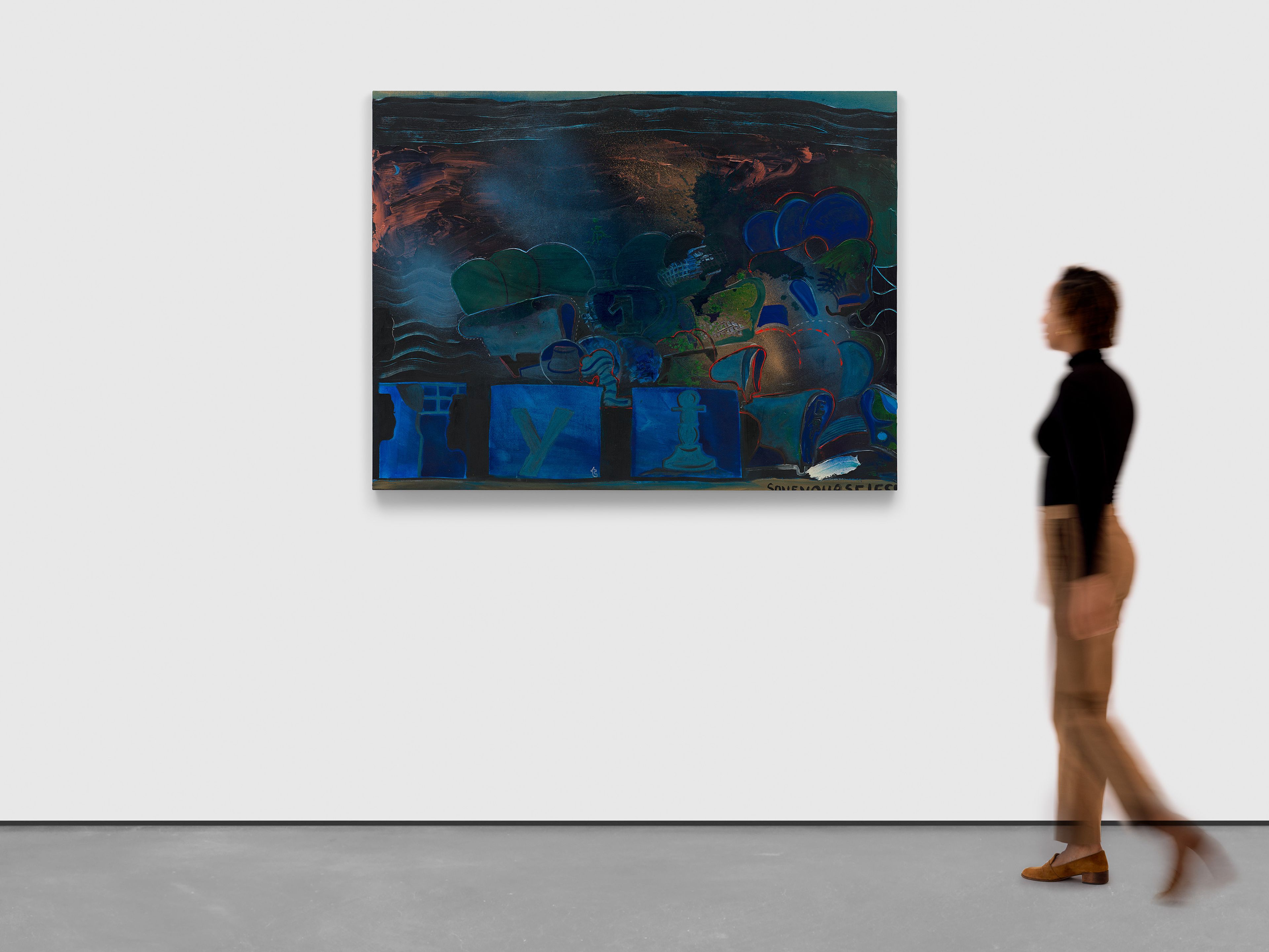 Acrylic, gesso, and metallic marker, and Flashe on canvas