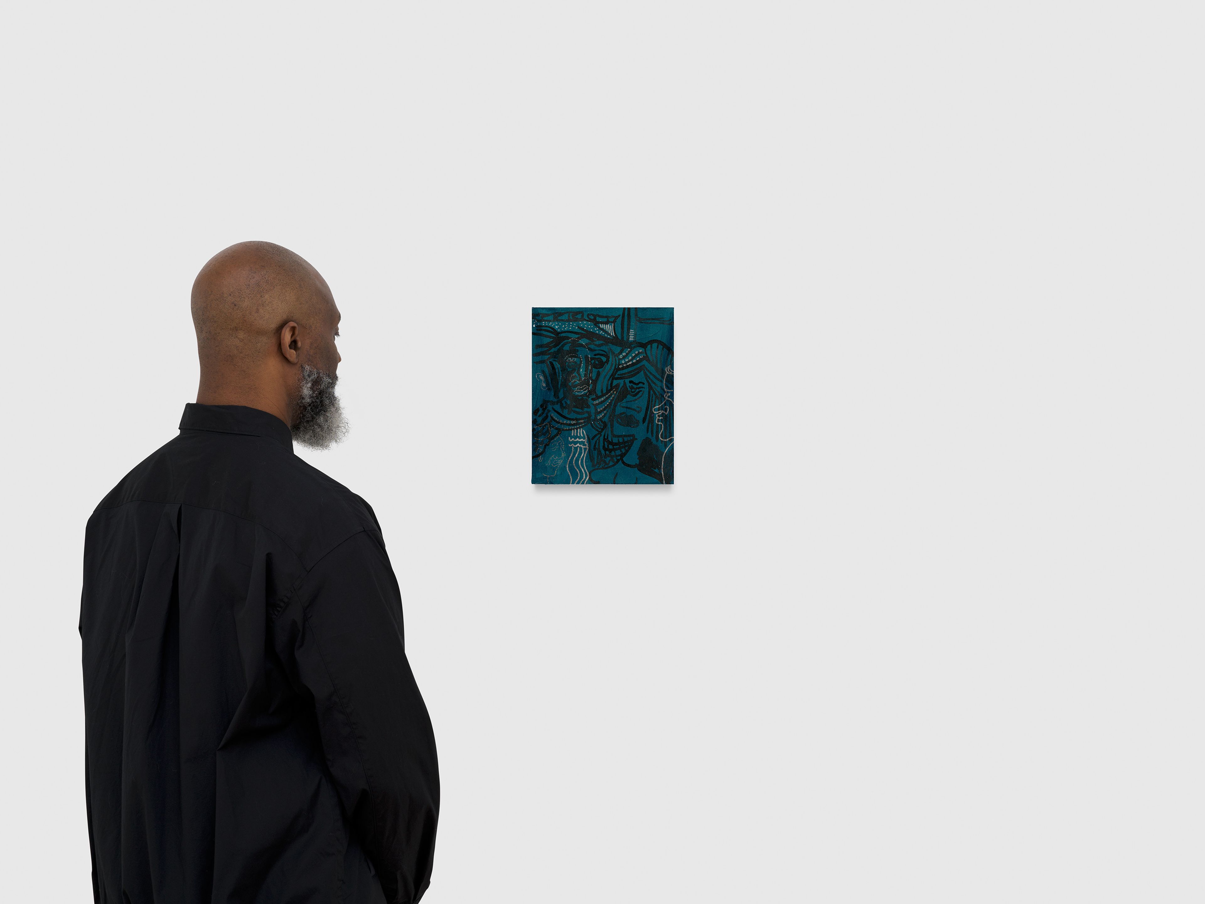 Ink, gesso, Flashe, and chrome pen on wood panel