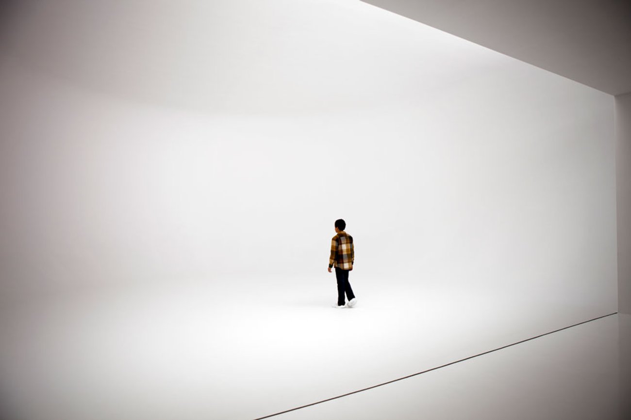 Gallery staff in Doug Wheeler's SA MI 75 DZ NY 12 (2012), on view in Doug Wheeler, 519 West 19th Street, New York, 2012