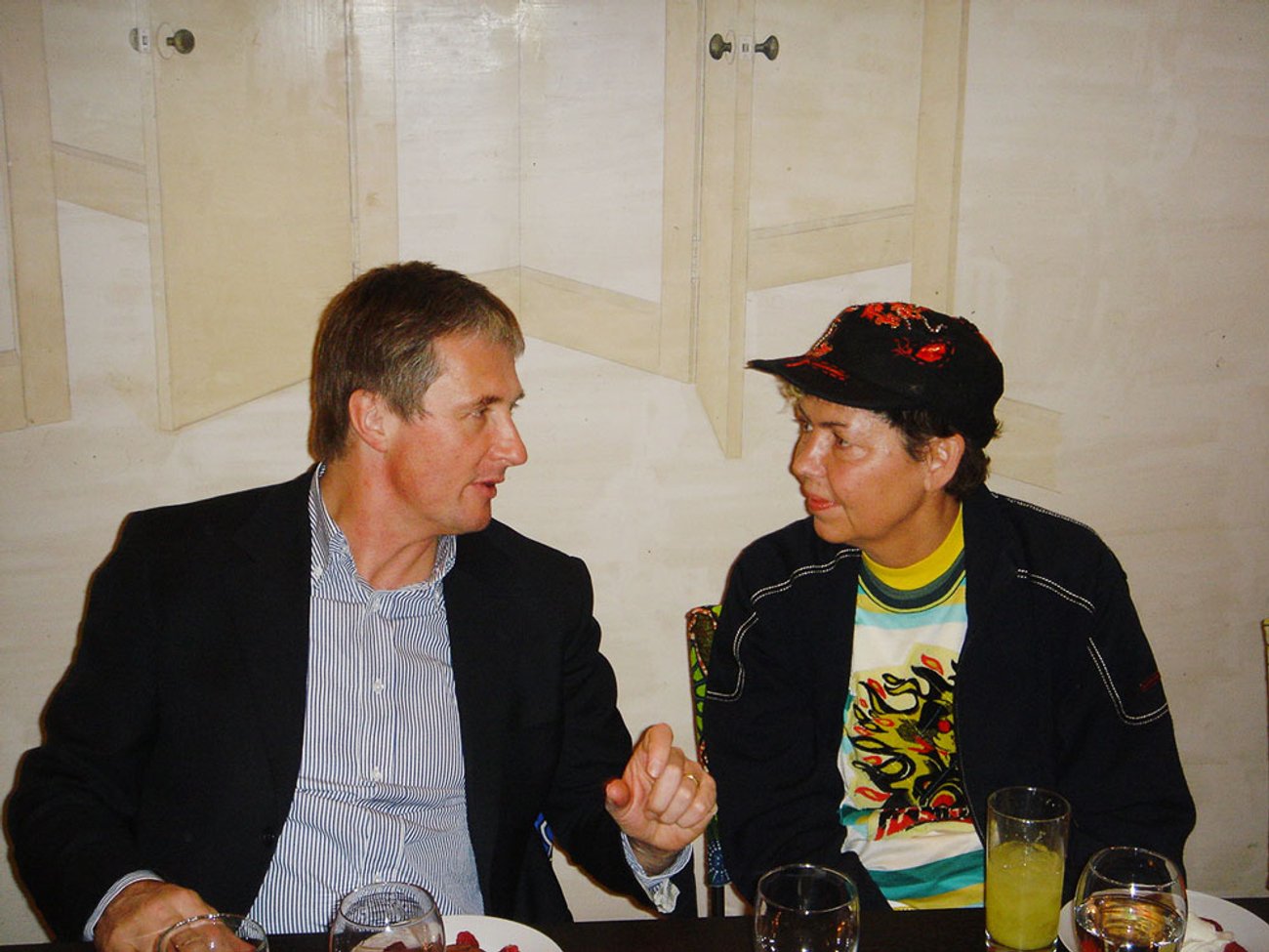 De Wain Valentine and Kristine Bell at the press preview for De Wain Valentine: Works from the 1960s and 1970s, 525 and 533 West 19th Street, New York, 2015