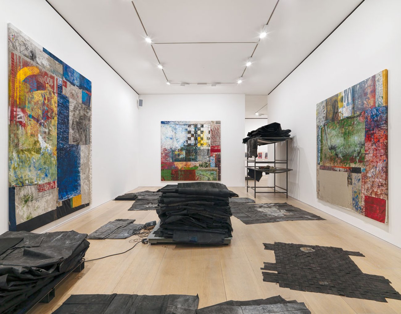 Installation view, Oscar Murillo: binary function, 24 Grafton Street, London, 2015