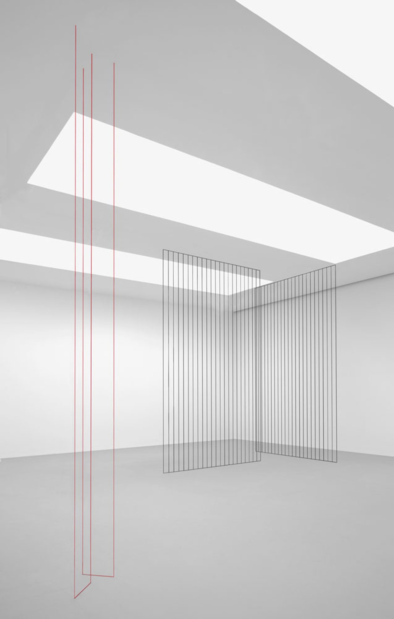 Installation view, Dan Flavin: Series and Progressions, 525 West 19th Street, New York, 2009. untitled (to Helga and Carlo, with respect and affection) (1974) is now in the collection of the Hirshhorn Museum and Sculpture Garden, Washington, D.C.