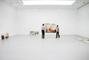 Neo Rauch and David Zwirner during the installation of Rosa Loy: 9 Wege, 525 West 19th Street, New York, 2006