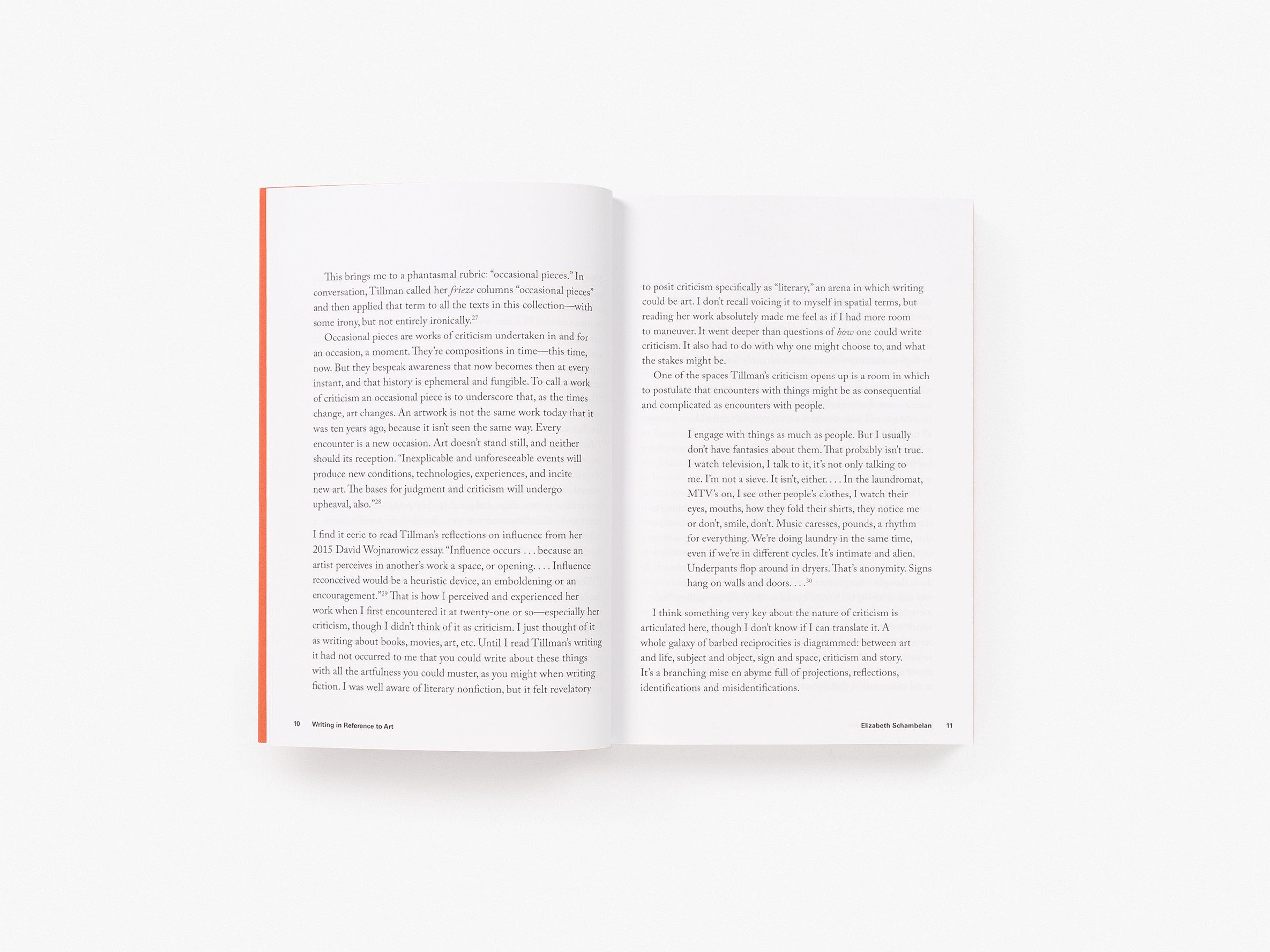 Collected mainly from museum and gallery catalogues, artists’ books and monographs, her column in frieze, and magazines including Aperture and Artforum, these meditations on artists and writers, in the broadest sense of these labels, collide as a portrait of our cultural moment. Tillman’s inventive use of language and lateral thought, her ability to evoke conditions of the larger world in often just two thousand words on a specific artwork or individual, make her one of the most significant critics of our time. In a piece on the artist Robert Gober, she notes, “In writing on art, words reach for other words, phrases, idioms, and through them more images and ideas leap out.” In her introduction, Elizabeth Schambelan notes that a hallmark of Tillman’s writing alongside artists is an “elegant rendering of complexity,” and in approaching Tillman’s body of work and thought, Schambelan herself deftly layers the art, voice, and language of criticism. With cover art by Paul Chan, this collection is for ludic and serious readers alike.