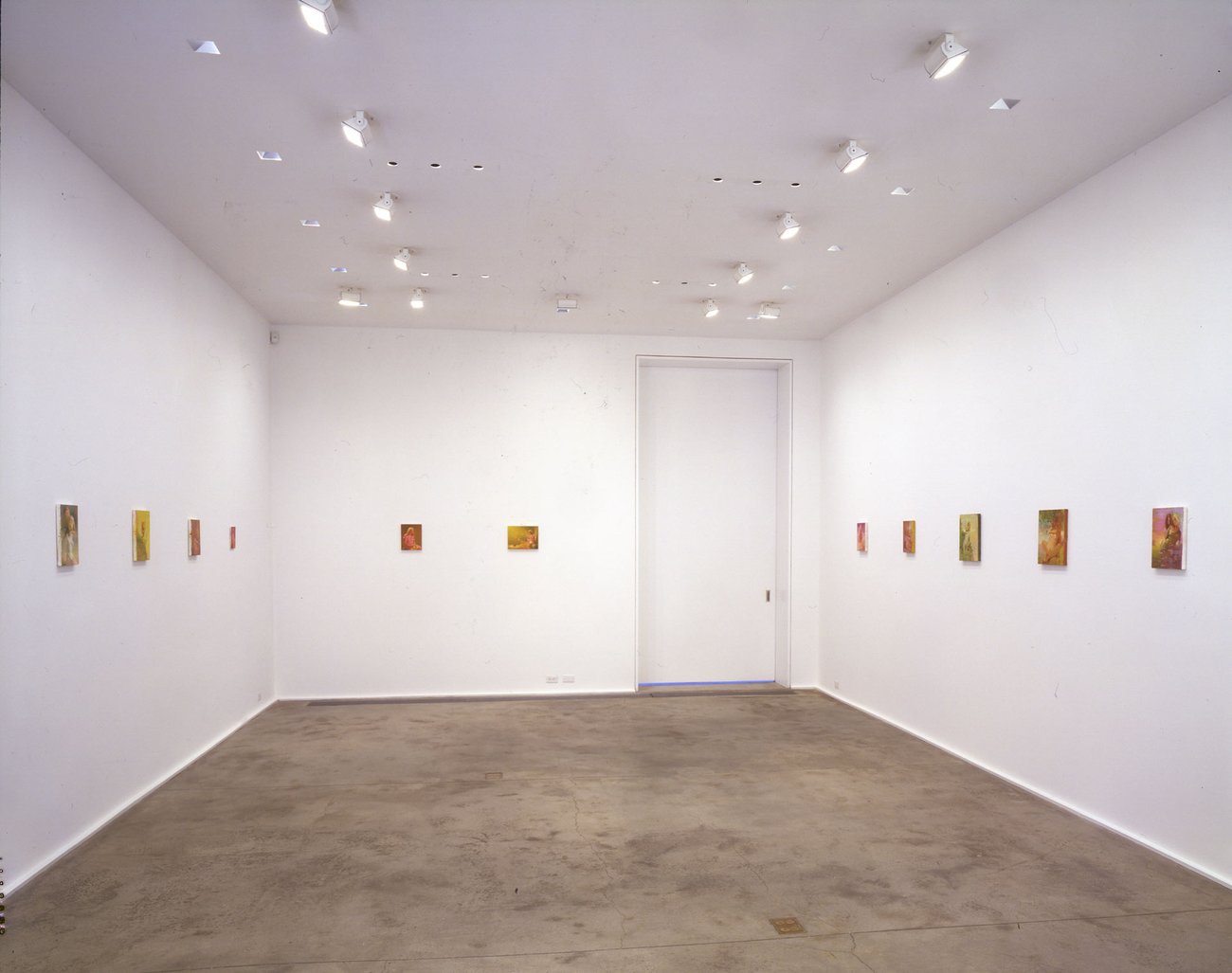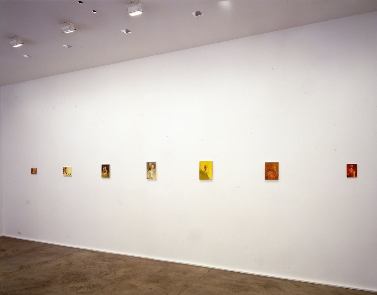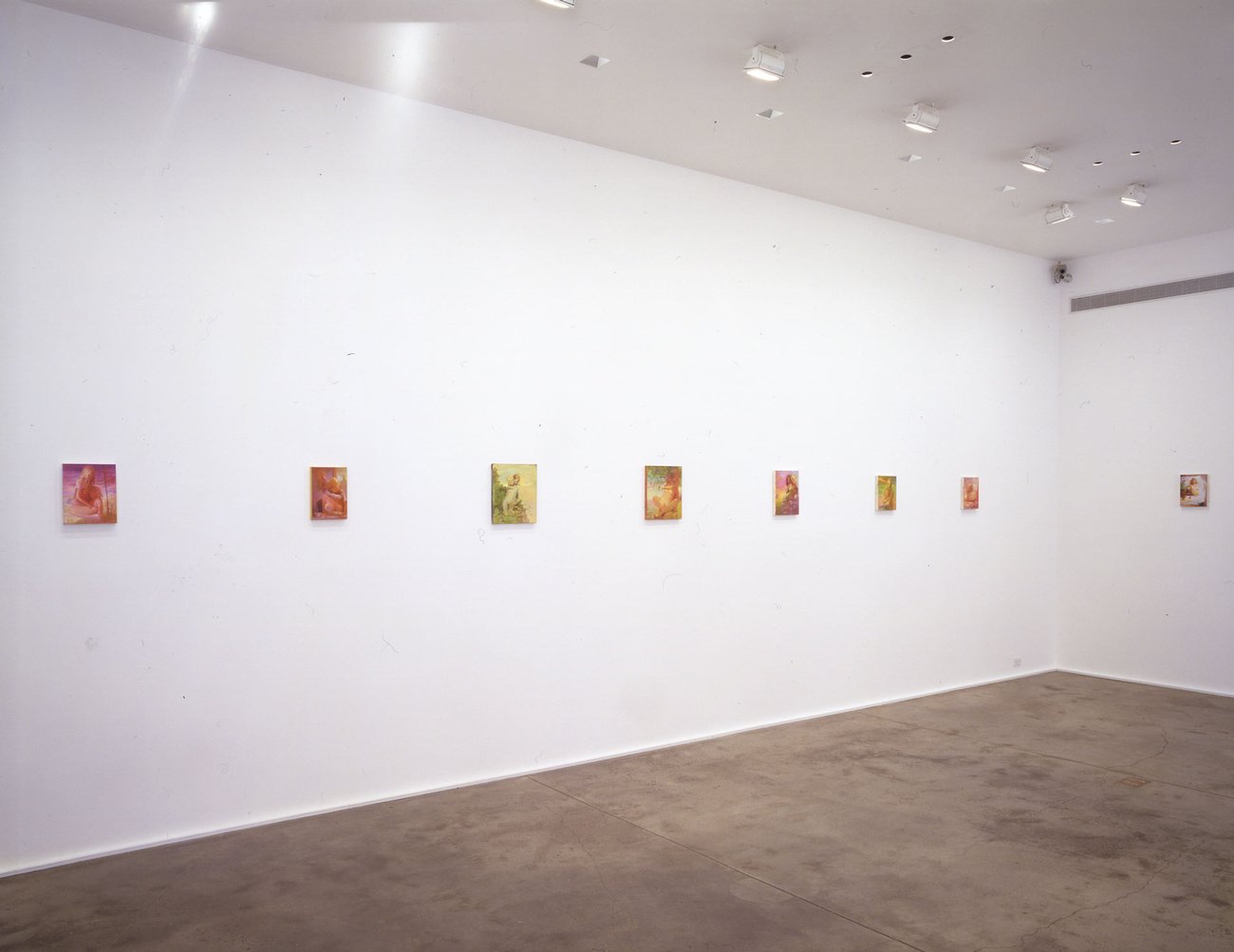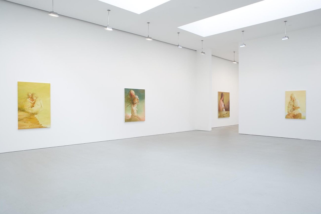 Known for paintings of women, Lisa Yuskavage's images occupy the space between high and low; the sacred and the profane. Many of these new works explore a complex psychological direction–specifically, symbiotic relationships. Influenced in part by images that depict power struggles, including Baroque sculptures (specifically Gianlorenzo Bernini) and Giorgio de Chirico's late "Gladiator" paintings, Yuskavage's "figures" hover or climb upon one another–caught in embraces that appear to shift between tenderness and violence. Within these paradoxical relationships, it is often difficult to decipher what is real and what is imagined; what is weighted and what is weightless; what is made of paint and what transcends the medium entirely. Yuskavage's subtle degrees of fiction and representation culminate in questionable, unsettling quasi-realities.