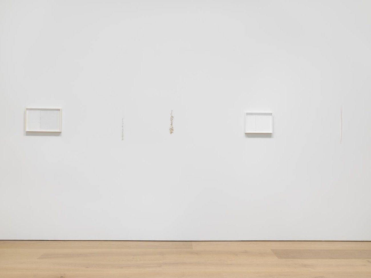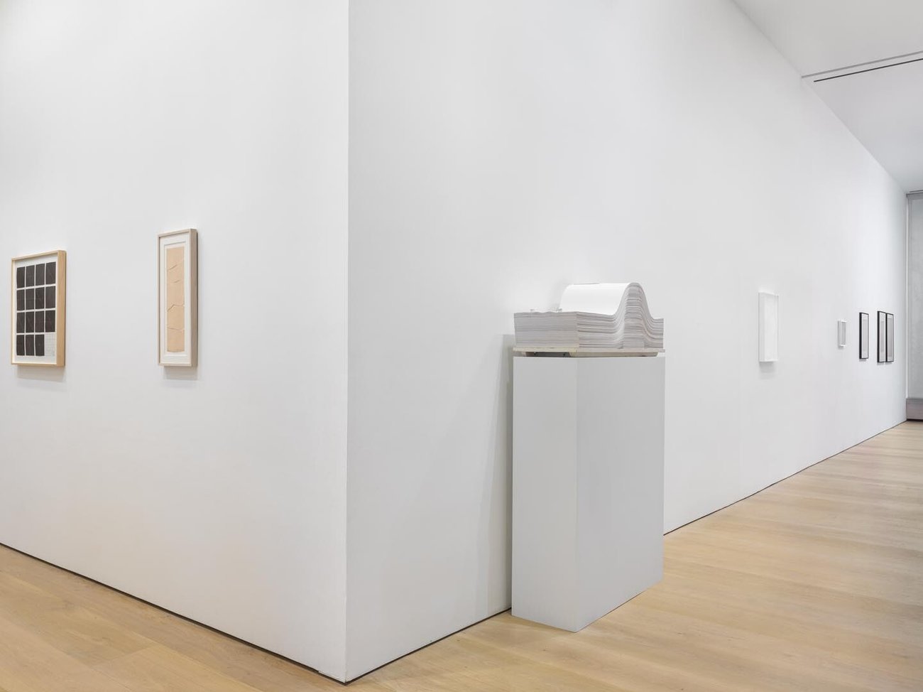 Paper, the traditional support of drawing, came to occupy a particular position in conceptual and minimalist practices during the 1960s and 1970s with the rising interest in process and materials. Given the ubiquity and malleability of the medium, artists have continued to interrogate its fundamental properties, formal qualities, and its broader artistic and cultural associations. As the title of the exhibition suggests, many of the works on view evidence the active hand of the artist on and within their very surface, thereby complicating notions of drawing as necessarily dictated by conventional modes of mark-making or graphic lines. In the artists' arrangement of paper in space or in the deliberate manipulation of the sheet(s) using a wide range of aesthetic tactics such as tearing, puncturing, rolling, and pressing, these monochromatic works present subtle and varied investigations of light, space, composition, and materials.