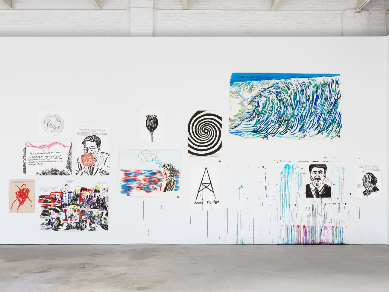 Pettibon's work embraces a wide spectrum of American high and low culture, from the deviations of marginal youth to art history, sports, religion, politics, sexuality, and literature. Taking their point of departure in the Southern California punk-rock scene of the late 1970s and 1980s and the do-it-yourself aesthetic of album covers, comics, concert flyers, and fanzines that characterized the movement, his drawings have come to occupy their own genre of potent and dynamic artistic commentary.