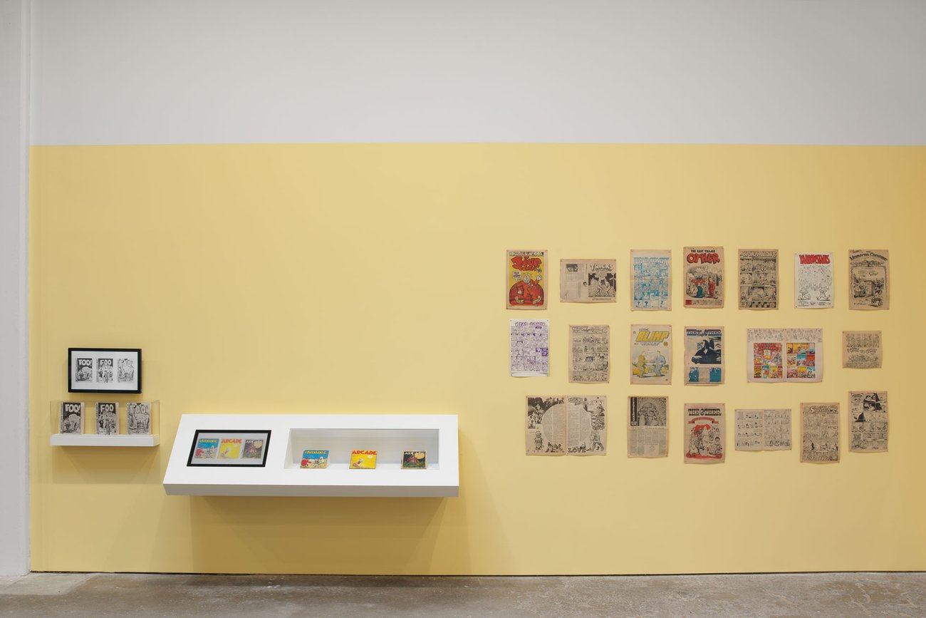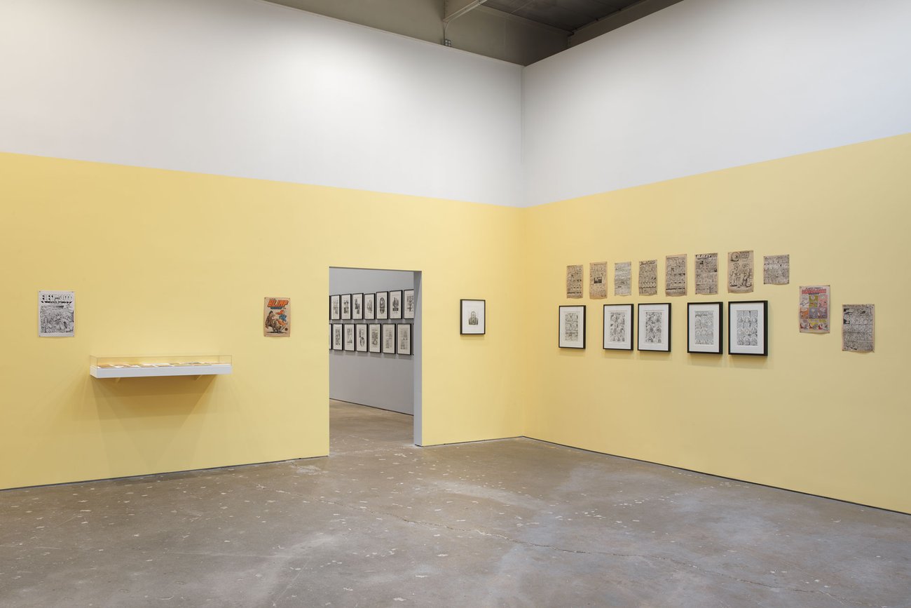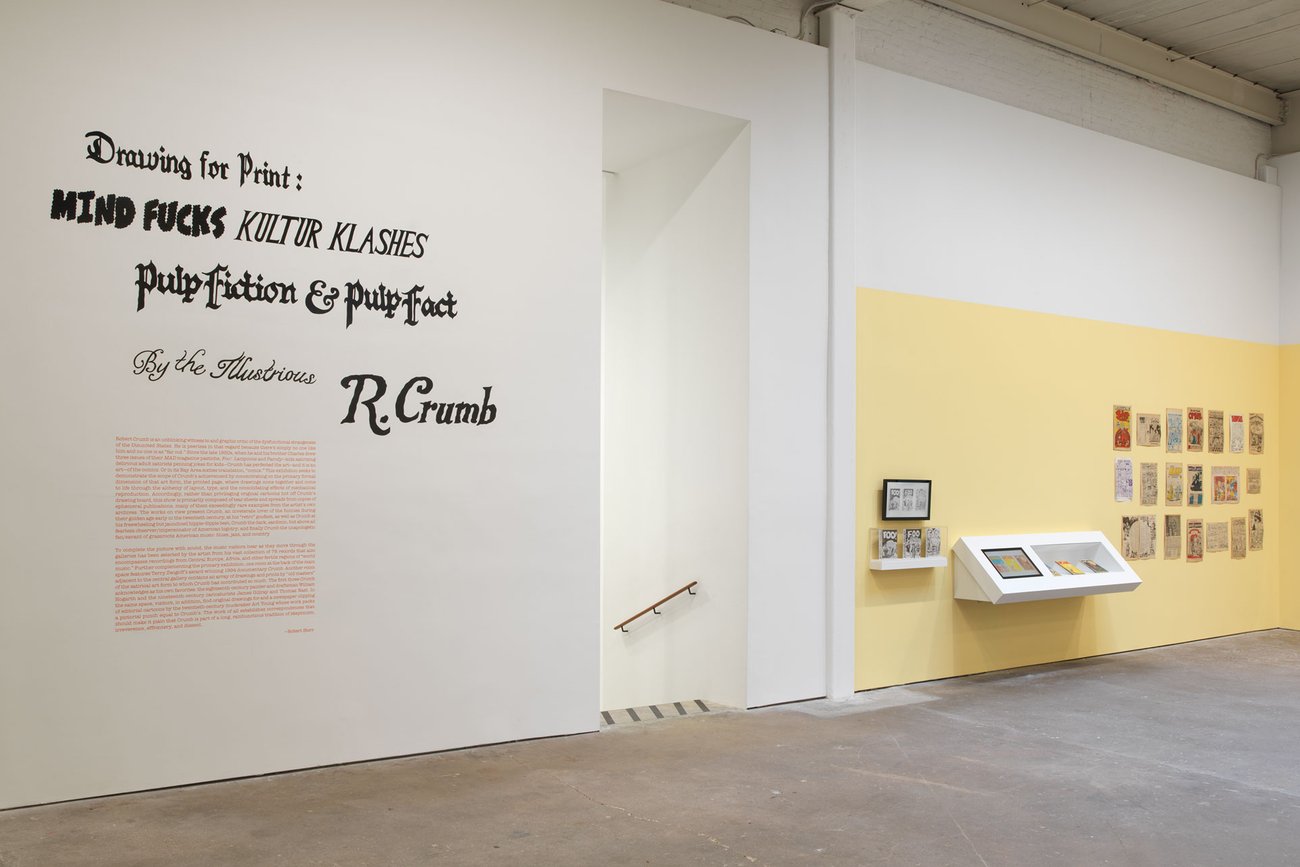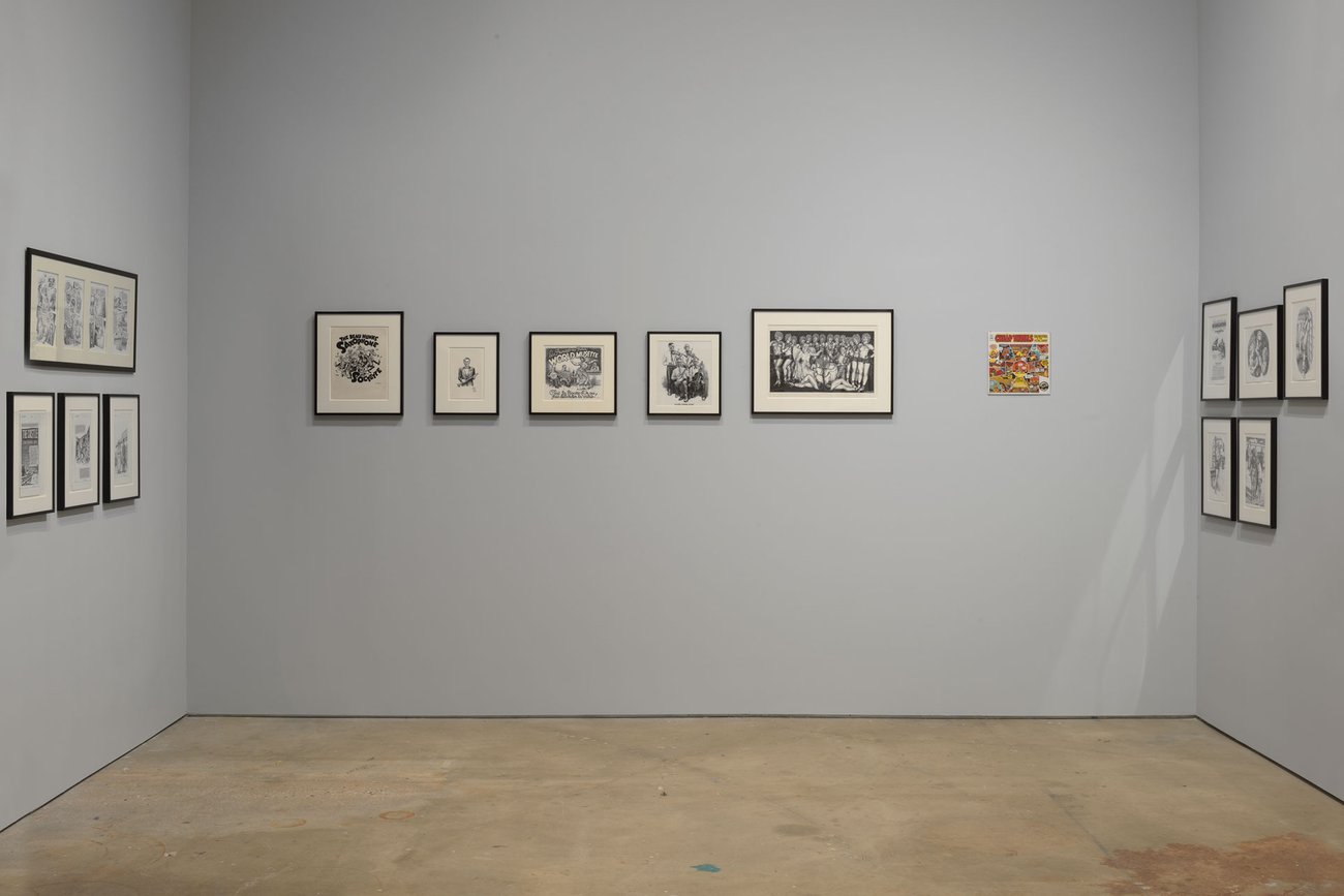Image: Installation view, Drawing for Print: Mind Fucks, Kultur Klashes, Pulp Fiction & Pulp Fact by the Illustrious R. Crumb, David Zwirner, New York, 2019