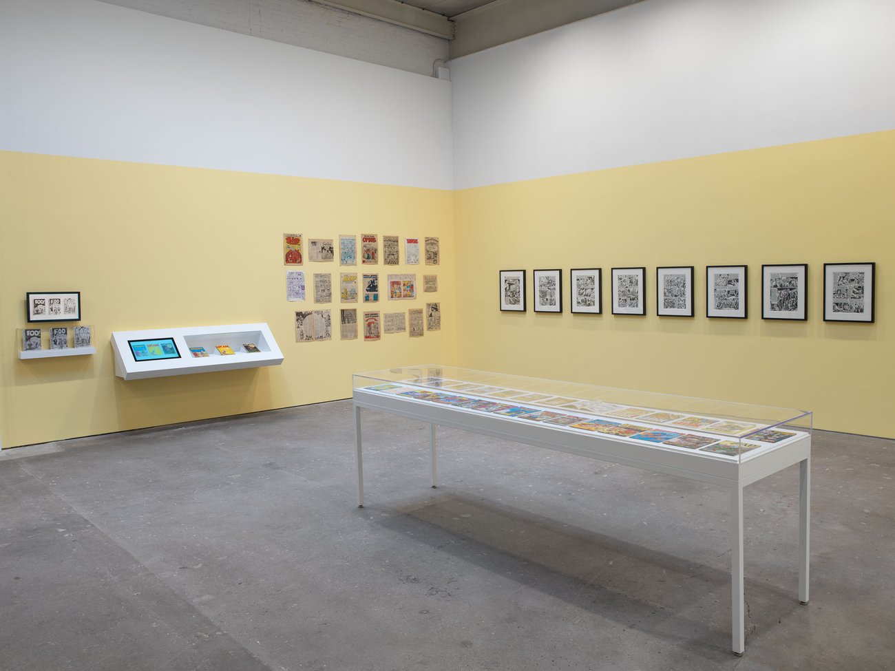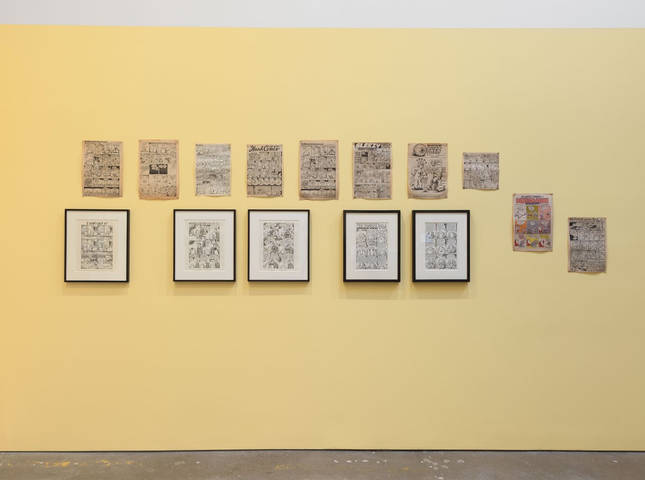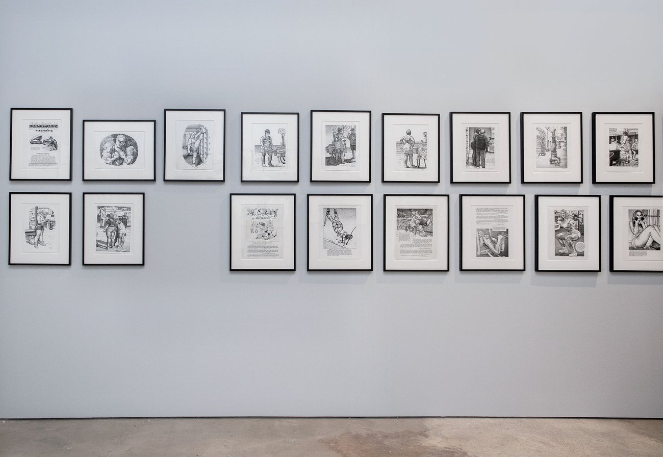 Image: Installation view, Drawing for Print: Mind Fucks, Kultur Klashes, Pulp Fiction & Pulp Fact by the Illustrious R. Crumb, David Zwirner, New York, 2019