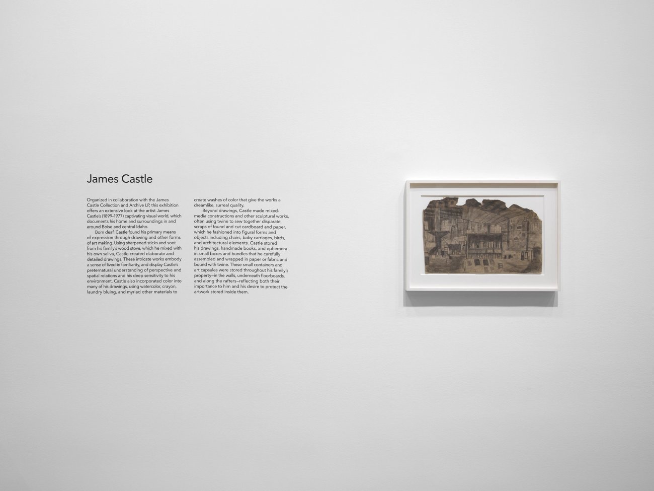 James Castle sitting in wheelbarrow, Boise, Idaho, 1950s. Photo by Bob Beach. Courtesy Special Collections and Archives, Boise State University