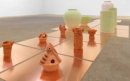 In her ceramics, which are often made in distinct series, Kusaka articulates unique forms and produces complex designs with a heightened emphasis on difference and repetition, bringing awareness to poetic irregularities. Her work rewards close observation, which reveals layered intricacies and optical qualities through subtle shifts in glazing or decoration. The motifs she combines and recontextualizes—including wood grain and fruit textures, and her children’s infatuation with dinosaurs and other animals—are all influenced by her daily life. Process-oriented titles, composed of terms such as “carved” or “line” followed by a number, reveal the tactility of Kusaka’s work.
