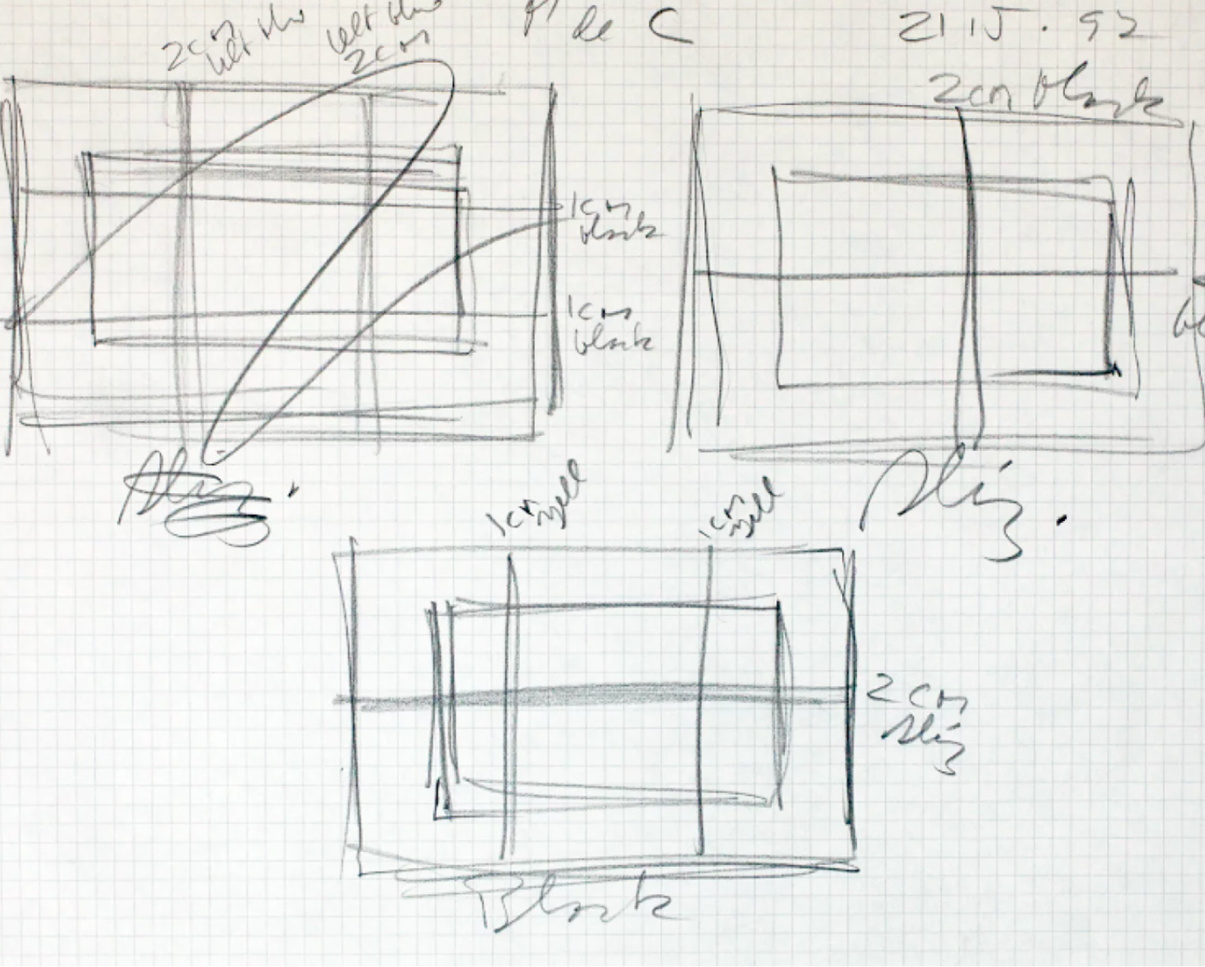 Donald Judd, drawing for prints, 1992. Pencil on paper, 8 1/2 x 11 inches (21.6 x 27.9 cm). Courtesy Judd Foundation Archives, Marfa, Texas