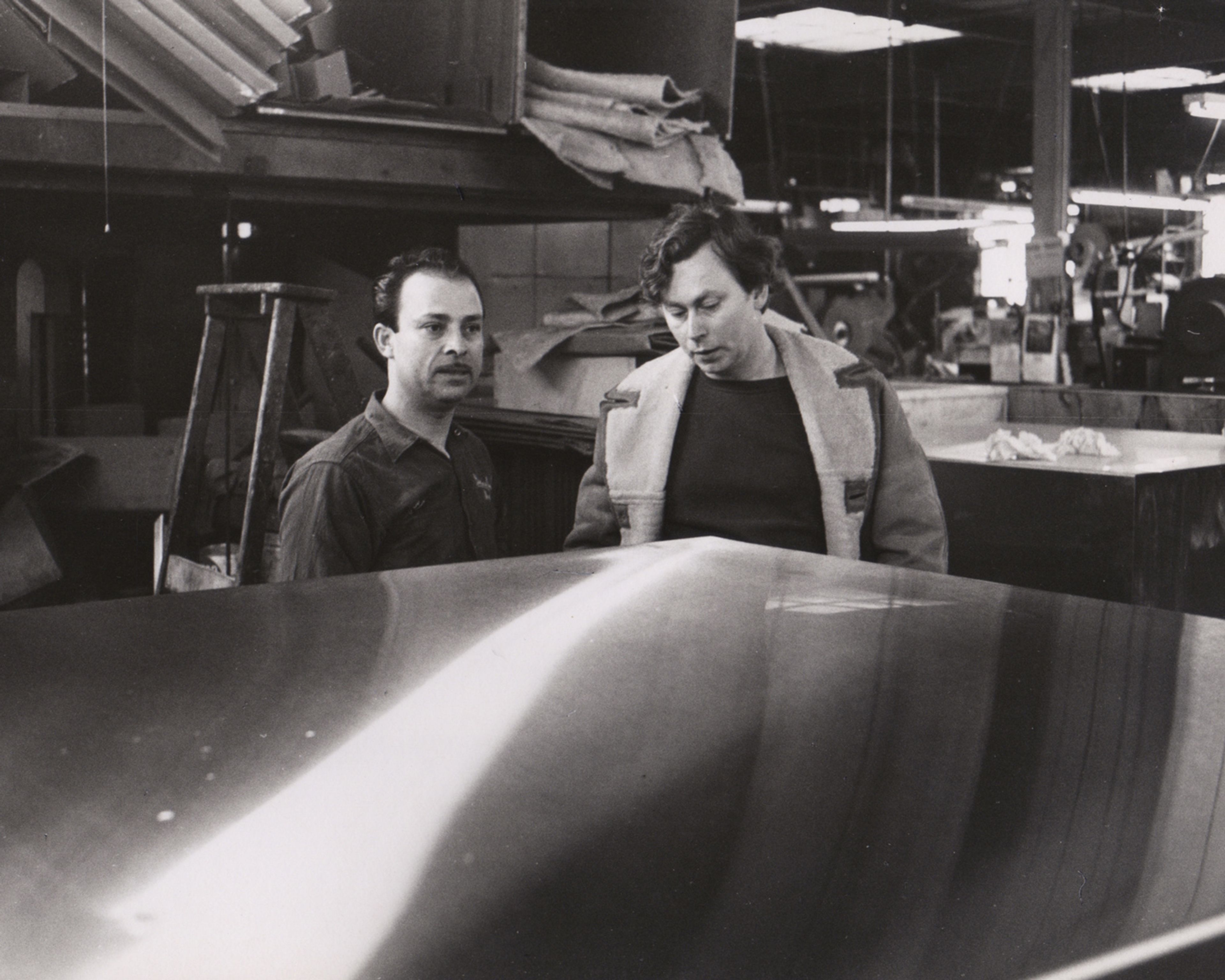 José Otero and Donald Judd at Bernstein Brothers, Inc., New York, 1968. Photo © Elizabeth Baker. Courtesy Judd Foundation Archives, Marfa, Texas