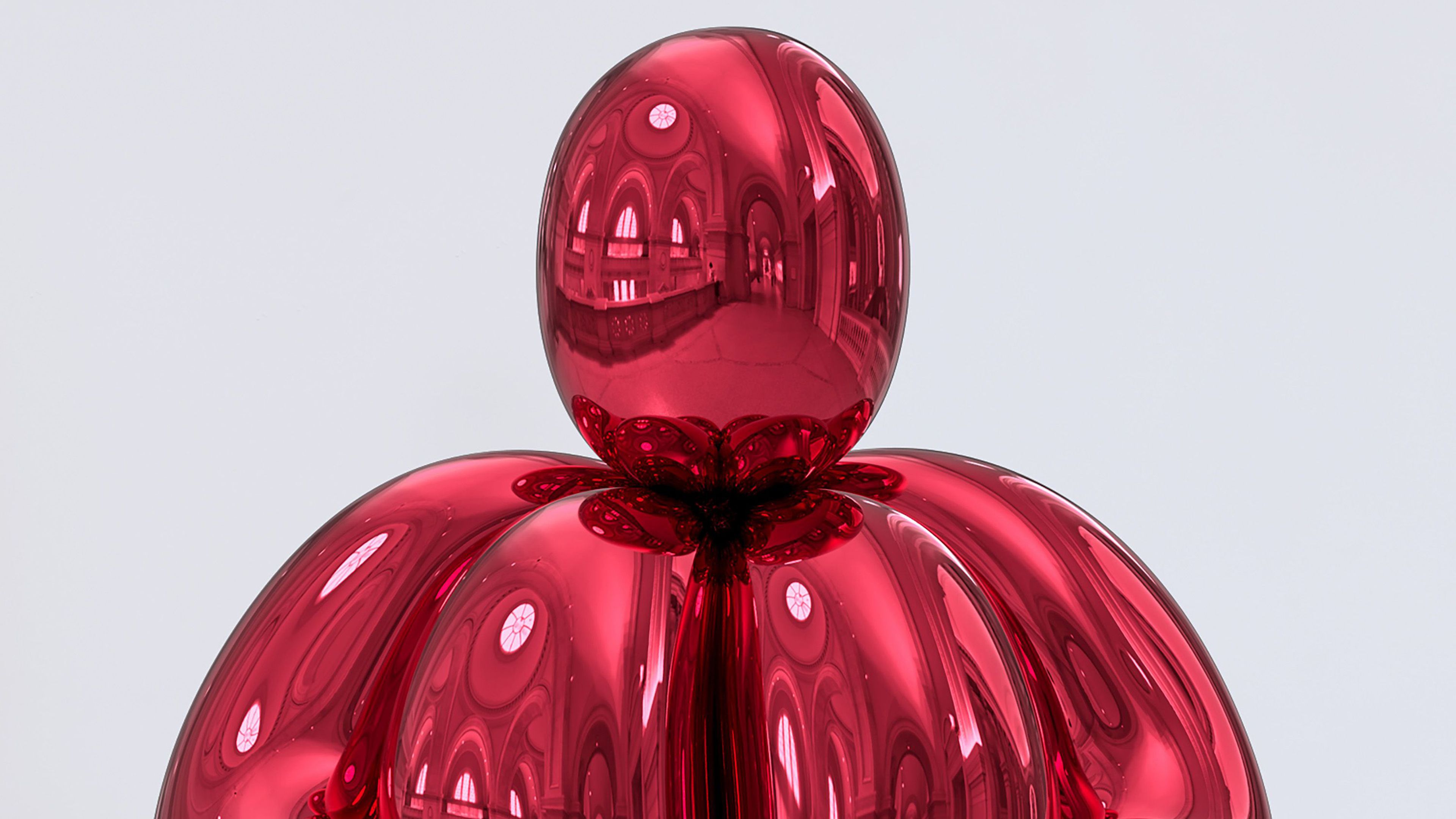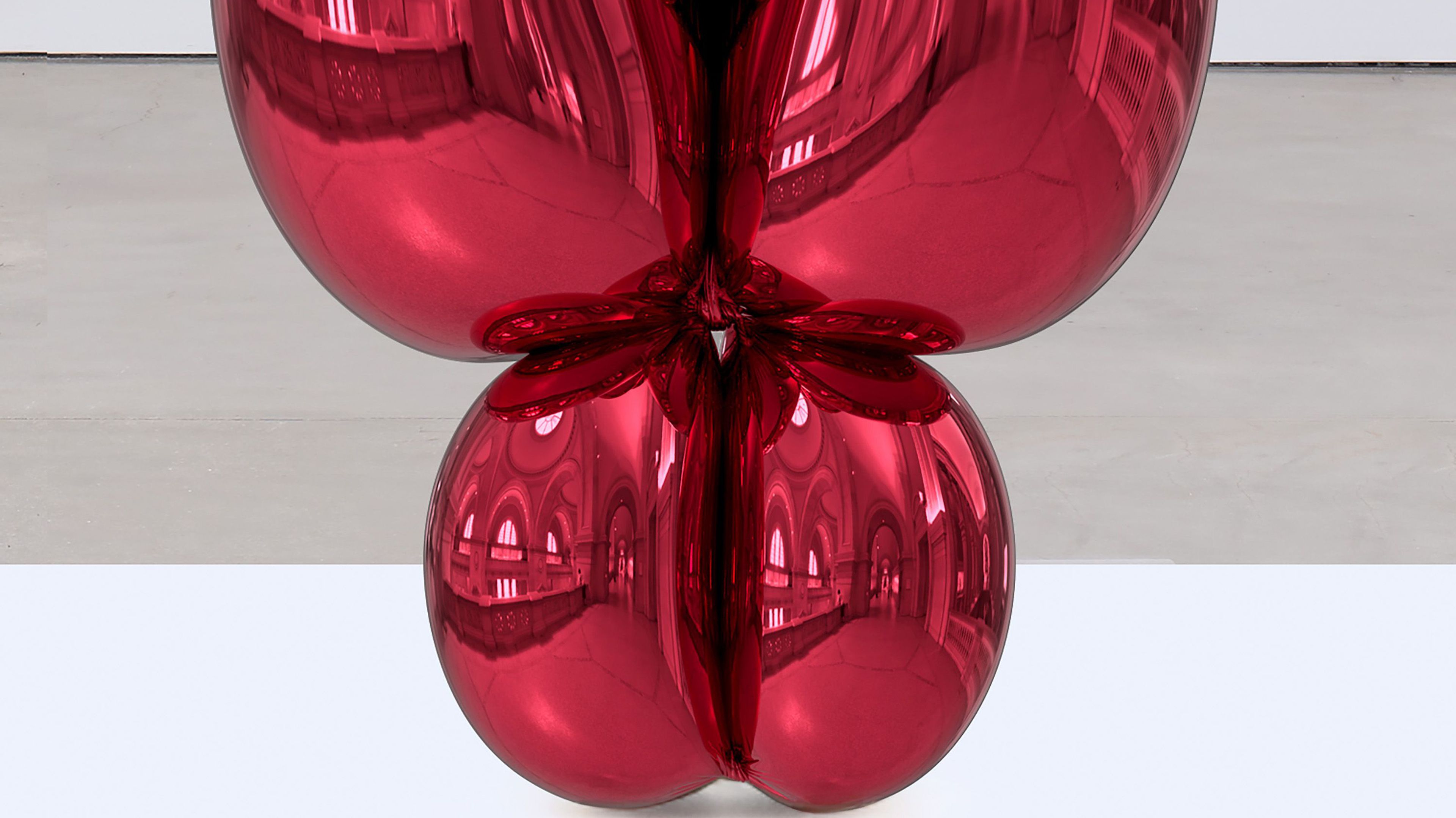 Balloon Venus Lespugue (Red) extends Koons’s long exploration of stainless steel’s all-encompassing, highly reflective surface, which absorbs the viewer and casts their surroundings in an eerie red glow. The sculpture’s mirror-like finish makes the viewer part of the artwork: it is not only an object of perception but also one that reflects us back to ourselves. “One of the most used words in philosophy is to ‘reflect.’ To reflect is an inward process, but also an outward process,” says Koons. “The use of reflective surfaces was to connect the work to philosophy and the experience of becoming. And that we not only have our internal life, but we also have the external world—this interaction is what gives us a future.”