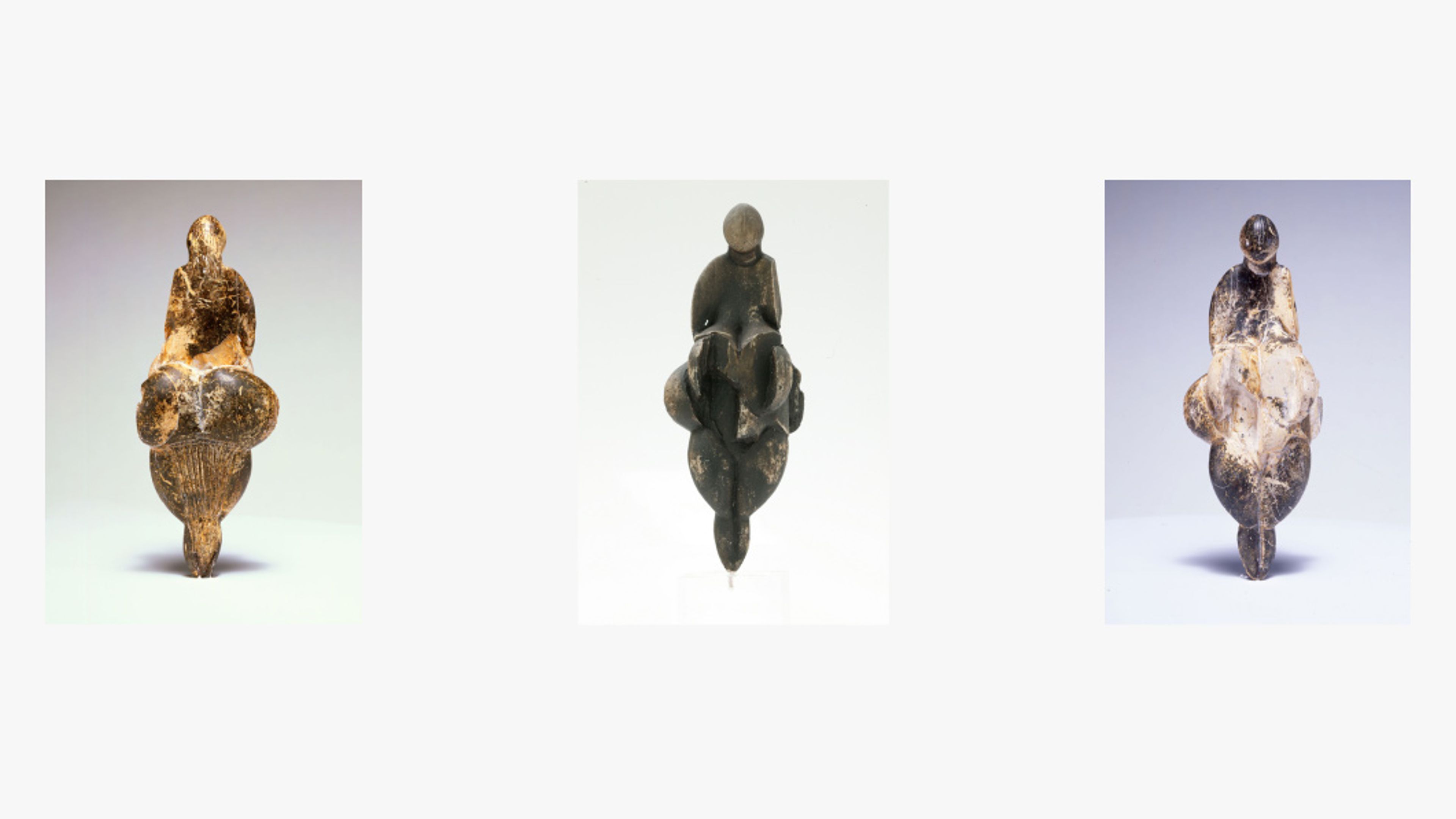 Left and Right: Vénus de Lespugue. Mammoth ivory. Upper Paleolithic, c. 23000 BC. Musée de l'Homme, Paris Photo © JC Domenech / MNHN, Paris.
