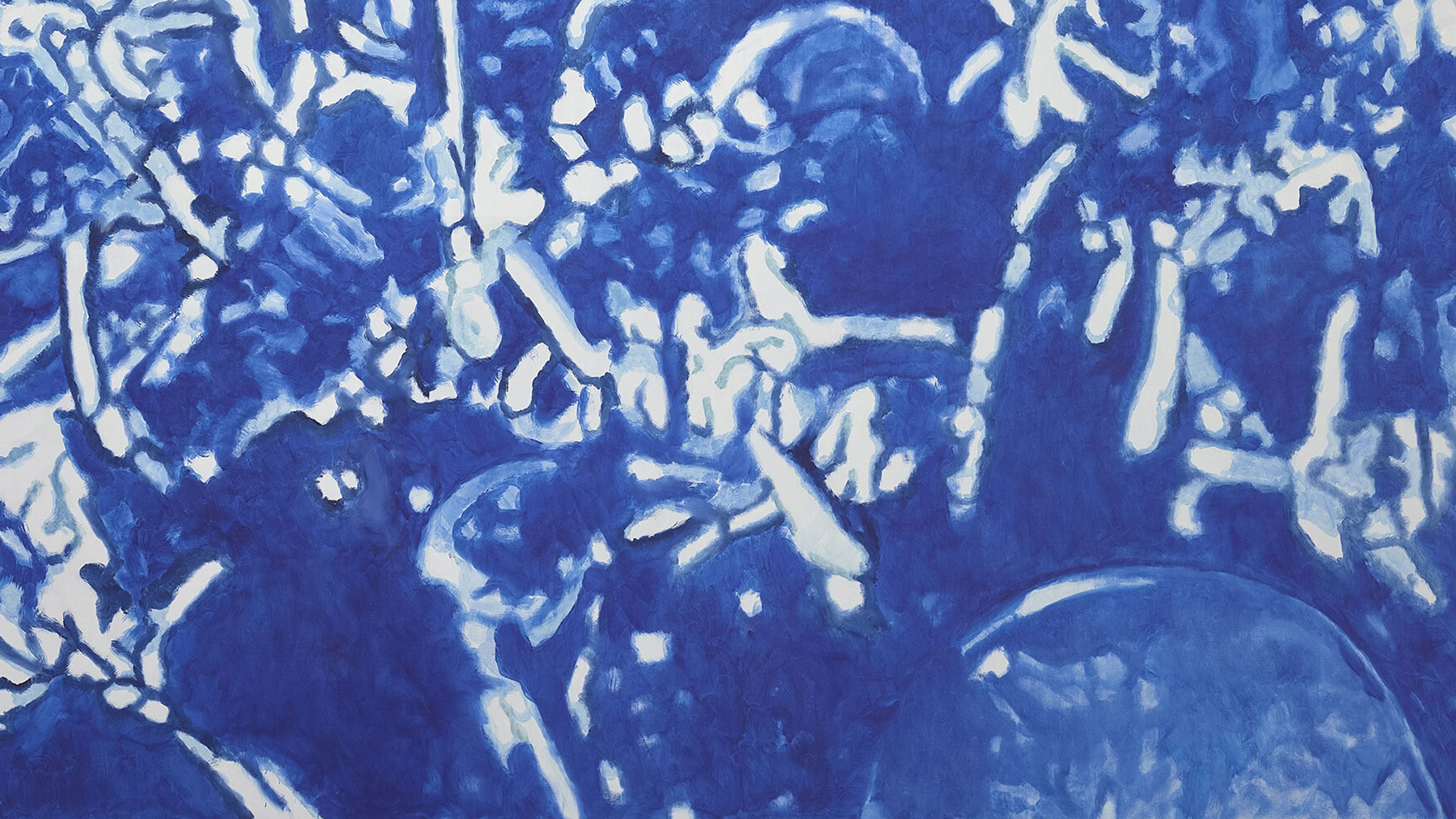 A related group of four large-scale works, collectively titled Illumination (2024–2025), is installed throughout the show, appearing at first as fields of color that are lit from within in a manner akin to the rectilinear abstractions of Mark Rothko—a prodigious artist whose life ended in tragedy, and an ongoing interest for Tuymans.