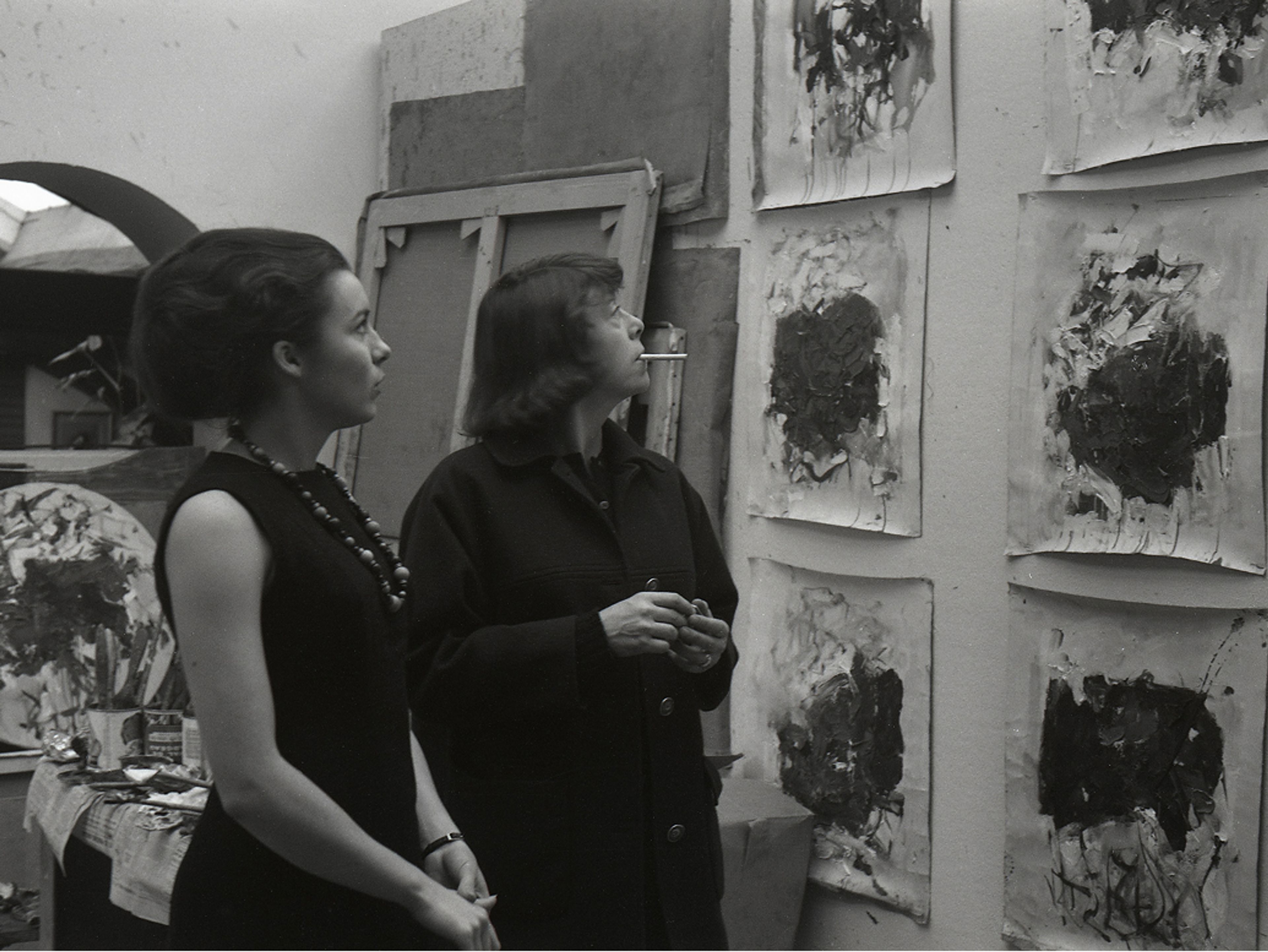 Yseult Riopelle and Joan Mitchell at 10 rue Frémicourt, c. 1964. Photographer unknown, Joan Mitchell Foundation Archives
