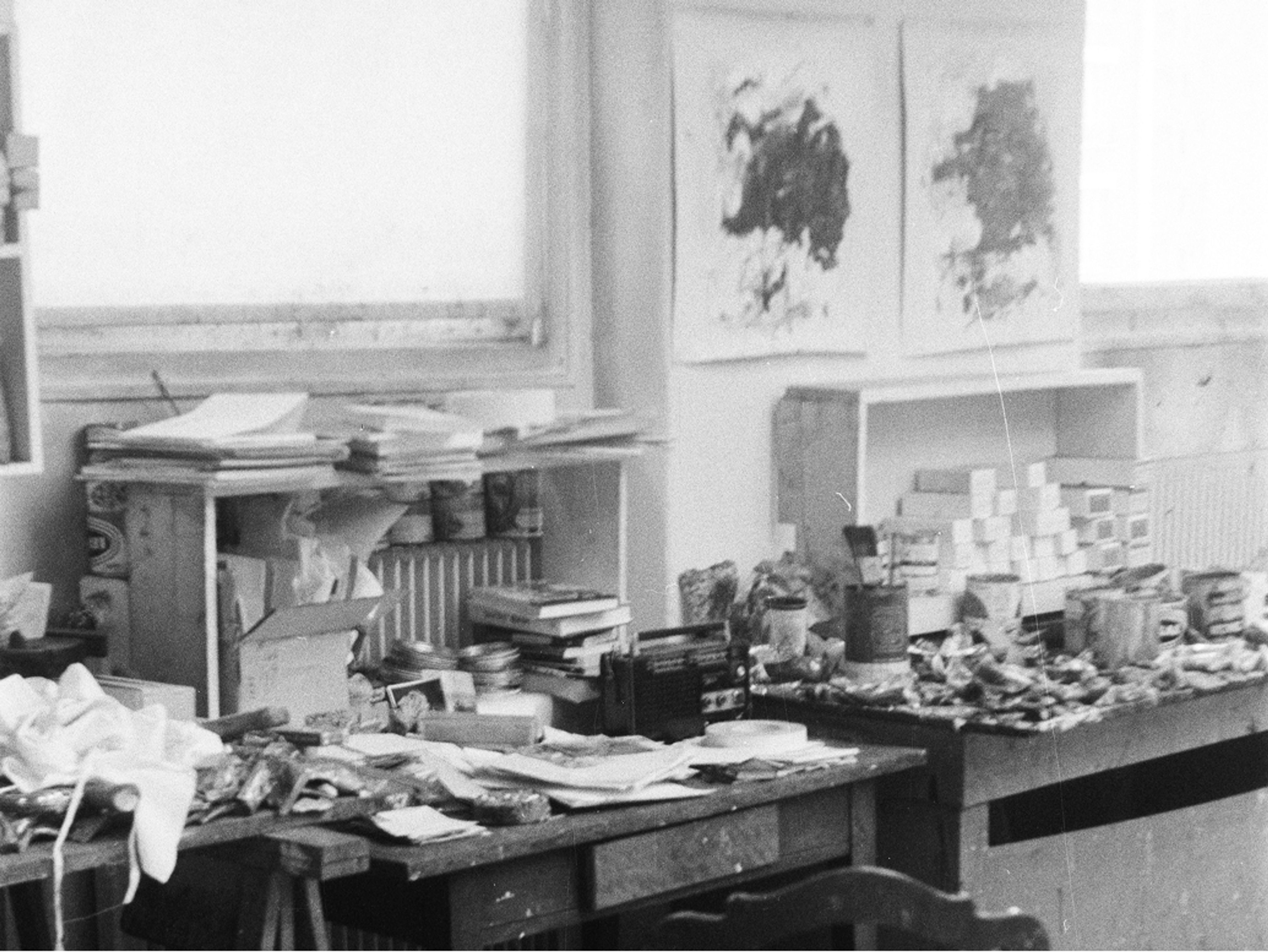 Joan Mitchell's studio at 10 rue Frémicourt, Paris, c. 1964. Photographer unknown, Joan Mitchell Foundation Archives