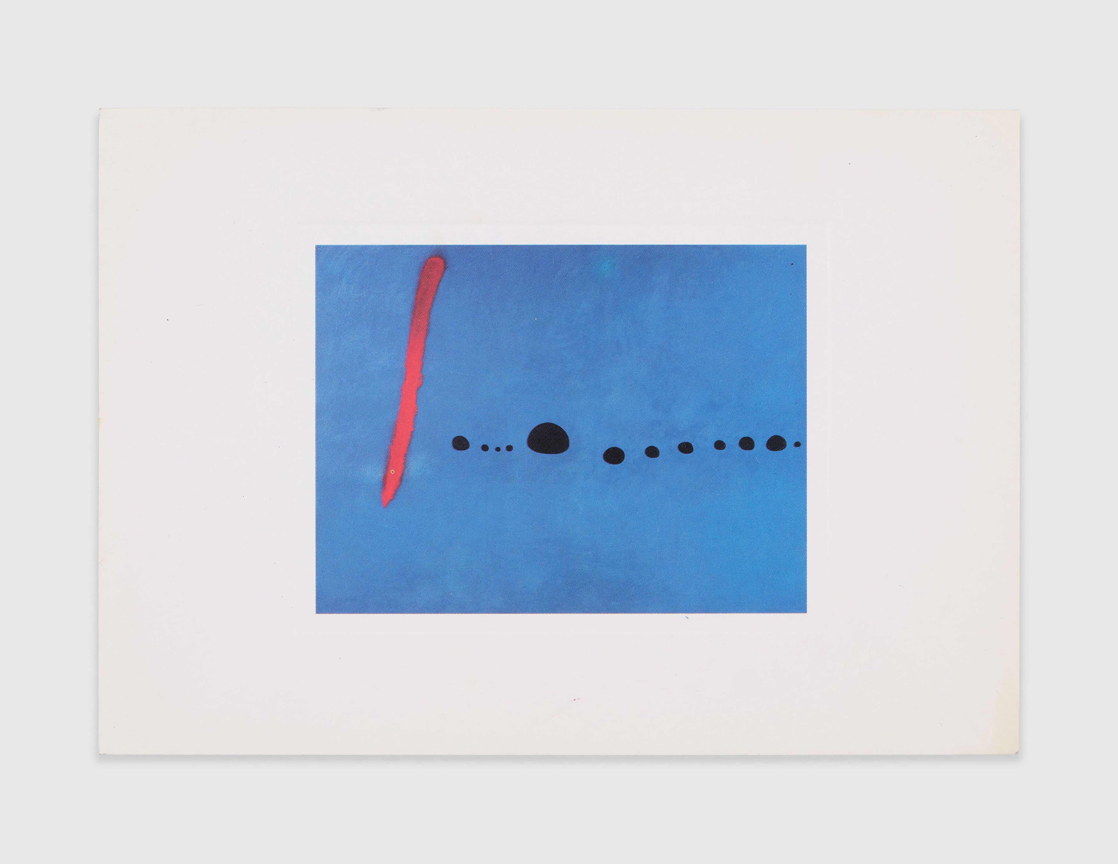 Joan Miró, Blue II, 1961, reproduced as part of a selection of postcards from Saunders’s collection, gathered by the artist throughout his domestic and international travels over the years