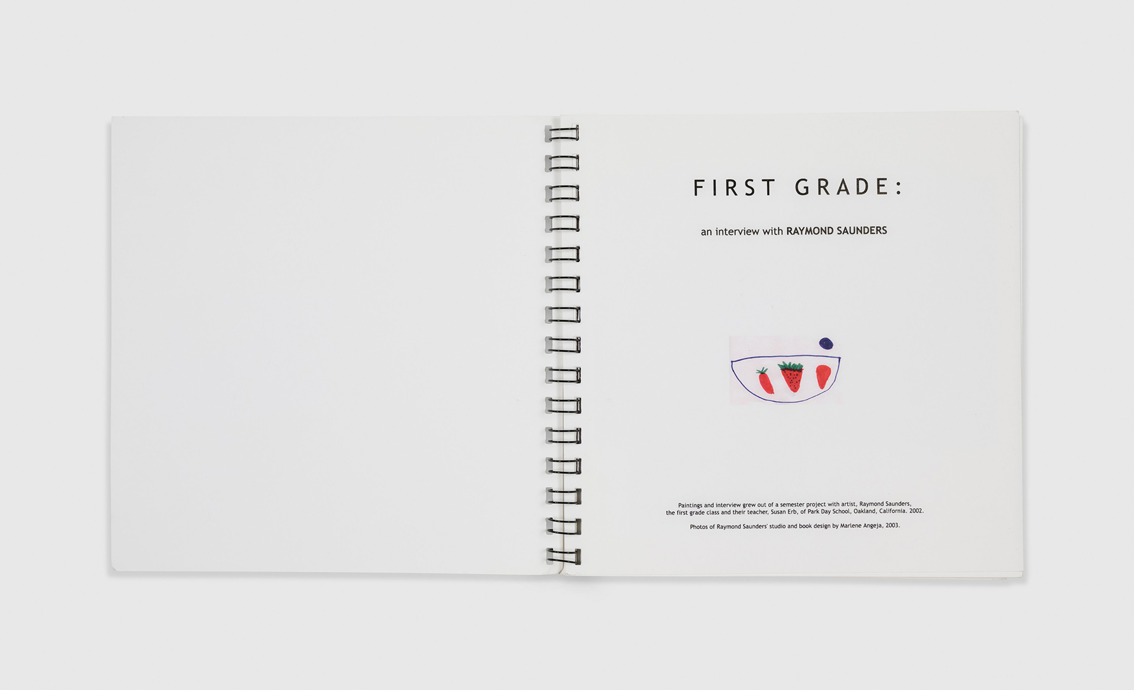 A publication made in 2002 is the result of a semester-long project with Saunders and a first grade class at Park Day School, Oakland. The booklet features transcribed conversations between Saunders and the class, as well as students’ artwork.