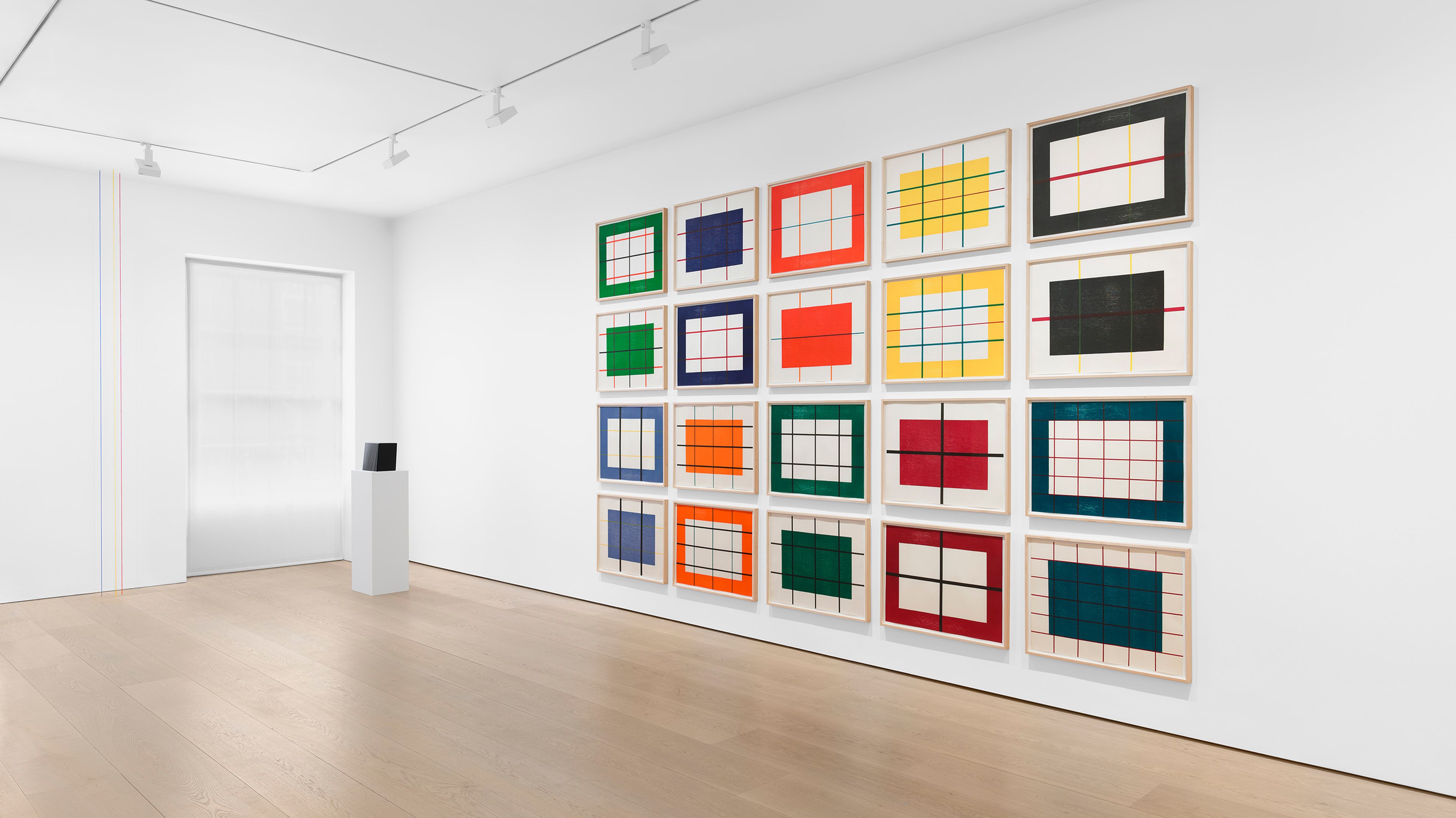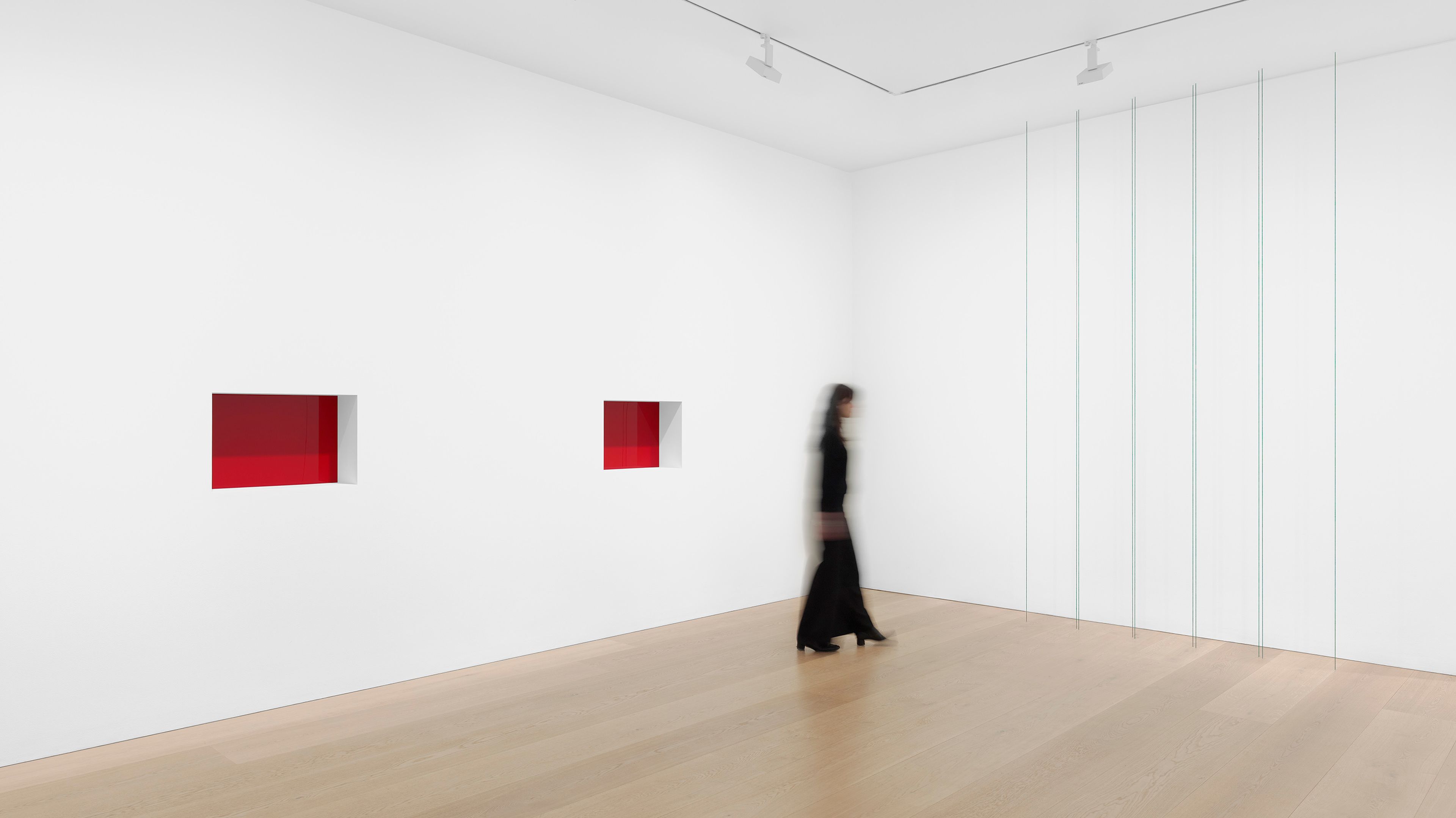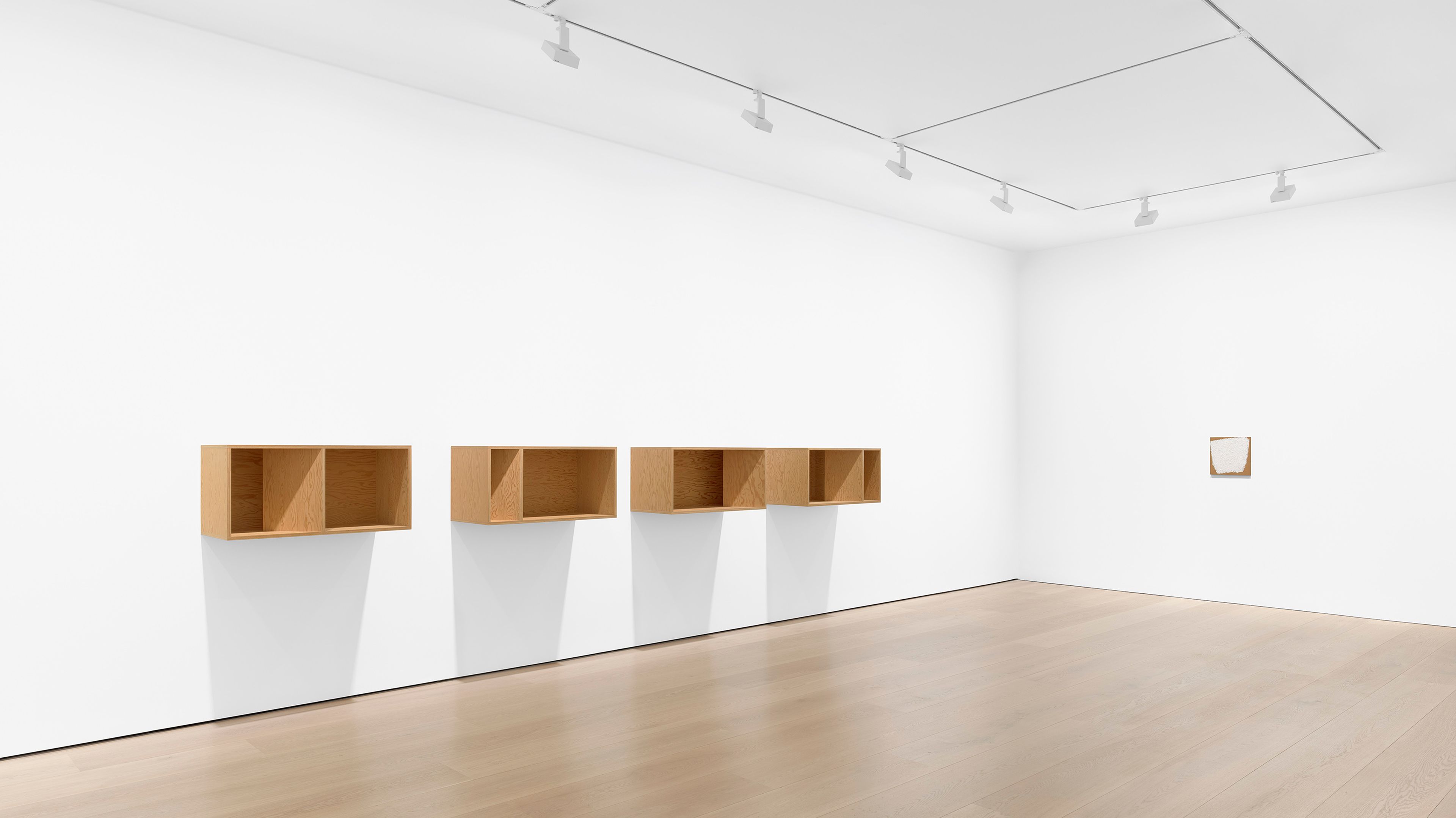 Installation view, Flavin, Judd, McCracken, Ryman, Sandback, David Zwirner, London, 2026