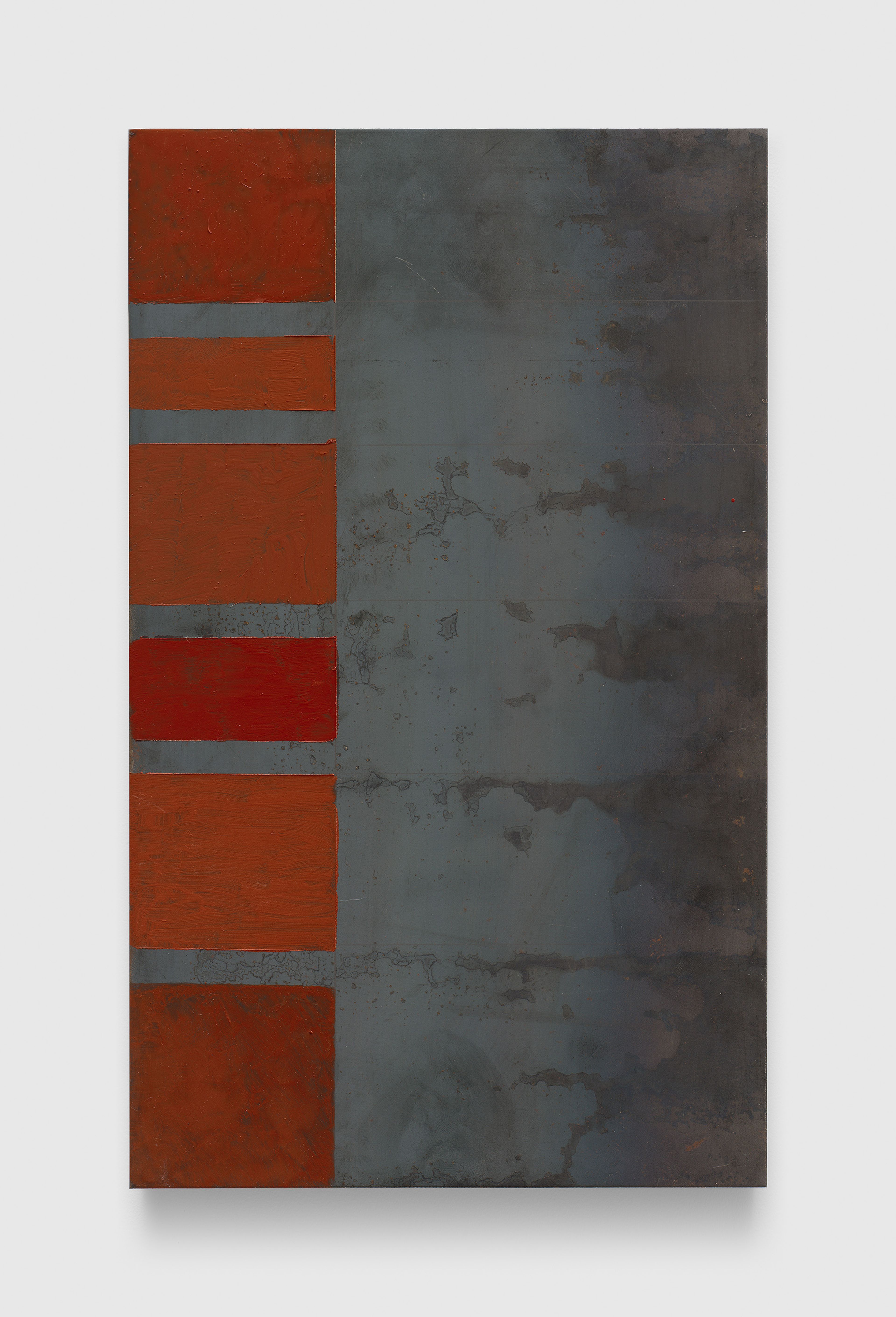 Oil pastel, sewing thread, sewing hooks, steel, and slate in three (3) parts