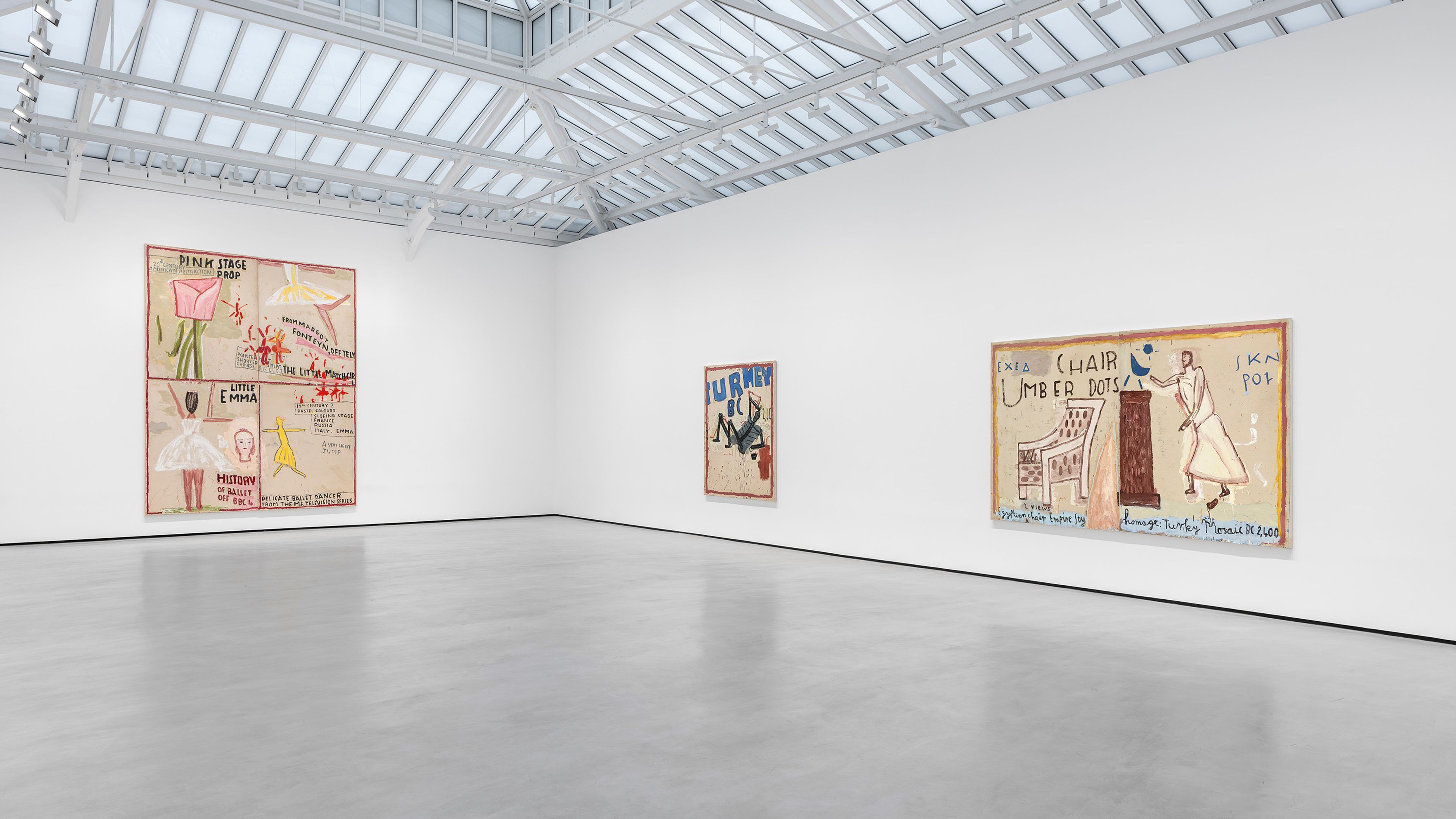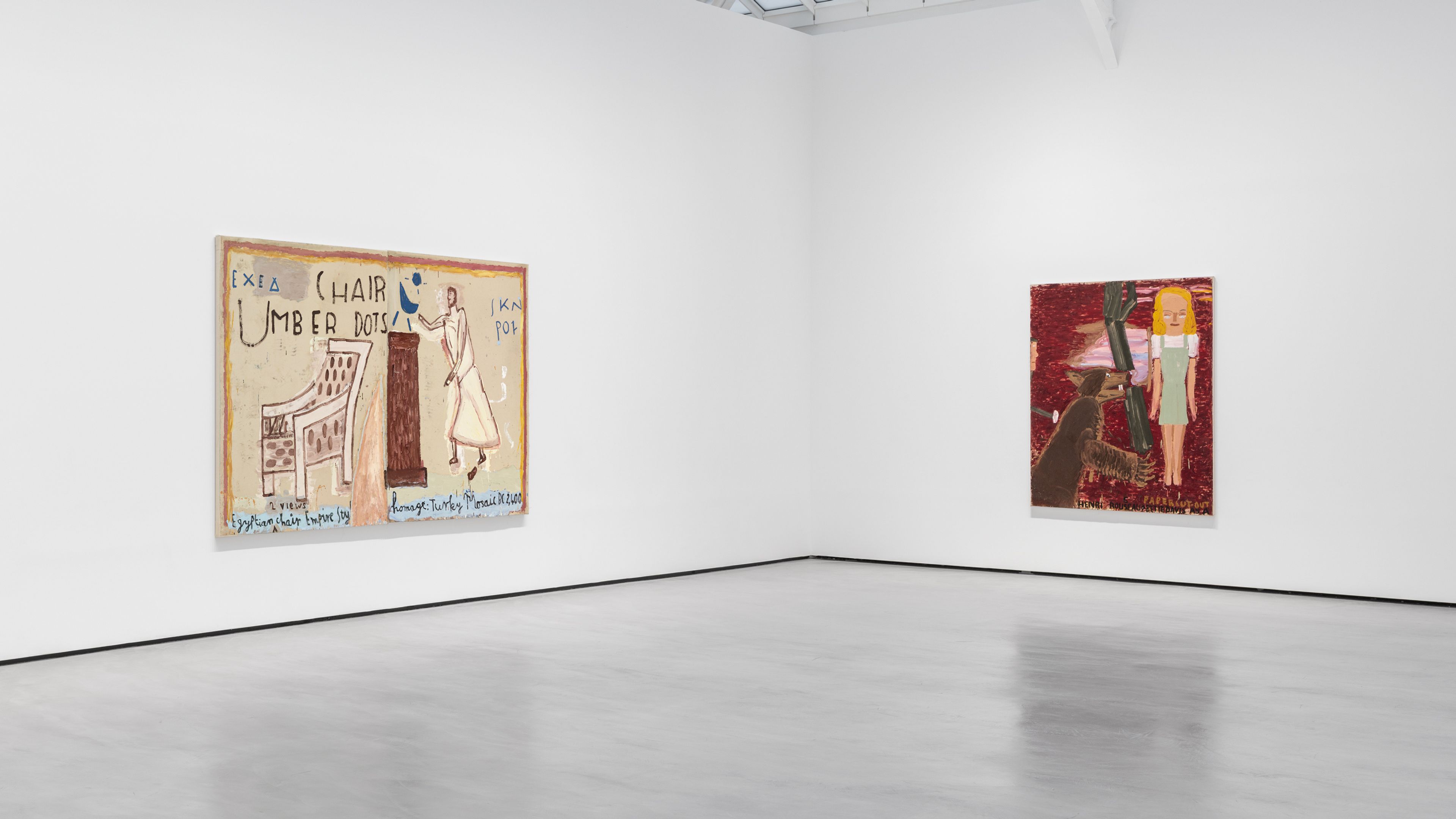 Installation view, Rose Wylie: Homage to Henri, Bette and Bear, David Zwirner, Paris, 2026