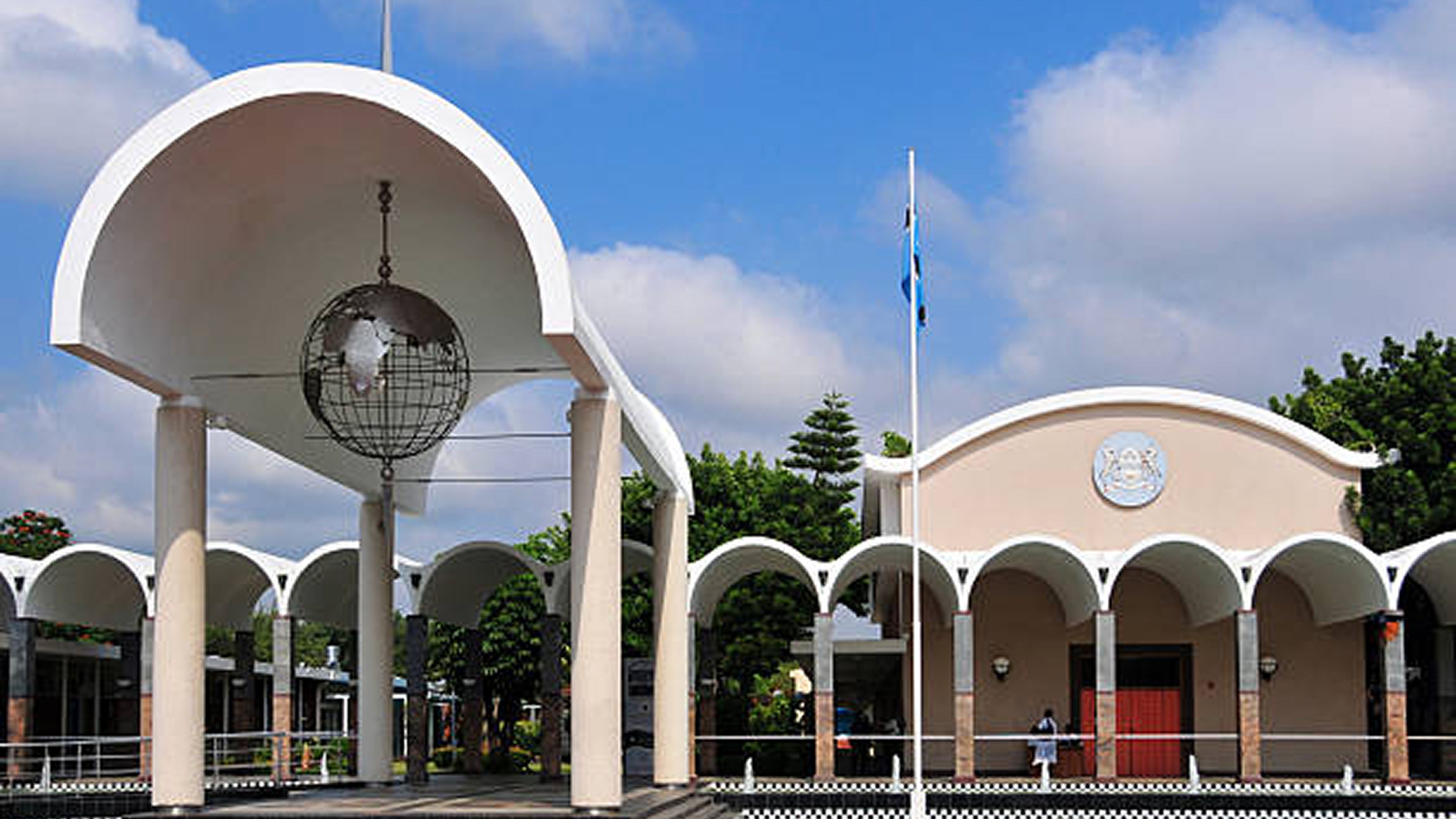 The National Assembly building in Gaborone, Botswana, with its recognizable arches.