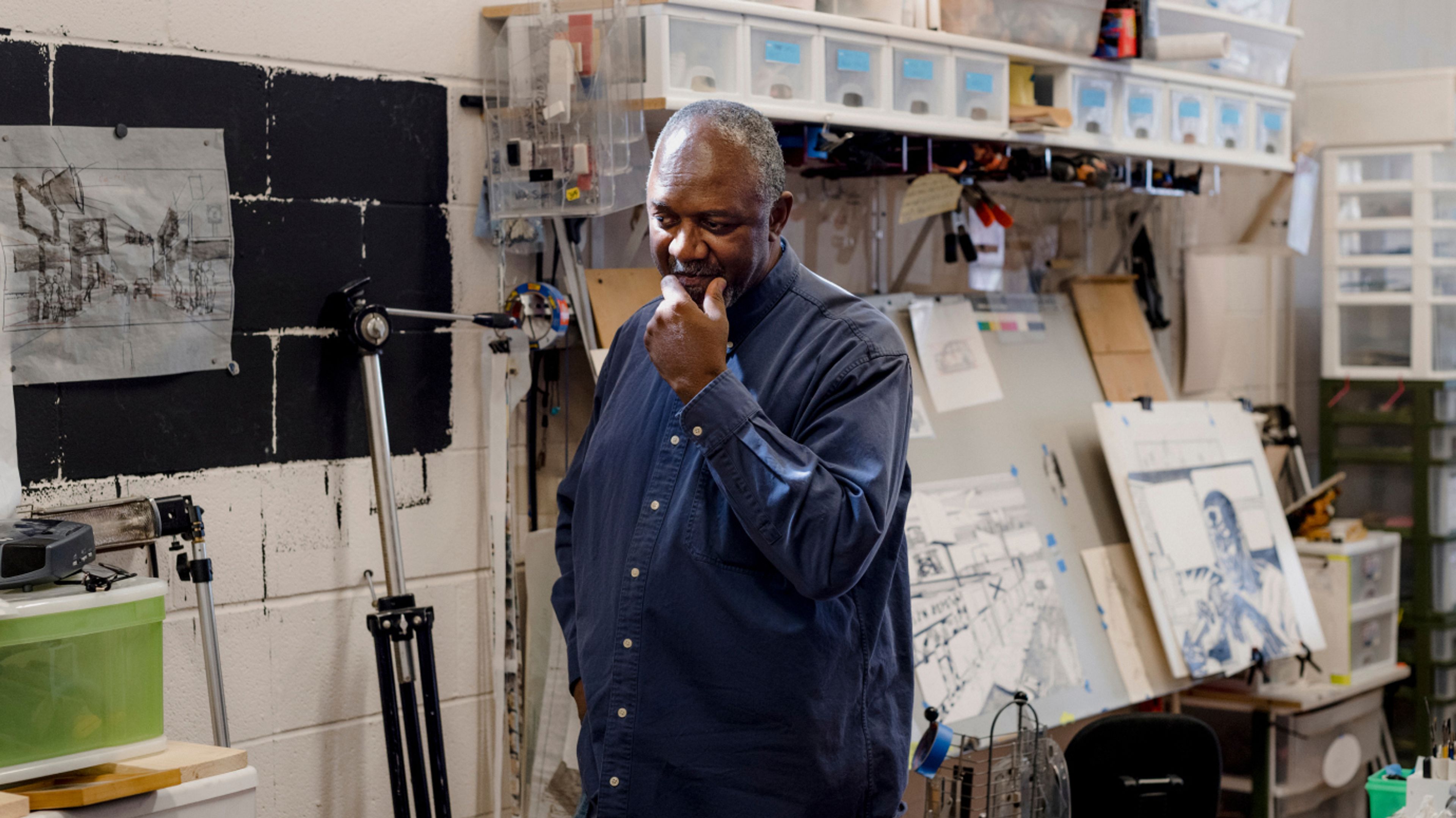 Kerry James Marshall in his studio, 2020. Photo by Lyndon French